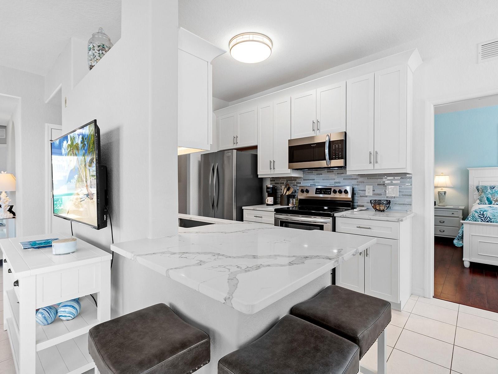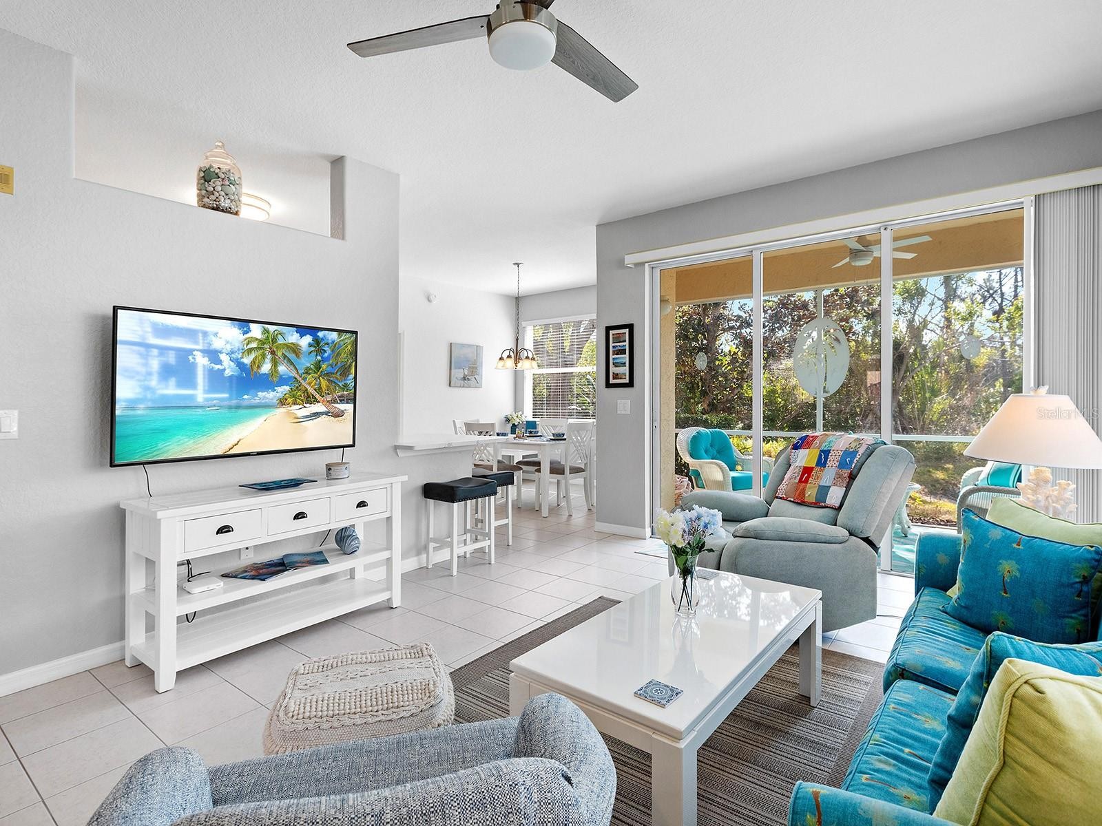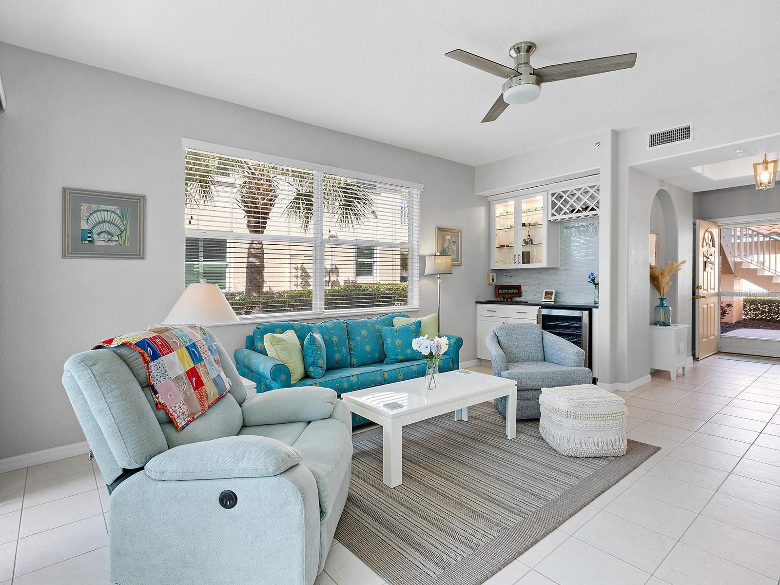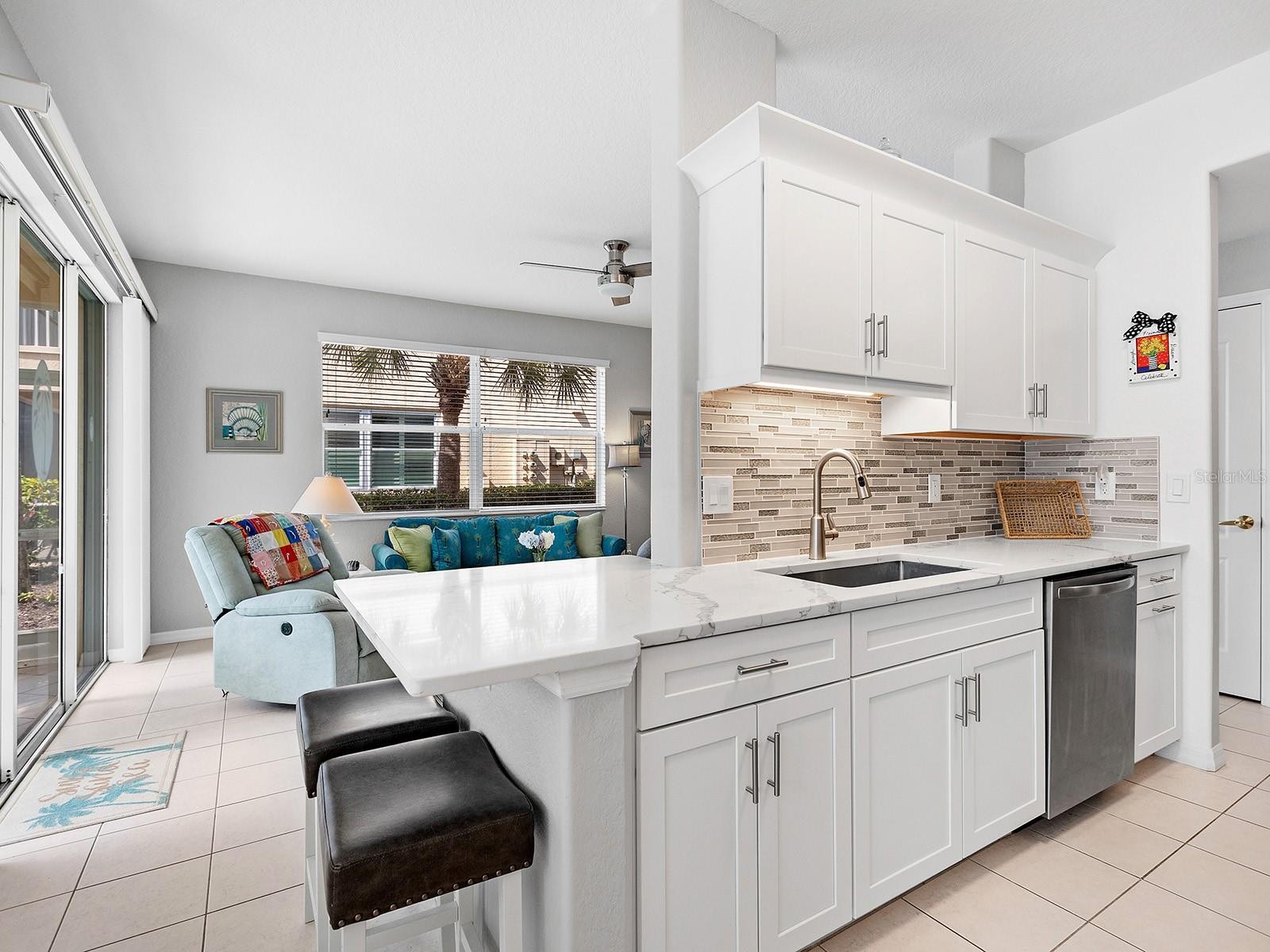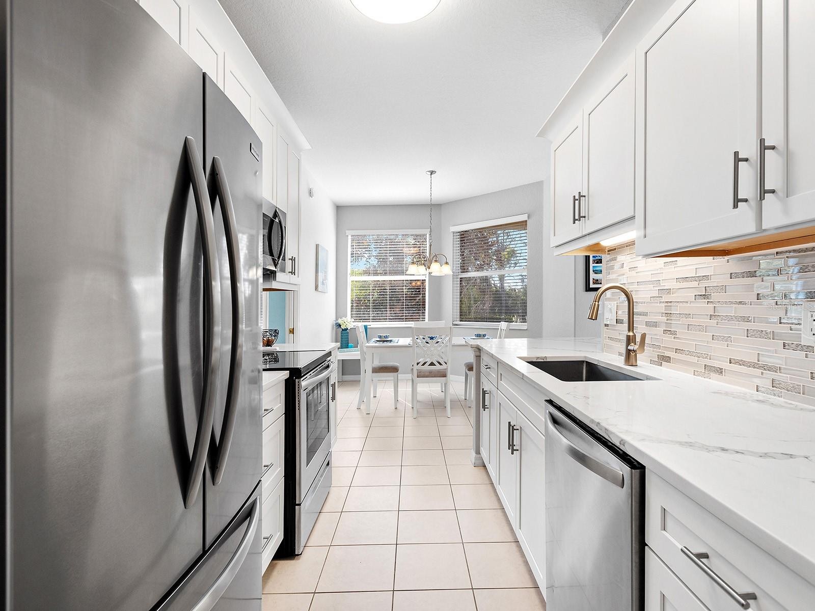 Nestled within a beautifully maintained gated community, this inviting first-floor, no-steps condo offers comfort, convenience, and a serene natural backdrop. The spacious 3-bedroom, 2-bath layout is designed for easy living, featuring a bright family room with a dry bar—perfect for entertaining or unwinding while enjoying peaceful views of the surrounding conservation area. The well-appointed, newly upgraded kitchen includes, quartz countertops, newer appliances, a breakfast bar and flows seamlessly into a cozy dinette area, creating an ideal space for casual meals and everyday gatherings. Step outside to the screened lanai, where you can relax and take in the tranquil scenery year-round. Residents of this sought-after community enjoy access to a large clubhouse, two sparkling pools, and beautifully landscaped grounds. With shopping, dining, and everyday conveniences just minutes away—and the beach only a short drive from your door—this condo offers the perfect blend of lifestyle and location. Broker/Agent Owned.