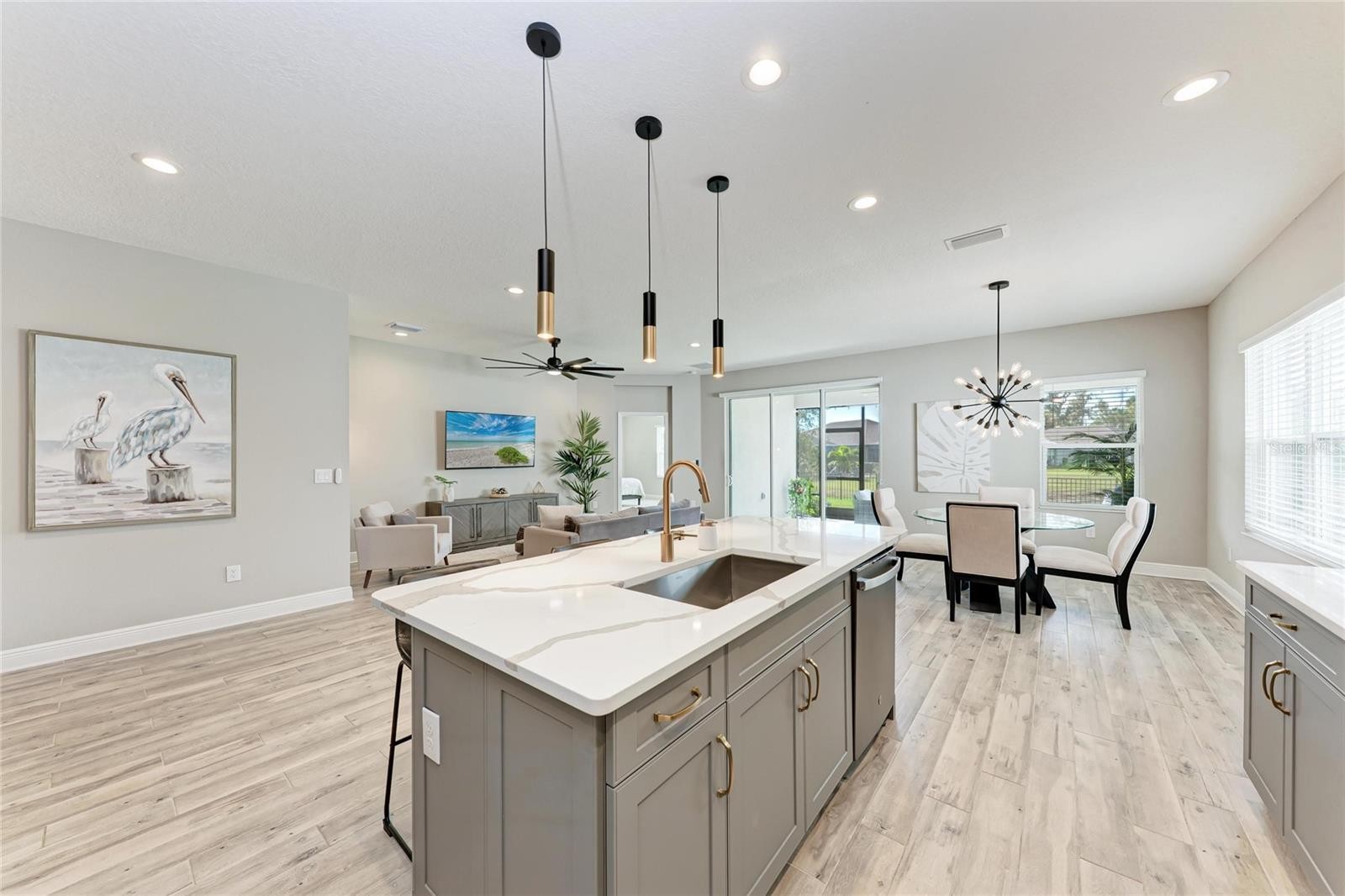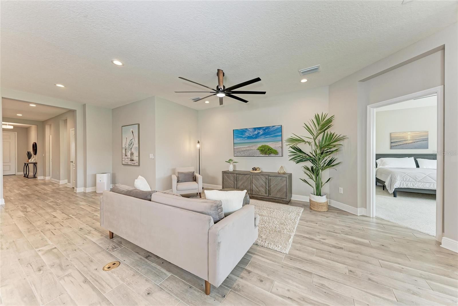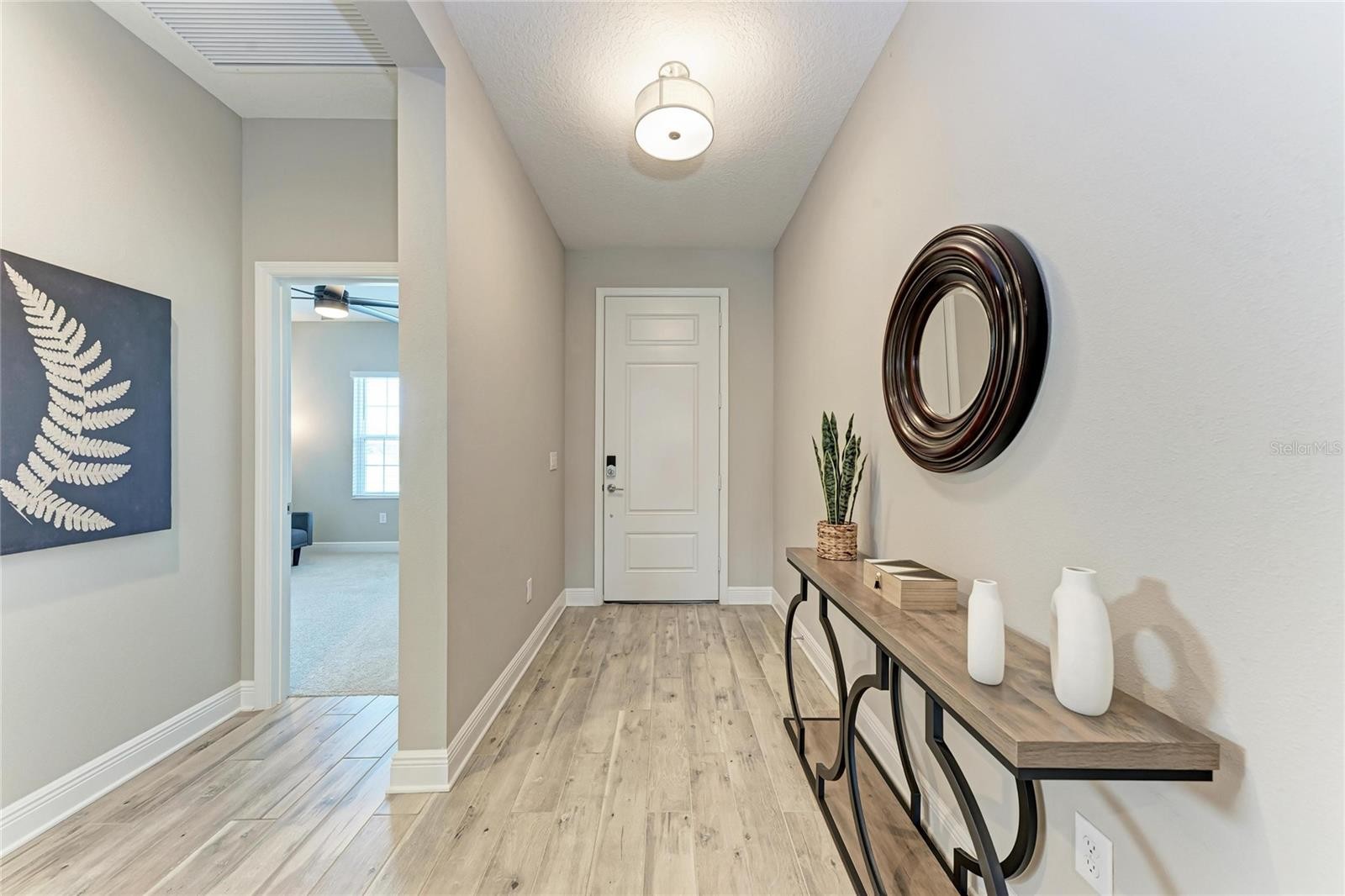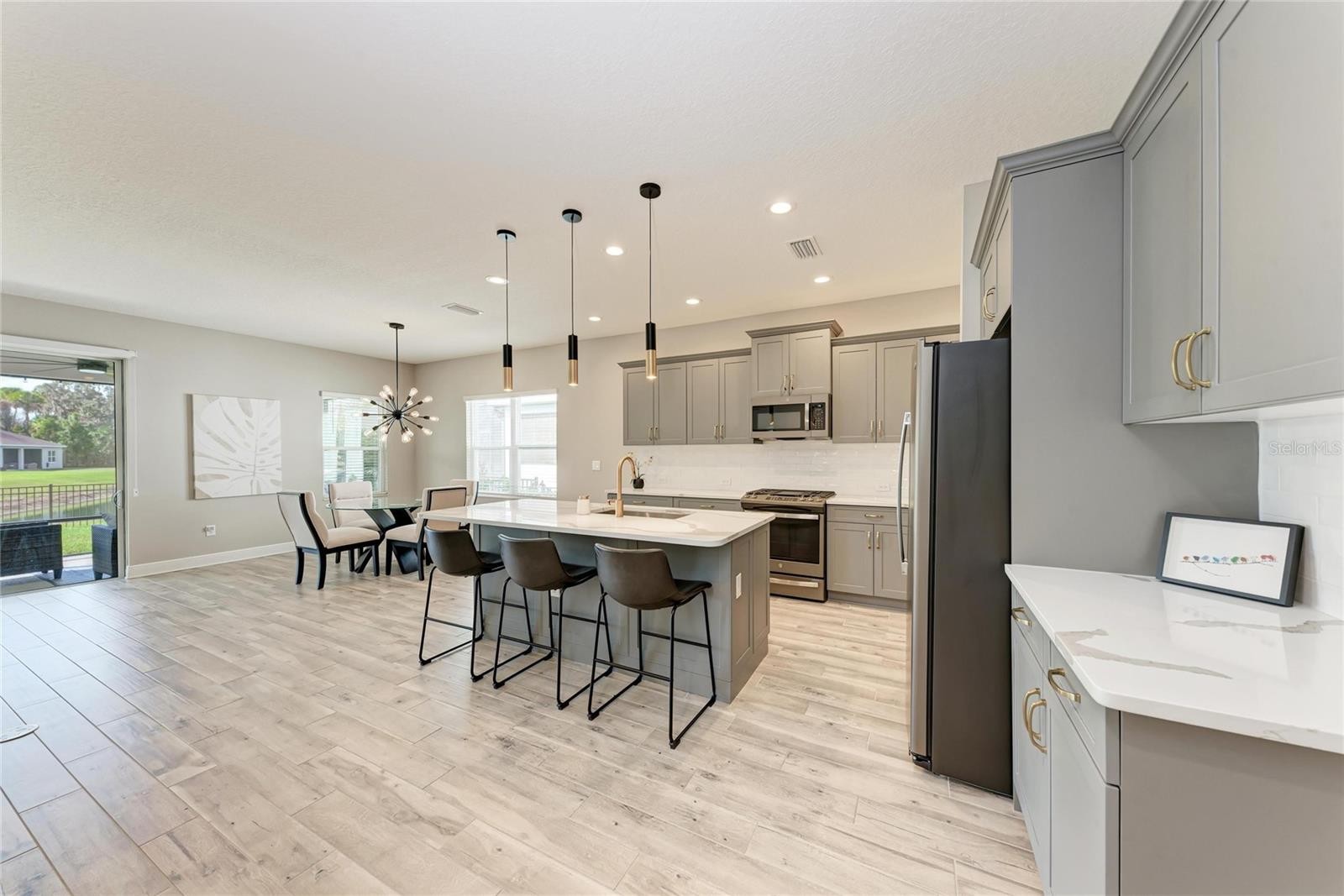 Welcome to 4211 Rustling Pines Terrace in Parrish, a beautifully maintained home located in the desirable Silverleaf community. The Triumph floor plan invites you in with a spacious open concept great room that seamlessly connects to the kitchen and dining area perfect for everyday living and entertaining. The upgraded kitchen features GE appliances, custom neutral gray shaker cabinetry with elegant gold hardware, a large center island with custom paneling, quartz countertops, custom lighting, a separate eat in area, and a generous walk in pantry. The elegant primary suite offers two large walk-in closets and a spa-like bath with dual sinks, upgraded snow shaker cabinetry, ample storage, a spacious walk in shower with custom tile work, and a private water closet. This home also includes a private guest suite with a walk-in closet and en suite bath, along with two additional bedrooms, two of which feature walk-in closets. One secondary bedroom includes an attached full bath with tub/shower combination, while the shared bathroom offers upgraded tile and glass shower doors. Additional features include 9.5 foot ceilings, neutral paint throughout, custom wood-plank ceramic tile flooring, Shaw carpeting in bedrooms, ceiling fans in the bedrooms, family room, and lanai, and three panel sliding glass doors that fully open to the lanai. Built in smart home technology includes a smart thermostat, front-door video doorbell, and garage system. A Level 2 electric vehicle charger is located in the garage, and one year of HVAC maintenance is included with Arctic Air. Exterior upgrades include a fenced backyard (May 2023), lanai screen (August 2023), new landscaping (May 2023–July 2024), and a 4 zone sprinkler system (April 2023). The home has been well cared for, clean, and meticulously maintained. Residents of Silverleaf HOA enjoy a well-maintained community with resort style amenities including a clubhouse, swimming pool, fitness center, playgrounds, dog parks, walking trails, and community events. Conveniently located near top-rated Manatee County schools, shopping, dining, and everyday conveniences, with easy access to I-75, Lakewood Ranch, Ellenton Premium Outlets, and Florida’s Gulf Coast beaches.