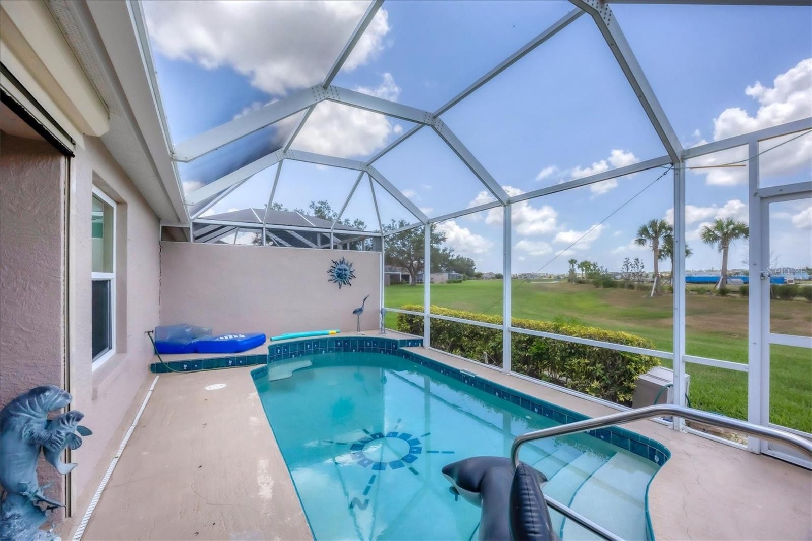 Nestled in the highly sought after GATED community of Villas of Sabal Trace, this immaculate 3-bedroom, 2-bathroom villa with its own PRIVATE POOL offers the perfect balance of luxury and convenience for a Florida getaway or full-time residence. This meticulously maintained one-owner home has been cherished and upgraded with the most discerning buyer in mind. You'll have peace of mind knowing that the sellers have gone above and beyond by installing IMPACT WINDOWS and ELECTRIC POWERED STORM SHUTTERS on the patio even though the home is in X FLOOD ZONE. These features provide not only enhanced energy efficiency and privacy but also an added layer of security during storm season. The home also boasts a new roof (2021) and a new A/C unit (2020). Step inside to discover a home that’s bright and welcoming, with cathedral ceilings and an open floor plan that creates an inviting and airy atmosphere. The spacious kitchen offers stainless steel appliances, cabinets with pull-out drawers, a spacious pantry and an adjacent area with custom cabinetry and glass shelves, perfect for displaying glassware. A wine/cold drink fridge adds the perfect touch for entertaining. The split bedroom floor plan provides privacy and comfort, with a generous primary suite offering his-and-hers closets and a private ensuite bath with dual sinks and a large step-in shower. The second bedroom is ample in size and features a large closet and a conveniently located guest bathroom with shower/tub combination. The third bedroom features custom cabinetry with a built-in desk, additional storage space and room for a bed, making it an ideal home office and extra guest room. You'll relish in the tranquility of your own private oasis where relaxation meets luxury on the extended lanai with your own private pool and a buffer of trees and lush landscaping behind the home. It’s the perfect spot to relax and unwind, whether you're enjoying a cool drink poolside or hosting friends and family for a sunset swim. With LOW HOA FEES that cover exterior maintenance, CABLE TV AND INTERNET and NO CDD fees, this home offers exceptional value. Discover the vibrant community of North Port, one of the fastest growing cities in the country offering endless recreation opportunities from the renowned Warm Mineral Springs to nearby golf courses and pristine beaches just a short drive away. For shopping enthusiasts, indulge in a day of shopping at The CoCoPlum Shoppes or the newly developed downtown Wellen Park for an array of popular shopping choices and eateries. Schedule your private showing today and make plans to start living the Florida lifestyle you've always dreamed of.