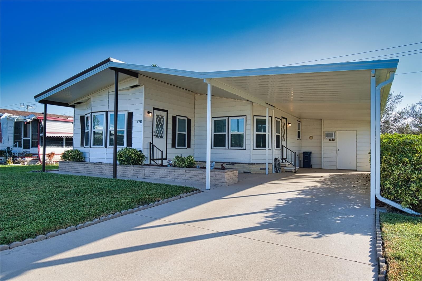 Don’t miss the chance to grab your piece of paradise in this vibrant 55+ community. This charming two-bedroom, two-bath home is located in a pet-friendly area with plenty of backyard space for your furry friend. A long carport brings you to the utility shed with a washer, dryer, deep sink, work bench, plenty of storage space, and a door to the back yard. Entry to a dining area and the kitchen with appliances. The living room features French doors to the cozy front Florida room, perfect for enjoying your morning coffee or afternoon beverage while basking in the beautiful Florida warmth. The guest bedroom has two built-in double closets, and the guest bathroom features a vanity and a tub/shower. The spacious primary bedroom with a walk-in closet features an ensuite bathroom with a walk-in shower, vanity, and linen chest. The home features laminate flooring, vaulted ceilings, and ceiling fans throughout. The cozy interior of the home is perfect for both relaxing, quiet nights and entertaining your friends and family. This home is a must-see! La Casa boasts 974 home sites nestled among a variety of native trees with spacious common grounds surrounding our eight lakes. Our lots average a generous 60' by 80'. Providing the ultimate lifestyle on Florida’s Gulf Coast, La Casa is located between Sarasota and Fort Myers and is a boater's dream. It is convenient for shopping, sightseeing, golfing, fishing, and boating, as well as all the culture and elegance the Southwest Florida area is noted for. Residents and visitors enjoy the warmth of Southwest Florida winters in a relaxed and unhurried environment far removed from the hustle of Florida’s east coast. You’ll be surrounded by mature, lush landscaping, which demonstrates the utmost level of care our property receives from residents and management. Wireless Internet (Wi-Fi) is available at the Clubhouse, Activity Building, and Recreation Hall area, where our pools & spas are located, so you can catch some rays while you catch up on your email! Sound enticing? La Casa is a friendly, family community. You will be away from the hustle and bustle, except when you want to be part of it. Come for a visit to this self-contained oasis and see for yourself why La Casa is the ultimate destination for both snowbirds and year-round residents!