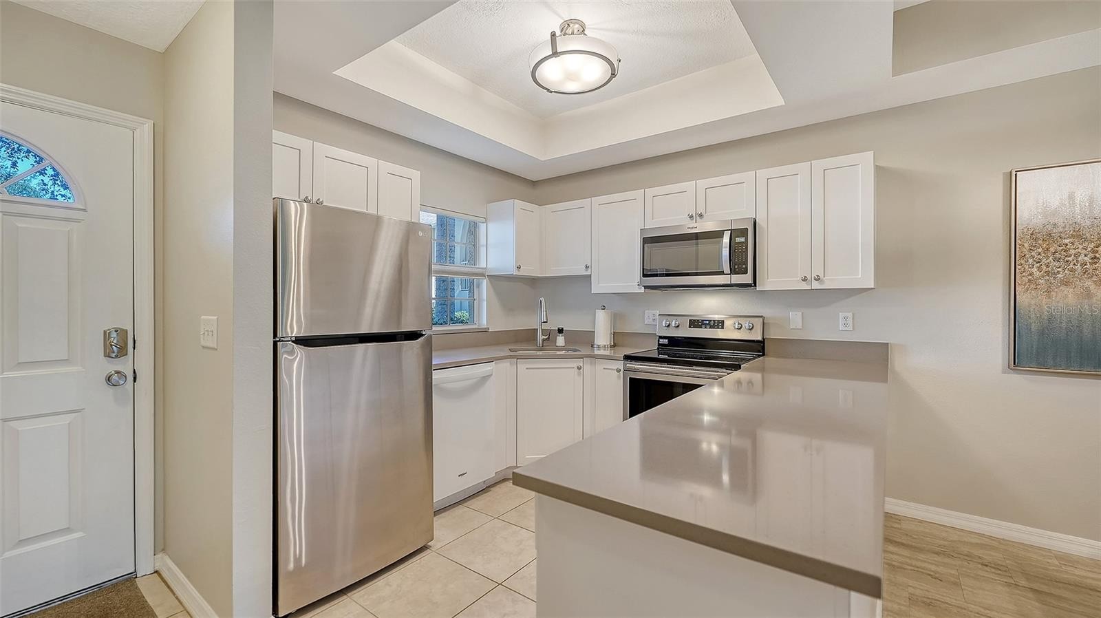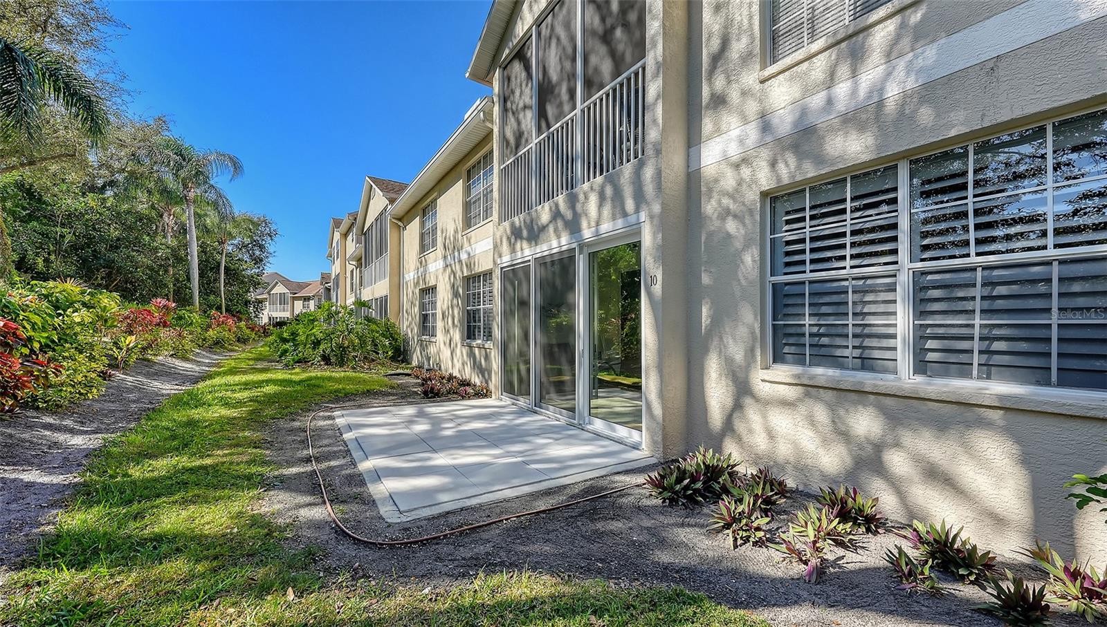 Move-in-ready 3-bedroom, 2-bath first-floor end unit in Pinestone, ideally located in Palmer Ranch near beaches, shopping, dining, and the Legacy Trail. This light-filled home features several recent updates including new HVAC (2024), hurricane-impact sliders on the lanai (2025), concrete patio (2025), window treatments (2024), hardware, ceiling fans, light fixtures, fresh paint, mirrors, vanity, and countertops in both bathrooms and kitchen. Laminate and ceramic tile throughout, and an exterior storage closet—perfect for bikes and beach gear (only the ground floor units have the storage closets). The third bedroom is currently used as a den – a door enclosure can readily be installed to convert back to a true bedroom. Pinestone offers resort-style amenities: fitness center, billiards room, tennis, pickleball, pool and spa, shuffleboard, half-court basketball, fire pit and BBQ grills, plus a private movie theater.