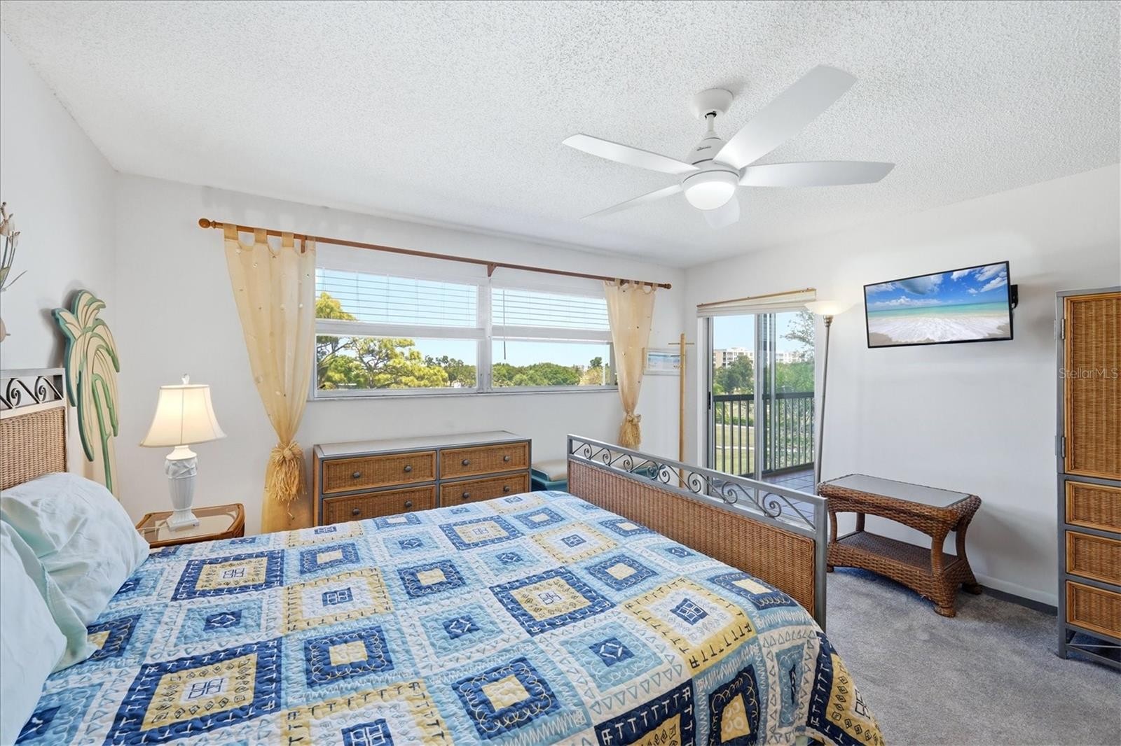 Welcome to Ironwood, located only 6.2 miles from the Gulf beaches of Anna Maria Island. This 2-bedroom, 2-bath 4th-floor corner end unit offers relaxing golf course views overlooking the #1 fairway and #2 green of the Pinebrook Ironwood Golf Community. Best of all, there are no additional golf course fees—enjoy the flexibility of a convenient pay-as-you-play course. This is an exceptional building location nestled between the Golf Pro shop to the east and the Rec I Clubhouse to the west. Enjoy peaceful panoramic views from the 6x15 glassed and screened lanai, perfectly positioned to take in the golf course and nearby pro shop. The open floor plan flows seamlessly from the foyer into the living room and out to the lanai, creating a bright and inviting living space. This furnished end unit is competitively priced and ready for its next owner. The kitchen features granite countertops, stainless steel appliances, parquet wood flooring, and a recently purchased Whirlpool refrigerator with front dispenser. Parquet flooring continues into the foyer, while the living room and both bedrooms have newer carpet. The spacious primary bedroom easily accommodates a king-size bed, offers private lanai access, and includes both a large walk-in closet and an additional closet for ample storage. Both bathrooms feature updated vanities, lighting, and fixtures. The guest bedroom has two single beds and a built-in closet. The A/C replaced: 3/20/2022 and the Hot water heater replaced: 6/26/2018. Additional conveniences include carport #11, a private storage locker located next to the elevator, and a laundry room just steps away on the same floor. Residents enjoy easy access to the nearby Rec I Clubhouse, which offers a heated pool, fitness room, billiards room, grilling area, shuffleboard, banquet space, and tennis court access. Ironwood is a highly active community ideally located near everything you need, including 15 minute walk to the newly renovated G.T. Bray Park, a short drive to Robinson Preserve, Sarasota-Bradenton International Airport, and the stunning Gulf beaches of Anna Maria Island. This 55+ building does not allow pets, and new owners must hold ownership for two years before leasing. The monthly condo fee includes: Cable TV, Common Area Taxes, Community Pool, Escrow Reserves Fund, Fidelity Bond, Building Insurance, Internet, Maintenance Exterior, Maintenance Grounds, Maintenance Repairs, Manager, Pest Control, Pool Maintenance, Recreational Facilities, Sewer, Trash and Water.