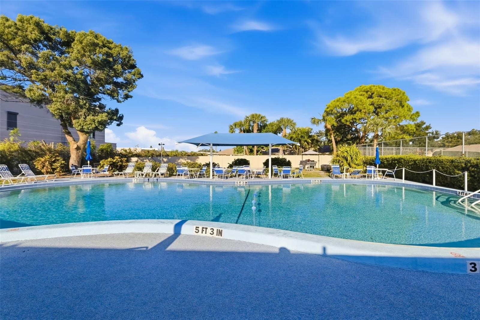 Welcome to DeSoto Square Villas, a highly desirable 55+ gated community offering comfort, security, and an active Florida lifestyle. Tucked away from the hustle and bustle—yet conveniently located next to the Sheriff’s Office—this community is known for peace of mind and reliability, even during power outages (it is on same circuit as Sheriff - a bonus). Desoto Square Villas is close to medical care. Once inside the gates, you’ll feel as though you’ve entered a private garden retreat, with beautifully manicured grounds, a charming fountain, and walking paths ideal for morning or evening strolls. Residents enjoy a vibrant 55+ lifestyle with a community pool, pickleball and tennis courts, and an activity center offering a full schedule of social events, clubs, and gatherings. Step inside the villa and be impressed by the spacious open living and dining area, perfect for entertaining or relaxing in comfort. All furnishings convey, including a versatile sofa that converts to a daybed—making this a truly move-in-ready home. The second bedroom is thoughtfully designed with its own bathroom and can be closed off to create a private guest suite, ideal for visiting family or friends. A rare bonus: the washer and dryer are grandfathered in, eliminating the need to walk to a community laundry—especially convenient in the evenings. Enjoy easy access to beaches, shopping, dining, medical facilities, and everyday conveniences without long drives. Whether you’re downsizing, retiring, or seeking a low-maintenance seasonal home, this DeSoto Square Villa offers the security, comfort, and lifestyle today’s 55+ buyers are looking for. Did I mention Pickleball?