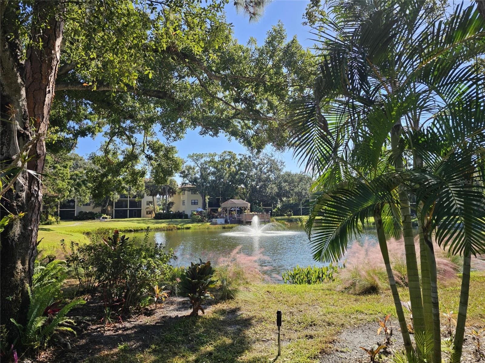 Well-Maintained 2-bedroom, 2-bath condo in the gated 55+ community of Woodpark at Desoto Square. This 1150 square foot second-floor unit features a split floor plan, breakfast bar, and a pleasant view of the courtyard and pond. This unit is being offered fully furnished and move-in ready. Elevator access and designated covered parking included. Community amenities include a heated pool, tennis courts, outdoor cooking area, outdoor eating area, gazebo, shuffleboard, clubhouse with library, and landscaped courtyards with ponds. Conveniently located close to shopping, restaurants, and local services.
