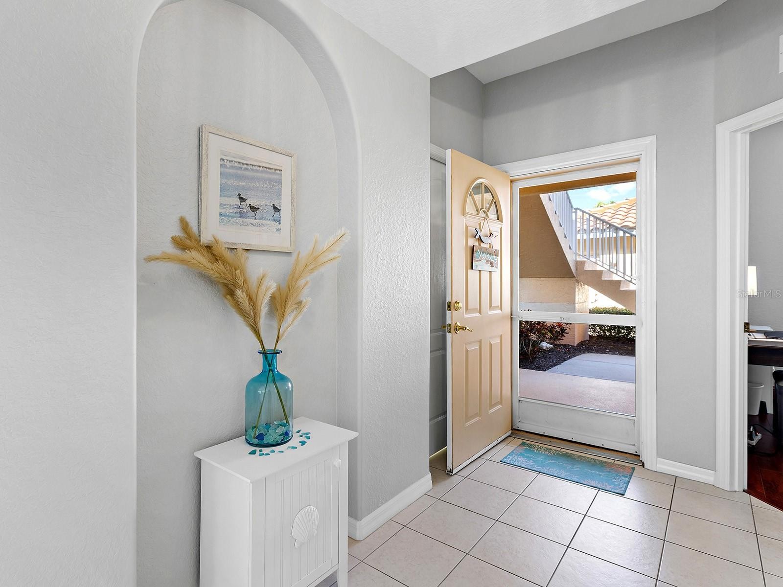 This delightful first floor condo with a golf course view is ready to welcome you home. The condo has an updated kitchen with beautiful quartz countertops and cabinets. The entire floor in the condo was redone when the present owner moved in. Freshly painted. The water heater was replaced in 2024 and the range was recently replaced.. The roof for the building was replaced in 2024. The furnishings will remain with the condo. There is a swimming pool and clubhouse within the community for the residents of Farmington Vistas, because this is located in the Plantation Golf and Country Club you have the opportunity if you choose to join the club and enjoy the facilities. There is 36 holes of Golf, Tennis, Pickleball, fitness, and restaurants. There are several levels of membership available to purchase. It is also a short distance to downtown Venice and the area beaches, you can also easily get to downtown Wellen Park and the Atlanta Braves winter headquarters.