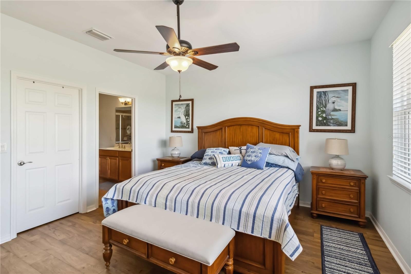 WELCOME TO PARADISE! Step into this beautifully decorated, turn-key furnished home which has been barely lived in. This 2 bedroom plus den villa is located in the sought-after Ventura Village community. Upon entering you will be welcomed by a spacious open floorplan which provides plenty of space for entertaining guests. Enjoy relaxing on your private, extended, caged-in lanai with an amazing view of the water and preserve. The kitchen is perfect for any chef and combines beauty and function, featuring granite countertops, 42-inch cabinets, closet pantry, pendent lights and stainless-steel appliances. The primary bedroom has its own ensuite bath with a large, tiled walk-in shower, dual sinks and spacious closet. This secondary bedroom is situated up front offering privacy for your guests. This home is located minutes away from Manasota beach, shopping and fine dining. This home is just a short drive to Historic Downtown Venice or to Wellen Park which is home to the Atlanta Braves spring training center. There are NO CDD FEES and low HOA's which includes: lawn maintenance, irrigation, gated community and an amenity center with community pool and club house. This move-in ready home offers comfort and convenience. Start enjoying Florida living at it's finest! (SOME PERSONAL ITEMS WILL NOT CONVAY)