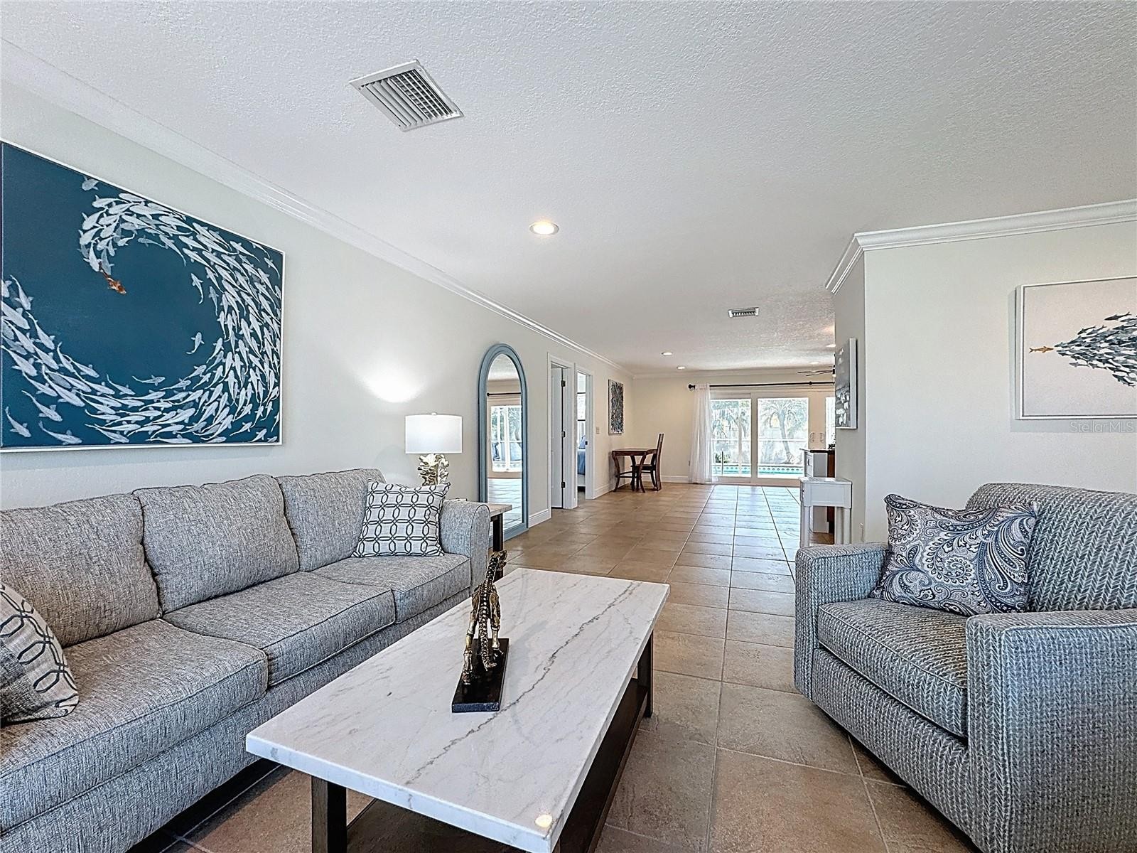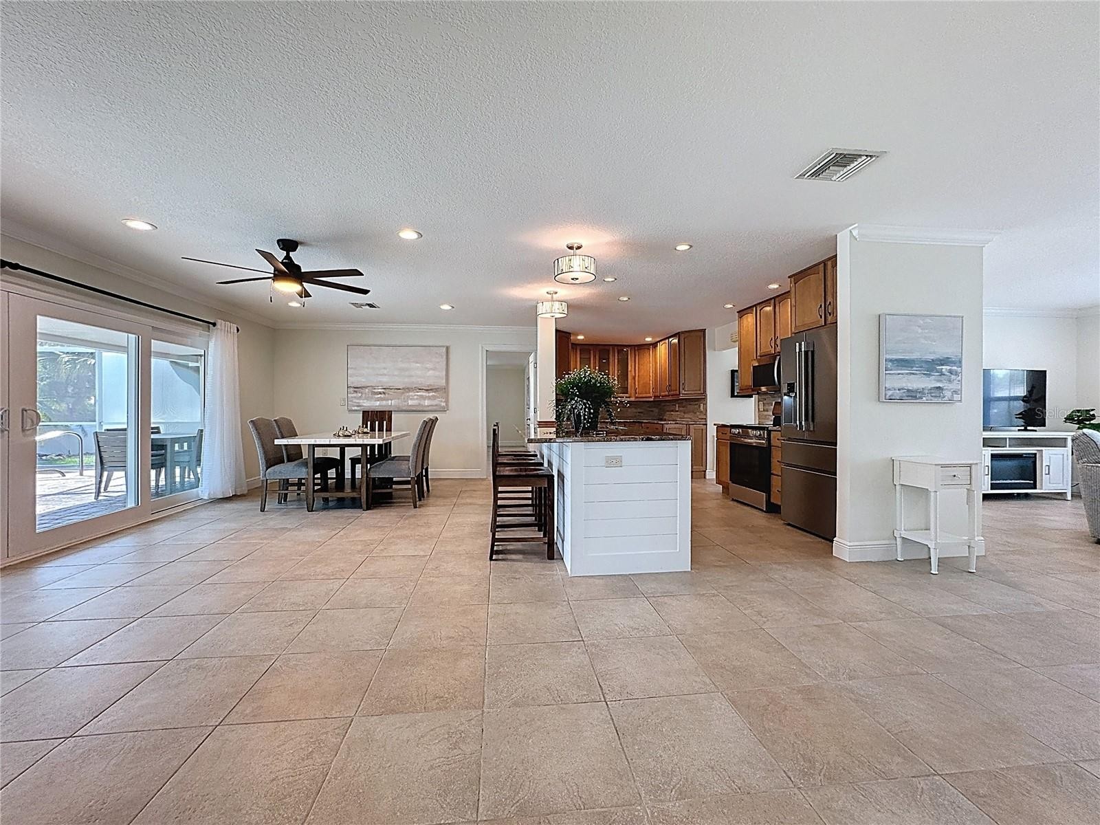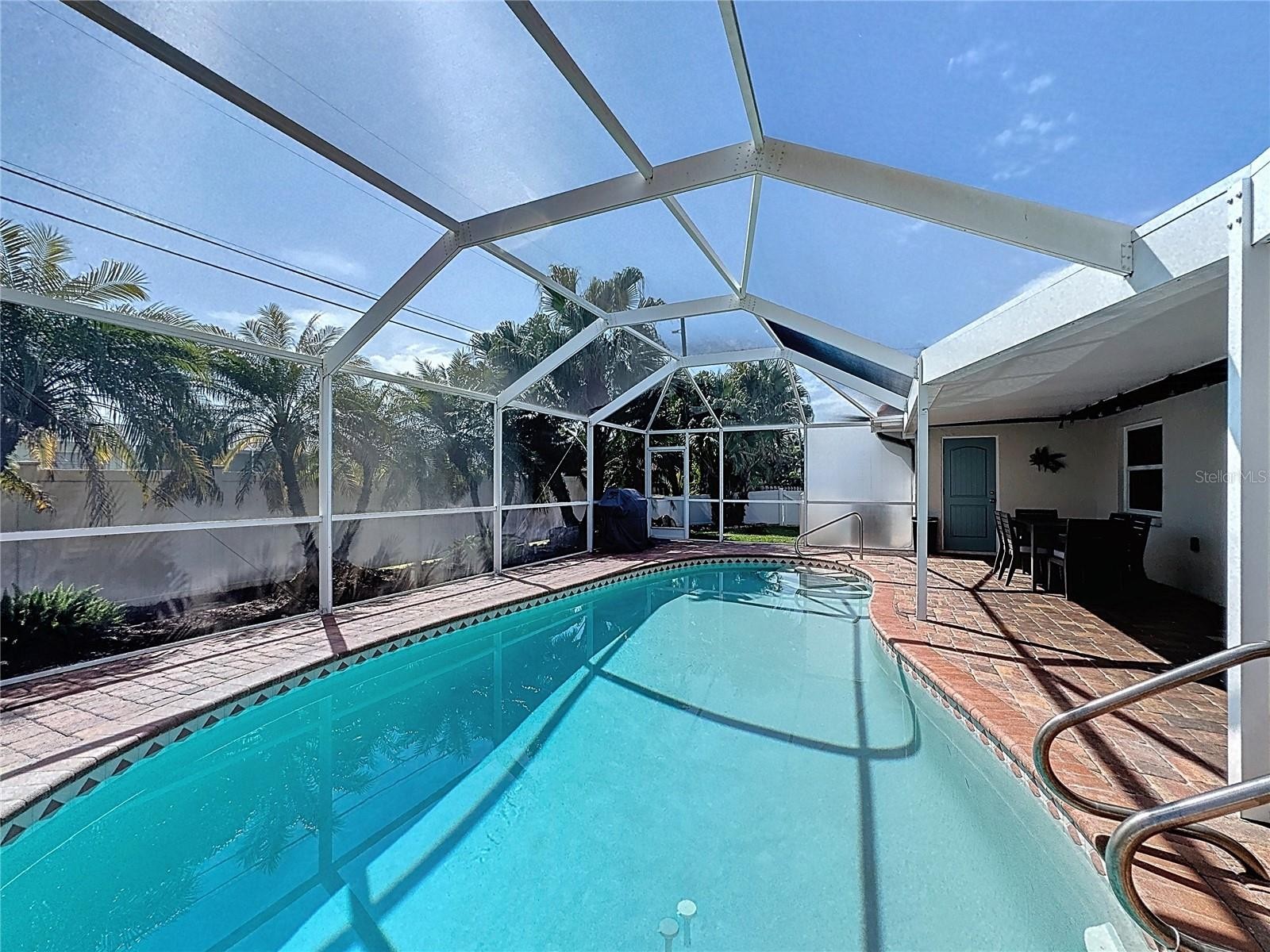FURNISHED WITH NEW STUNNING DESIGNER FURNISHINGS AND DECOR THROUGHOUT! OUTSTANDING ART WORK, AND READY TO MOVE IN NOW! Welcome to Golden Beach, one of Venice Island’s most sought-after neighborhoods - the name truly says it all. This community offers its own private beach access and places you just moments from the heart of downtown Venice, giving you the perfect blend of coastal living and convenience. Before admiring the beauty of the home itself, take a look at the extensive list of updates: Paver Sealing (2025), Refrigerator (2025), Washer & Dryer (2025), Dishwasher (2025), Pool cage screening (2022), Fence (2023), Paver driveway (2021), 10 impact-rated windows, doors, and sliders (2022), Front paver porch (2021), HVAC – 4-ton system (2024), Water heater (2025), Plumbing (2013), 6 ft. vinyl fence (2013), New tile roof (2013) with a 2024 four-point inspection. The professionally landscaped and fully fenced yard creates a private, tropical retreat. Step through the front door and you’re greeted by an inviting, open layout filled with natural light—ideal for both quiet evenings at home and hosting guests. Tile floors throughout offer a clean look and effortless upkeep. The kitchen, dining area, and family room all overlook the heated, screened-in pool. The lanai features an insulated roof, making the space enjoyable year-round, rain or shine. Lush landscaping around the pool adds a true resort feel, and the convenient pool bath with shower is an added bonus. The split floor plan places the spacious primary suite on one side of the home and the guest bedrooms on the other, giving everyone privacy. The home also includes a two-car garage and paver walkways that lead to the front entrance and mailbox. You’re about a mile from the Venice Fishing Pier, Sharky’s, the dog beach, and the charming shops, restaurants, and entertainment options in downtown Venice. Simply move in and start enjoying the Florida lifestyle the way it was meant to be. This is a home you’ll want to see in person—don’t miss it. THIS HOME WAS NOT FLOODED BY THE FLAMINGO DITCH.