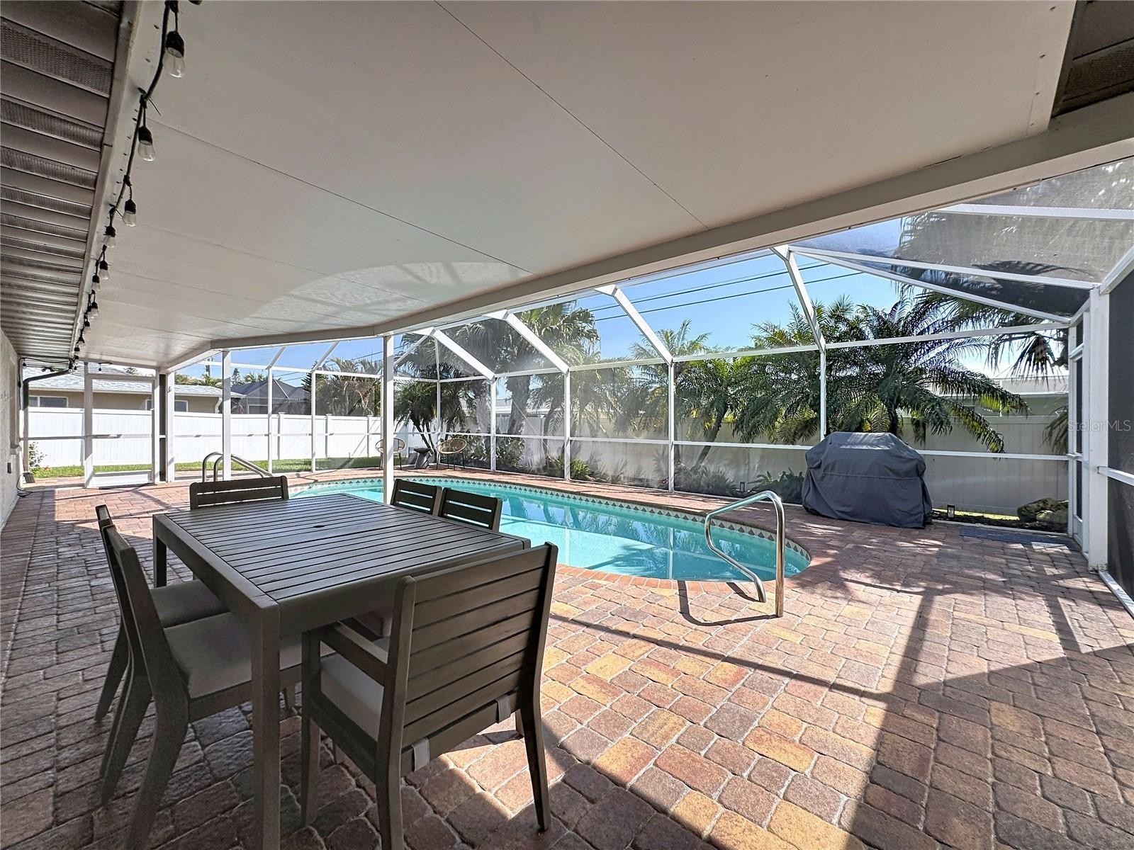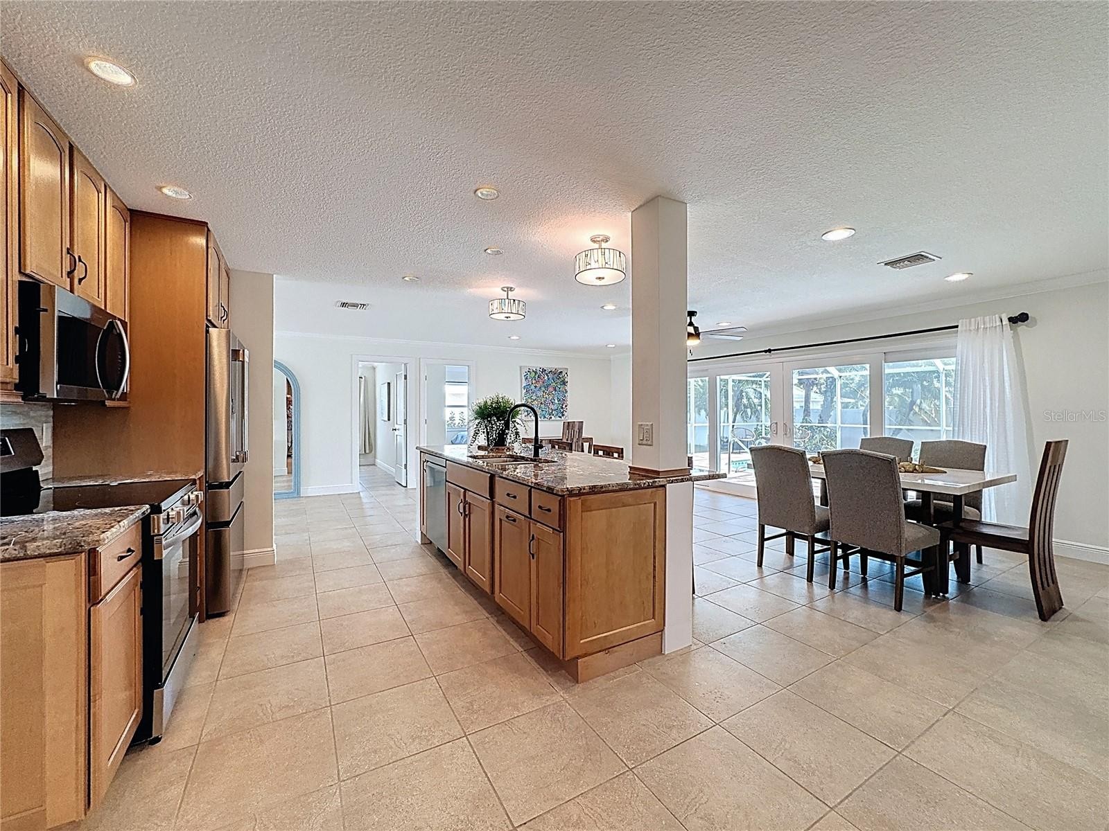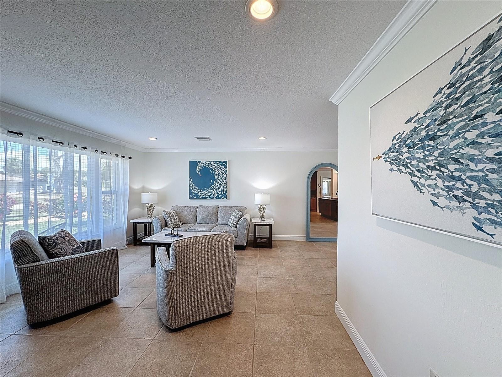 FURNISHED WITH NEW STUNNING DESIGNER FURNISHINGS AND DECOR THROUGHOUT! OUTSTANDING ART WORK, AND READY TO MOVE IN NOW! Welcome to Golden Beach, one of Venice Island’s most sought-after neighborhoods - the name truly says it all. This community offers its own private beach access and places you just moments from the heart of downtown Venice, giving you the perfect blend of coastal living and convenience. Before admiring the beauty of the home itself, take a look at the extensive list of updates: Paver Sealing (2025), Refrigerator (2025), Washer & Dryer (2025), Dishwasher (2025), Pool cage screening (2022), Fence (2023), Paver driveway (2021), 10 impact-rated windows, doors, and sliders (2022), Front paver porch (2021), HVAC – 4-ton system (2024), Water heater (2025), Plumbing (2013), 6 ft. vinyl fence (2013), New tile roof (2013) with a 2024 four-point inspection. The professionally landscaped and fully fenced yard creates a private, tropical retreat. Step through the front door and you’re greeted by an inviting, open layout filled with natural light—ideal for both quiet evenings at home and hosting guests. Tile floors throughout offer a clean look and effortless upkeep. The kitchen, dining area, and family room all overlook the heated, screened-in pool. The lanai features an insulated roof, making the space enjoyable year-round, rain or shine. Lush landscaping around the pool adds a true resort feel, and the convenient pool bath with shower is an added bonus. The split floor plan places the spacious primary suite on one side of the home and the guest bedrooms on the other, giving everyone privacy. The home also includes a two-car garage and paver walkways that lead to the front entrance and mailbox. You’re about a mile from the Venice Fishing Pier, Sharky’s, the dog beach, and the charming shops, restaurants, and entertainment options in downtown Venice. Simply move in and start enjoying the Florida lifestyle the way it was meant to be. This is a home you’ll want to see in person—don’t miss it. THIS HOME WAS NOT FLOODED BY THE FLAMINGO DITCH.