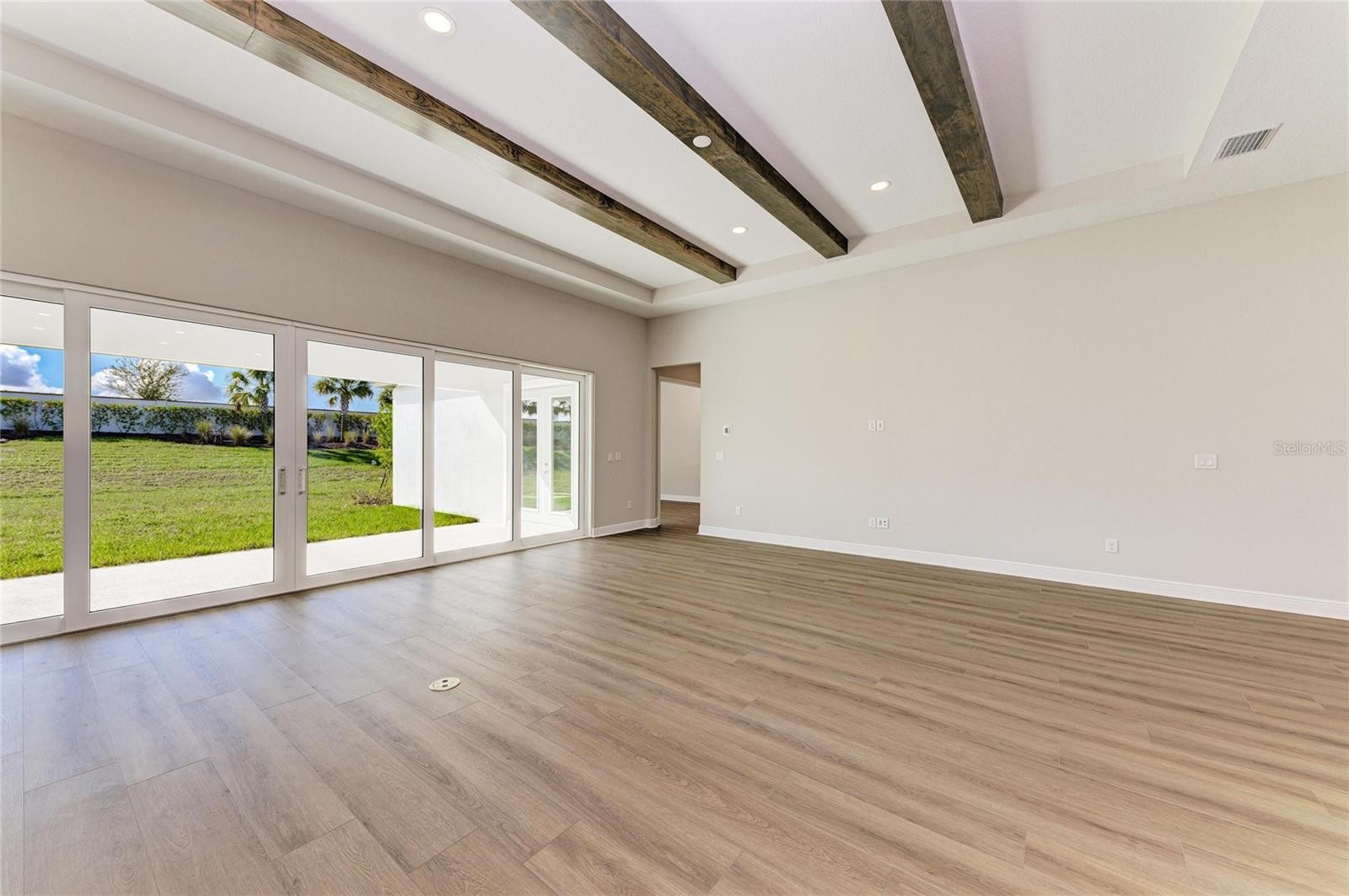 One or more photo(s) has been virtually staged. This Cedar Key I is ready for move in! Expertly curated finishes bring a coastal elegance to this 3,276 square foot residence. The heart of the home showcases Maddox Painted Harbor cabinetry with a refined wood style texture, beautifully paired with premium Calacatta Laza MSI Quartz countertops. Warm Nutmeg flooring flows throughout the main areas, grounding the space with a natural and inviting feel. The architecture focuses on an airy, open concept that bridges the gap between relaxation and hosting. Massive 24 foot sliding glass doors dissolve the boundary between the interior and the outdoor lanai, offering a panoramic view of the expansive backyard. This seamless transition fills the home with natural light and fresh air. Designed for flexibility, the layout includes three bedrooms, three bathrooms, and a three car garage. A dedicated den serves as the perfect quiet office, while the oversized bonus room provides extra space for a media center or hobby area. This home offers a unique combination of scale and intimacy for a truly effortless lifestyle. Listing Price amount for this Pending Sale includes Design and Structural Options.