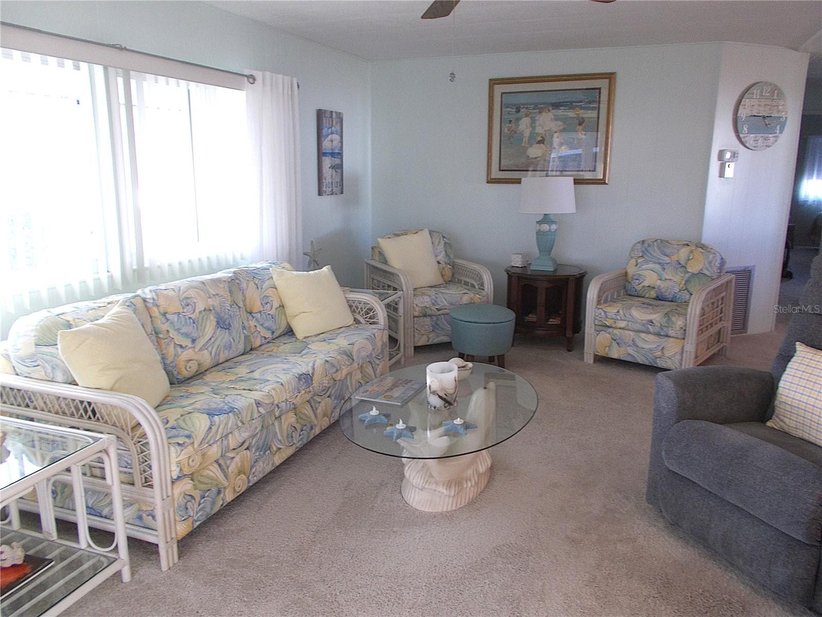 Run, don't walk, to this beautiful double-wide found in sought after Sandalwood Park! This beautifully furnished home is being sold turnkey furnished. Bring your suitcase and toothbrush and start enjoying all that Sandalwood has to offer along with the Florida sunshine! Offering 2 large bedrooms and 2 updated bathrooms, you'll immediately feel and see all the love that this seller has given to their seasonal home. The updated kitchen has solid wood cabinets and granite countertops, along with a dishwasher, disposal and a closet pantry. The 22x10 lanai has acrylic windows allowing you to enjoy the room even when if gets a tad chilly. The A/C was replaced in 2025 along with the hot water heater. You'll also find a brand new carport, thanks to Milton. The location simply can't be beat, putting you in close vicinity to shopping and restaurants. Only 4 miles to Venice Beach and 5 miles from Sarasota Memorial Hospital (Venice campus). Sandalwood Park offers so many indoor and outdoor activities that you will never be bored. Whether your into playing cards, exercising, enjoying happy hour on the patio by the heated (and cooled) pool or attending the many dances/potlucks/picnics/seasonal shows. Your furry family members are also welcome! This home is a MUST see! Make your appointment to see this beautiful home today!