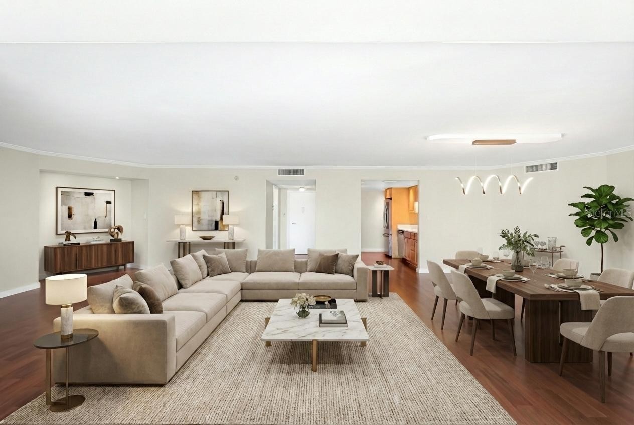 One or more photo(s) has been virtually staged. Welcome to Regency House, nestled in the heart of Sarasota on a serene, tree-lined street—ideally located between Gulfstream and Palm Avenue. Enjoy sweeping views of Sarasota Bay, breathtaking sunsets, and effortless walkability to the city’s premier dining, shopping, cultural attractions, and the bayfront. This beautifully updated 1,829 sq. ft. residence is designed with both style and function in mind, featuring a spacious split floor plan that maximizes privacy. The living room opens to spectacular north- and west-facing views, where sparkling city lights, Marina Jack’s Park, and Sarasota Bay create a stunning backdrop. Thoughtfully integrated shelving adds versatility and easily adapts to a dedicated home office set up. Modern upgrades include new flooring, a fresh neutral palette, and a sleek kitchen with stainless LG appliances and a Bosch induction cooktop. With abundant storage and generous counter space, the kitchen is ready for everything from casual meals to lively entertaining. Each bedroom is a private retreat, offering gorgeous sunset views, updated baths, and abundant closet space—including brand-new $50,000 custom organizers. A versatile bonus/storage room provides additional flexibility for work, hobbies, or extra belongings. Resort-style amenities enhance everyday living: a heated pool, fitness center, stylish club room with catering kitchen, and the peace of mind of 24/7 concierge service. A full-size, in-residence washer and dryer make this home as practical as it is luxurious.Don’t miss this rare opportunity to experience vibrant downtown living with every convenience right at your doorstep.