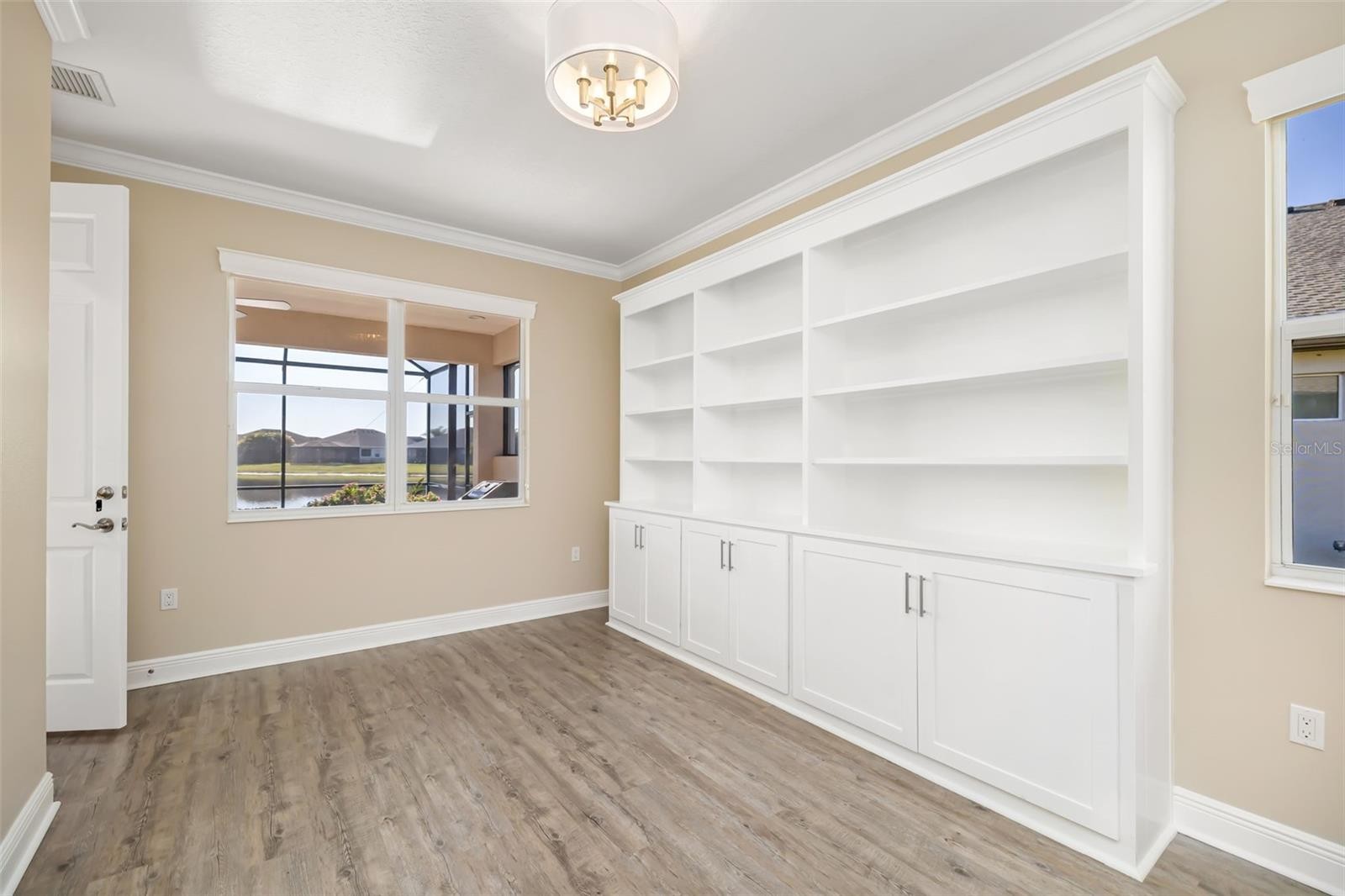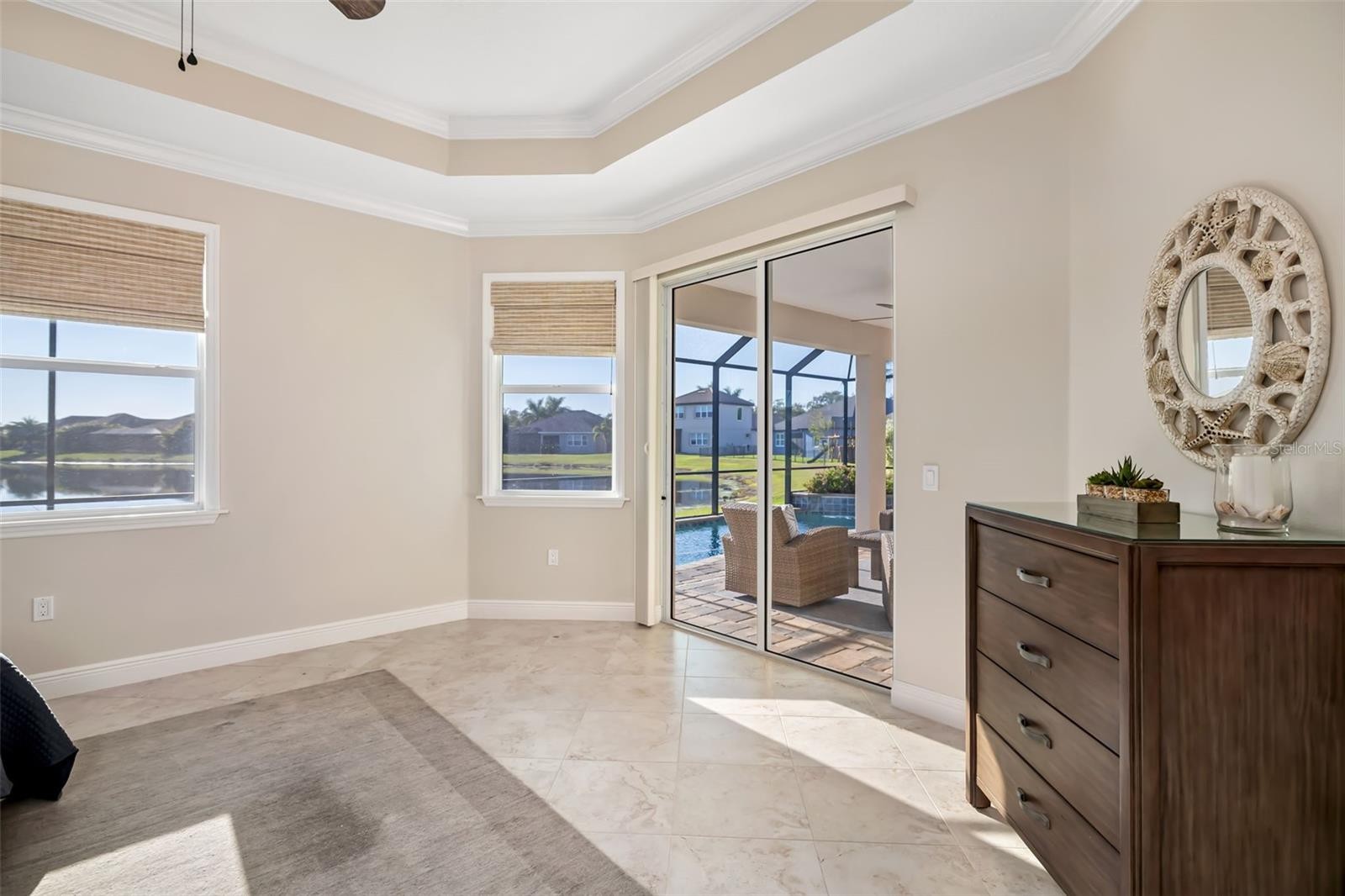 Experience exceptional Florida living updated 4-bed, 3-bath waterfront home in the resort-style community of Greyhawk Landing, one of the most desirable gated communities. Captivating curb appeal, the open layout, where vaulted beamed ceilings, porcelain tile and designer accents create a bright, seamless space for relaxing and entertaining with walls of windows showcase a sparkling water view, filling the living spaces with nature light and a serene backdrop. The primary suite is a peaceful retreat with breathtaking water views, tray ceilings, dual walk-in closets, and a spa-inspired en-suite bath. A private second suite currently used as an office includes custom built-ins and makes an ideal in-law suite or flexible space for work or guests, perfect for multigenerational living. Two additional bedrooms for comfort and privacy at the front of the home. Step outside to the expansive screened lanai with a paver pool deck surrounding the heated saltwater pool. Perfect for entertaining, the lanai is plumbed with a sink and includes a natural gas stub for future outdoor kitchen design. Impressive upgrades throughout, plantation shutters and modern window shades, fresh interior paint, LED lighting, whole-house water filtration, new toilets, and impact front glass door. The 3-car garage is exceptional with insulated doors and ceilings, epoxy flooring, fresh paint and a dedicated split A/C system for climate-controlled storage or workspace. Greyhawk Landing, allows fencing, and residence have access to two resort-style pools, fitness centers, tennis and pickleball courts, playgrounds, trails that wind throughout the community, fishing pier, soccer and baseball fields and clubhouses, large bodies of lakes, lush tropical Florida landscaping, and frequent wildlife sightings. With easy access to Lakewood Ranch, shopping, restaurants and I-75, Gulf Coast beaches, top rated schools and colleges, IMG academy, Nathan Benderson Park, this is where everyday living feels like a vacation.