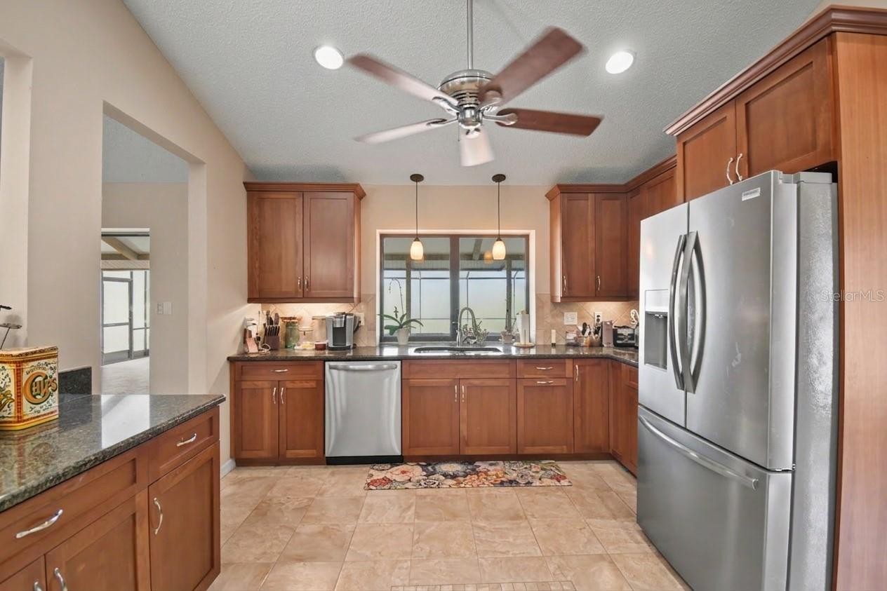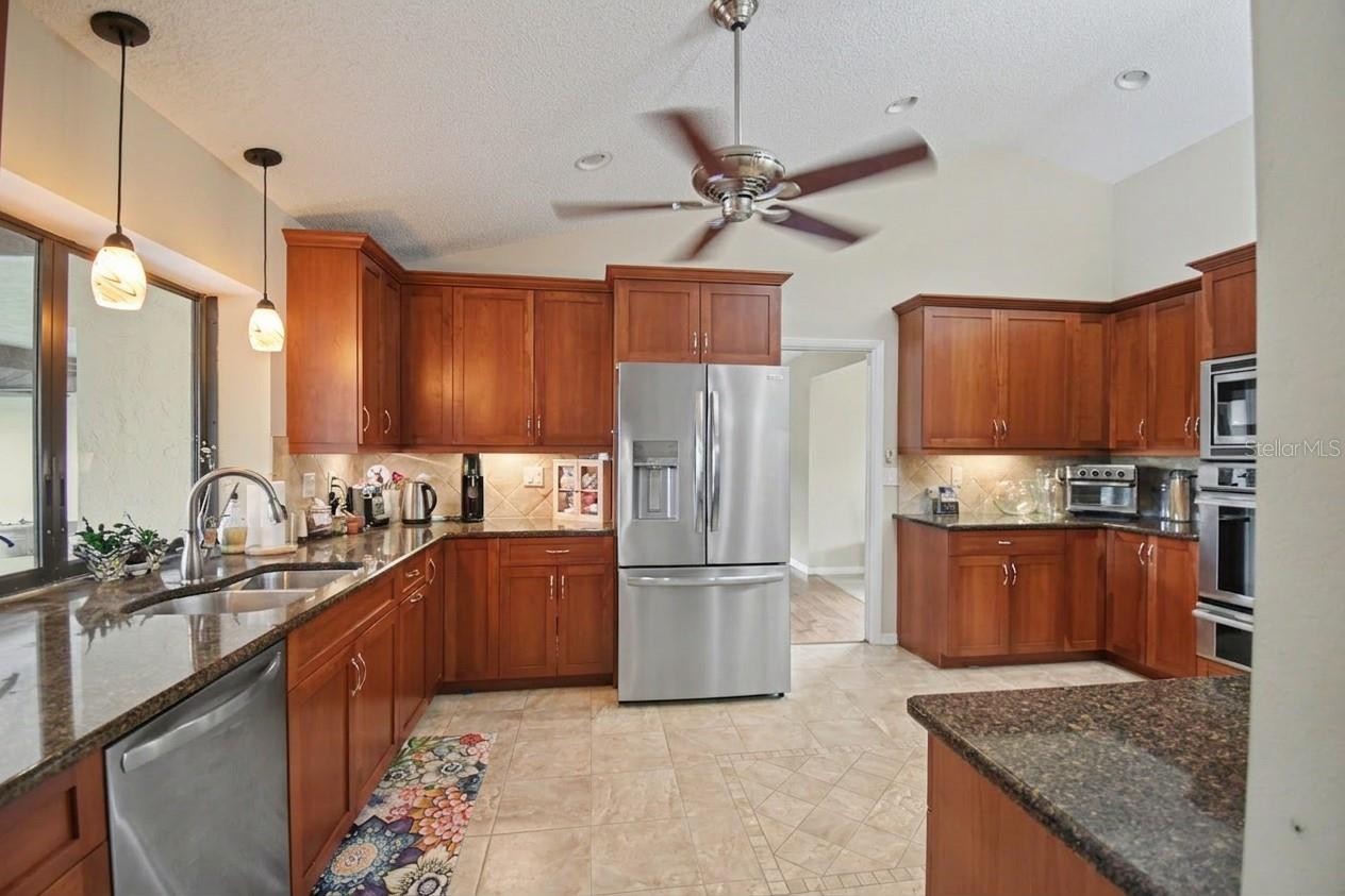 One or more photo(s) has been virtually staged. Welcome to this beautifully maintained 3-bedroom, 3.5-bath pool home with a 3-car garage, offering 2,615 square feet of comfortable living in the highly desirable Bent Tree Village community. Perfectly situated at the end of a quiet cul-de-sac with virtually no through traffic, this home enjoys an exceptionally peaceful and private setting rarely found in the neighborhood. Surrounded by mature landscaping and overlooking serene creek and golf course views, the property offers a truly picturesque backdrop, creating a calm and inviting atmosphere both inside and out. Designed for comfortable living and entertaining, the home features spacious living and family rooms along with a large kitchen highlighted by vaulted ceilings, rich cherry cabinetry, stone countertops, stainless steel appliances, a built-in oven and microwave, separate cooktop, and a convenient pass-through window to the outdoor patio. The split-bedroom floor plan provides excellent privacy for both owners and guests, while a cozy wood-burning fireplace and east-facing exposure fill the home with warm natural light throughout the day. Step outside to the private screened lanai and pool area, where the tranquil water and golf course views create an ideal setting for relaxing, entertaining, or simply enjoying the quiet natural surroundings. Numerous updates provide peace of mind, including a 2015 roof, 2022 HVAC system, 2021 water heater, 2016 pool resurfacing, 2019 poly-pebble patio, 2022 irrigation system, 2021 hurricane shutters, and a 2017 garage door. Conveniently located near I-75, University Town Center, SRQ International Airport, Gulf beaches, Mote Marine SEA, Rothenbach Park, Urfer Family Park, and numerous golf courses, this home offers the perfect balance of privacy, scenery, and convenience—all within one of Sarasota’s most established communities.