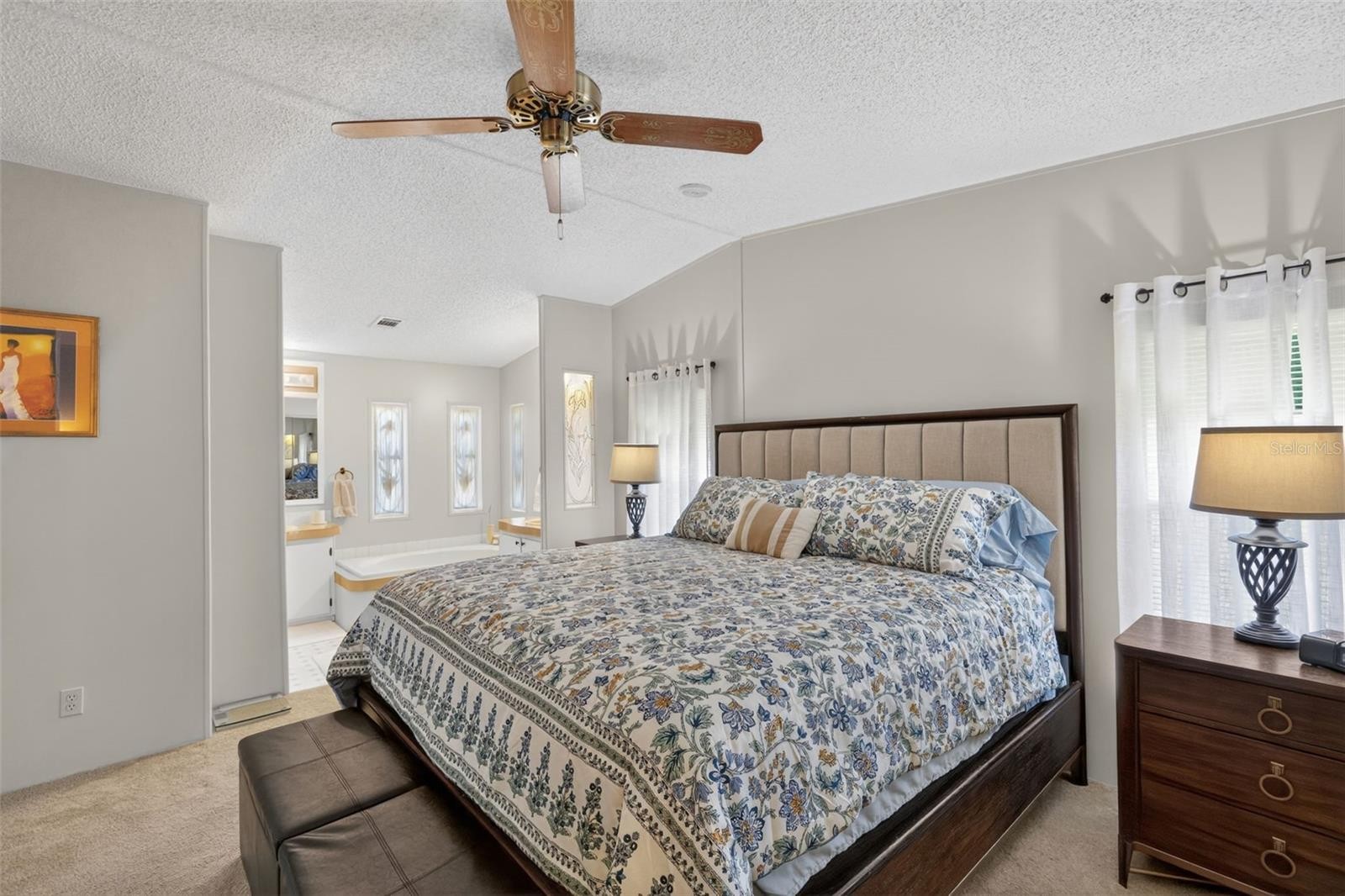 This charming 2 bedroom, 2 bath home is situated on a uniquely wide lot in the pet area. The entryway features a double closet and pantry. The kitchen/family room combo is perfect for entertaining. The kitchen has a center island and breakfast bar with a flat cooktop, while the family room offers built-in cabinets for extra storage. Sliding glass doors open to the screened lanai for even more space. In addition, there is a more formal dining /living room area for larger gatherings with more built-in cabinetry. The primary bedroom and ensuite bathroom are sizable with a double built-in closet and soaking tub. The guest bedroom is extremely comfortable with a “jack and jill” bathroom giving your guests added privacy. Vaulted ceilings throughout, newer all-weather roof and transferable warranty. Hurricane front windows, AC 2018, newer water heater, plumbing and electrical panel box. Long drive to carport allowing multiple parking spaces to accommodate your guests. Home is being offered partially furnished. GOLF CART INCLUDED. La Casa boasts 974 homes nestled among a variety of native trees with spacious common grounds surrounding our eight lakes. The ultimate lifestyle on Florida’s Gulf Coast is located between Sarasota and Fort Myers and is a boaters dream with access to the Gulf of Mexico. It is convenient for shopping, sightseeing, golfing, fishing, and boating, as well as all the culture and elegance the Southwest Florida area is noted for. Residents and visitors enjoy the warmth of Southwest Florida winters in a relaxed and unhurried environment far removed from the hustle of Florida’s east coast. You’ll be surrounded by hundreds of palms reaching for the sky and beautiful mature lush landscaping which demonstrates the utmost level of care our property receives from residents and management. La Casa may have the best pools in the area. Our extremely large, 40 X 60-foot swimming pool is our crown jewel and that is kept at a perfect 87 degrees. Our smaller 20 x 40 pool is quietly nestled between the clubhouse and the Activity Building. Both pools have adjacent hot tubs which are ideal for soaking muscles that are tired from golfing or tennis. Wireless Internet (Wi-Fi) is available at the Clubhouse, Activity Building, and Recreation Hall area where these pools & spas are located, so you can catch some rays while you catch up on your email! Sound enticing? La Casa is a friendly, family community. You will be away from the hustle and bustle except when you want to be part of it. When you leave our gates, North Port is only 1.5 miles from the city center, where you will find every kind of retail store and service you could need. Come for a visit to this self-contained oasis and see for yourself why La Casa is the ultimate destination for both snowbirds and year-round.