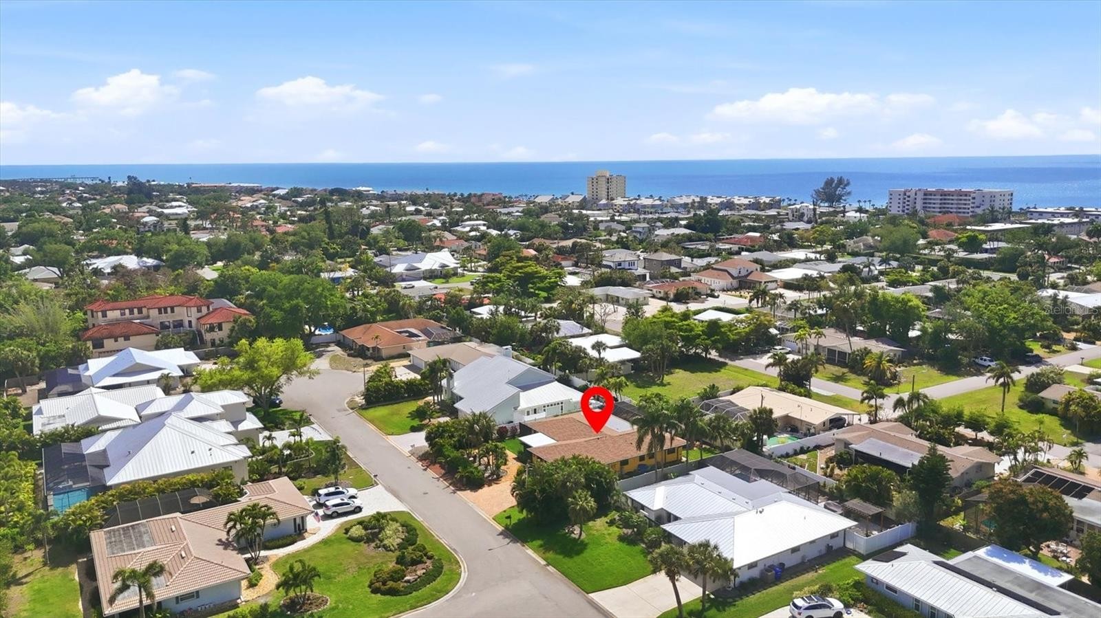 Tucked away on a quiet, private double cul-de-sac on Venice Island, is a very special home within walking distance of the Gulf, as well as downtown with all of its activities! This beautiful home, pool, pool cage, and yard, has been totally renovated within the last 6 years. The spacious screened patio off the front entrance has sunrise sky views as well as a great place for coffee in the morning or a glass of wine with friends when the day is done. The front patio overlooks a professionally landscaped, low maintenance front yard, including a fruit bearing coconut tree, and is wrapped in privacy from the street. Leaving the front door & windows open to the screened front patio, and the 2 sliding glass doors to the lanai, gives you wonderful breezes throughout the home! Walking into the home, the dramatic oversized waterfall edge kitchen island commands your attention, with plenty of entertainment space in the living area as well. The kitchen cabinets are sleek and contemporary with abundant storage. There is a designated coffee bar as well as a wine cooler tucked out of sight, so you always have enough of both! The dining area features custom wood beams on the ceiling and contemporary lighting. Master suite is gracious, including a steam room shower, large walk-in closet and a private door to the lanai and pool. The pool surround was enlarged for relaxing & entertaining, the lanai curtains soften the setting sun, and a convenient pool shower is available for your after-beach excursions. All four pool decks and lounge chairs remain with the home so nothing can stop you from a little R&R while you unpack! A private well supplies irrigation all year, and a whole house filtration system insures healthy water for you. Two of the three bathrooms are ensuite, convenient for guests, a returning student or adult child. The yard is landscaped with paths, mature plants, and is fenced for privacy and pets. The 2-car garage has epoxy flooring and the floor to ceiling cabinets are there so all your storage is out of sight! Sitting on higher ground than the surrounding area, it has not suffered damage from the last few hurricanes. With all the recent updates, this home should give its new buyers years of low maintenance and lots of enjoyment! Don't miss this one!