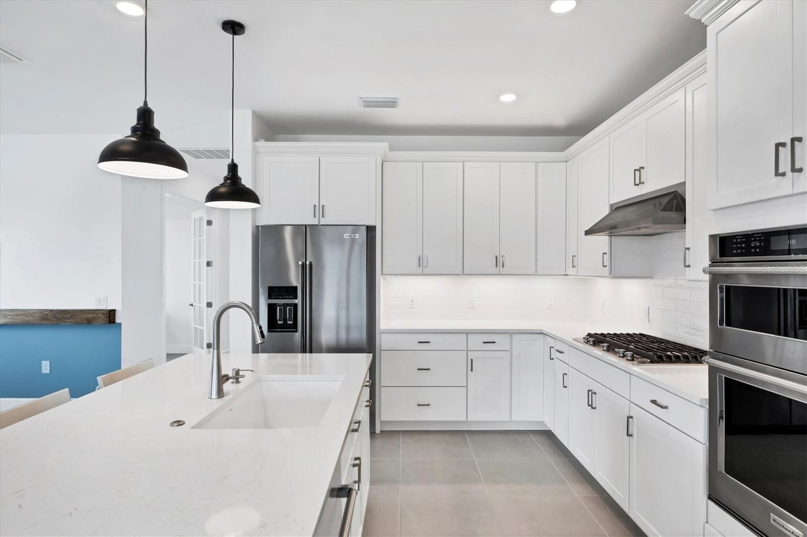 Why wait to build? This nearly new, lakefront Pulte Homes residence (Distinctive Series—Mystique floor plan) delivers the finishes and upgrades you want—already in place. Lived in for less than three months and just about one year old, it showcases beautiful stone-accented curb appeal and an extended gathering room that adds rare everyday living space. The premium waterfront lot offers peaceful views and room for a future pool. Inside, a smart great-room layout with a split-bedroom plan provides 3 bedrooms, 3 full baths, and a flex room with French doors, ideal for an office, den, or hobby space. Approximately 2,251 sq. ft. under air keeps everything spacious yet easy to maintain. The kitchen is both stylish and functional with shaker, soft-close cabinetry, a large walk-in pantry, quartz countertops, subway-tile backsplash, and a counter-height breakfast bar, perfect for prep and casual dining. Enjoy natural gas cooking with a cooktop plus in-wall oven and microwave. The private primary suite features a bath with dual sinks and a walk-in shower. Guests will appreciate the en-suite guest bedroom (Bedroom 3) for comfort and privacy. Flooring is tile throughout the main living areas (Bedroom 2 is carpeted). Thoughtful extras include a coat closet and a large laundry room with cabinetry, utility sink and a folding surface. The 2-car garage comes finished with an epoxy floor and an electric-vehicle charging station. Additional peace of mind: Hurricane rated IMPACT WINDOWS AND DOORS THROUGHOUT, transferrable BUILDER WARRANTY plus this home is NOT located in a flood zone. Located within Arbor Oaks at the Woodlands, a gated community, residents enjoy a resort-style amenity lineup: stunning clubhouse, heated pool and hot tub, pickleball, tennis, fitness center, poolside Barefoot Bar, BBQ grills, fire-pit lounge, bocce, dog park, and an activities director. HOA dues are $934/quarter and include lawn care and irrigation maintenance/repair. CDD fee is included in the property tax bill. You'll be less than 30 miles from award-winning Gulf beaches and just a few miles from I-75, local shopping, golf courses, and entertainment. Downtown Wellen Park and the new Atlanta Braves Stadium are only 20 minutes away. Immaculate, move-in ready, and upgraded beyond builder basics—this lakefront home delivers the lifestyle you’re seeking without the wait. Schedule your tour today.