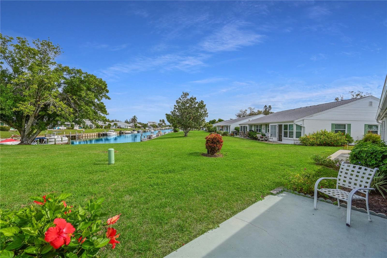 WELCOME TO YOUR COASTAL CANAL-FRONT VILLA- Nestled in the heart of a picturesque bay and canal front community this nicely appointed turnkey furnished residence is ready for your immediate enjoyment. With available boat docks and a prime location near the clubhouse and amenities just around the bend, this villa offers the ultimate Florida lifestyle. MODERN UPGRADES FOR PEACE OF MIND- You'll appreciate the thoughtfully updated features, including, 2022 impact windows, 2021 Trane HVAC system, and a 2019 Rheem water heater. SUPERIOR CONSTRUCTION & CONVENIENCE- Enjoy the security of a newer 2018 roof with third nails in the roof-wall connectors and solid concrete block construction. A private carport and driveway, along with a 12x5 secure storage unit for electric bikes, beach gear, and sports equipment, add to the villa’s convenience. Plus, guest parking is conveniently located on both sides of the villa. OUTDOOR BLISS- Step onto your spacious waterfront patio, a tranquil retreat for grilling, lounging, and watching mullet, manatees, and dolphins play in the canal. The expansive lawn offers ample space for bocce ball, croquet, and cornhole, while the carport seating area provides the perfect front-porch atmosphere to take in lake views and vibrant sunset skies. A BRIGHT & INVITING INTERIOR- Inside, abundant natural light and an open-concept layout create an airy and welcoming space, ideal for everyday living and entertaining. You’ll enjoy all the lovely views! A SPACIOUS KITCHEN- Designed for both convenience and function, the kitchen seamlessly connects to the dining area and features stainless appliances, a closet pantry, generous counter space, a handy breakfast bar, a deep double-bowl sink, and peeks at the sparkling lake and canal. The open layout ensures the chef stays connected to the festivities. SEAMLESS LIVING & DINING- The spacious dining and living area blend effortlessly, with a charming chandelier accenting the dining space and coastal-casual furnishings setting the perfect ambiance for relaxation and entertaining. Wall-to-wall windows provide captivating waterfront and nature views. Accessed from the living room the inviting lanai offers a serene retreat—perfect for starting your day with a morning coffee or unwinding in the evening as you enjoy the gentle breeze. SERENE BEDROOM RETREATS- The primary suite, tucked at the rear for privacy, boasts tranquil views, a spacious walk-in closet, and an ensuite bath with an updated vanity, lighting, fixtures, and a tub/shower combination. The secondary bedroom at the front features a wall of closets, serene lake views, and an adjacent bath with a stunning remodeled walk-in shower, updated vanity, cabinetry, lighting, and fixtures. EXTRA HIGHLIGHTS- This meticulously maintained villa also includes a storm door with a retractable screen, gutters and downspouts, ceiling fans, and a tasteful mix of tile and carpet flooring. COMMUNITY HAS IT ALL- clubhouse, banquet room, billiards, ping-pong, library/game room, lakeside veranda; boat docks; heated pool; tennis; pickleball; shuffleboard; bocce ball; spa; sauna; workshop; chip/putting green; walking paths; butterfly garden; bay front park; kayak launch/storage; bayside pavilion; lakeside gazebo; bird sanctuary; tidal pond; many lakes & spacious grounds of nearly 90 acres teaming with wonderful Florida wildlife; many activities/socials! ENJOY THE BEST- of coastal living with comfort & breathtaking surroundings. Schedule a showing today.