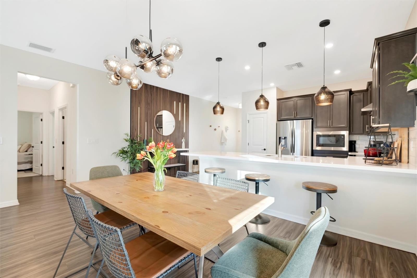 Welcome home to 4411 Windy Hammock Way, where thoughtful upgrades, serene water views, and true Florida indoor-outdoor living come together beautifully. This exceptional home stands out from the moment you arrive, offering a rare blend of style, comfort, and upgraded design touches throughout. Step inside to discover a home that feels anything but ordinary. The seller has added custom finishes and touches in every room, creating a warm, inviting space that is truly one-of-a-kind and far above builder-grade. Each area flows effortlessly, making the home ideal for both everyday living and entertaining. Out back, your private oasis awaits. The screened-in lanai views sun-kissed palm trees, peaceful green space and a relaxing water view. The Salt Water Pool heats and cools to provide the perfect temperature for year-round enjoyment. This outdoor space is ideal for morning coffee, weekend gatherings, or relaxing at sunset with a beautiful view of the western sky. This home offers the Florida lifestyle you are searching for! Don't settle for less! From the upgraded interior details to the exceptional outdoor living space, 4411 Windy Hammock Way truly stands above the rest. Located in the desirable Willow Walk community, offering access to the Resort Style Community Pool for socializing with neighbors, and a Playground for outdoor fun. Close to shopping, dining, entertainment, and the sugar sand beaches of the Gulf Coast. Homes like this, with a water view, upgraded pool features, and custom character, are rare! Don’t miss the opportunity to make this standout home your own!