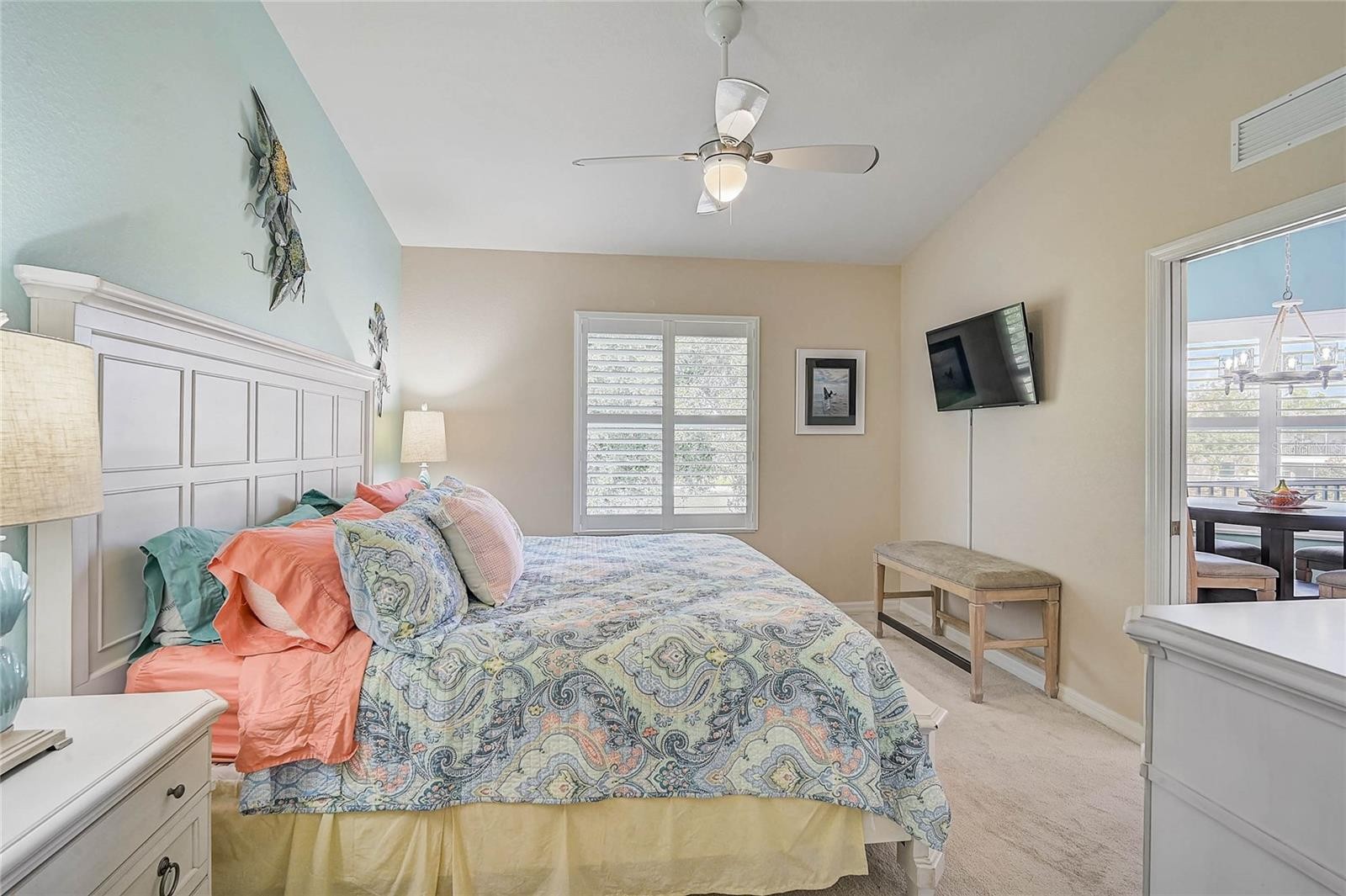 Wake up to shimmering pond views, mature trees, and the gentle rhythm of nature in this light-filled, corner residence tucked inside the highly sought-after Venetia community of Venice. Framed by lush landscaping, abundant birdlife, and even the occasional bobcat sighting, this home offers a peaceful setting with a glorious water view that feels like a private retreat. A welcoming front sitting area creates the perfect spot for morning coffee or evening conversations, where screened and storm-protected entry doors invite fresh air and cooler breezes to flow easily through the home. With lanai sliders open, enjoy effortless front-to-back airflow that enhances the home’s open, airy feel. The screened lanai is tiled, creating a clean, comfortable outdoor extension ideal for relaxing and enjoying the view. Inside, high ceilings and plantation shutters throughout complement the abundance of natural light this corner location provides. Ceramic tile flows through the main living areas, while the bedrooms feature well-maintained carpet in excellent condition. Closet organizers add everyday functionality, and impact-rated windows designed to withstand up to 250 MPH winds provide peace of mind. The kitchen features a convenient breakfast bar along with an open, flexible dining space that comfortably accommodates a table for four, creating a natural transition into the main living area. Thoughtful upgrades include a tile backsplash, pantry with linen shelving, pull-out cabinetry, and under-counter lighting. Just beyond, the living room offers a built-in buffet that can be used for serving, storage, or styled as a dry bar—ideal for entertaining or everyday living. Sliding doors lead back to the tiled, screened lanai with a blackout shade for comfort and privacy while overlooking serene pond views and mature greenery. The laundry room is generously sized and upgraded with a deep-well utility sink, cabinetry, shelving, refrigerator, multiple windows for natural light, and a dedicated folding area—making it both functional and well organized. Venetia is known for its friendly neighbors, active lifestyle, and resort-style amenities, including a heated community pool, specific pool for Casa di Amici, hot tub, clubhouse, fitness center, tennis, bocce and pickleball courts, and scenic walking trails. Shopping and restaurants are conveniently located along with Venice’s beaches, historic downtown, and everyday conveniences are just minutes away. This is Florida living at its finest—peaceful, connected, and perfectly positioned. ¤ Please see 3D Tour and Video ¤