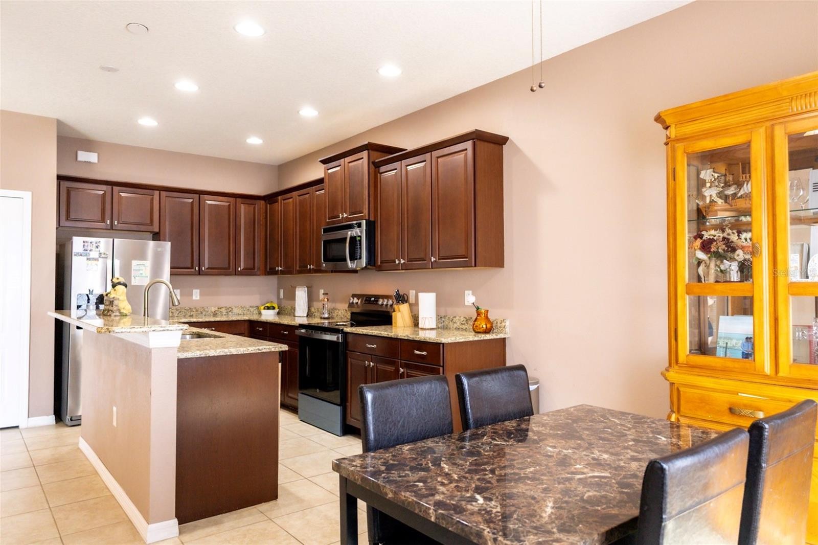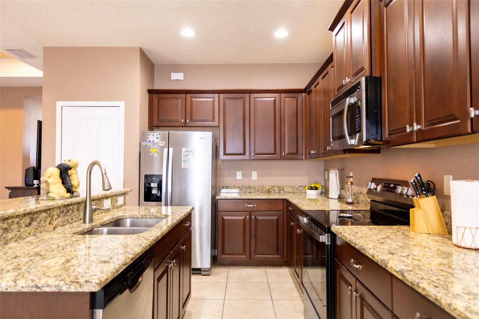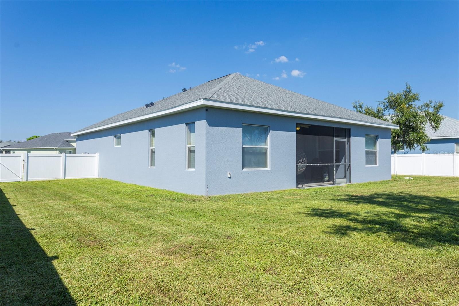 Discover this beautifully updated single-story retreat, blending style, comfort, and peace of mind with major recent improvements. This home boasts a new 2025 shingle roof, a freshly painted exterior, new PVC fencing enclosing the entire yard — perfect for privacy and outdoor living. Inside, comfort continues with newer laminate flooring in the bedrooms and an air conditioning system that was replaced in 2021, which offers efficiency and reliability. Step into the heart of the home — a gourmet kitchen designed to inspire. Granite countertops, rich wood cabinetry, and stainless steel appliances pair elegance with functionality, while the open-concept design ensures seamless flow for entertaining or quiet evenings at home. The home’s main bedroom features 2 walk-in closets which would accommodate any fashionista’s wardrobe. Practical perks include a spacious two-car garage, included washer and dryer, and a warm neighborhood atmosphere with no CDD fees. Whether it’s weekend gatherings, family time, or simply unwinding in your private oasis, this home is move-in ready and waiting for you. Don’t miss out — schedule your private showing today and make this beautifully upgraded gem yours!