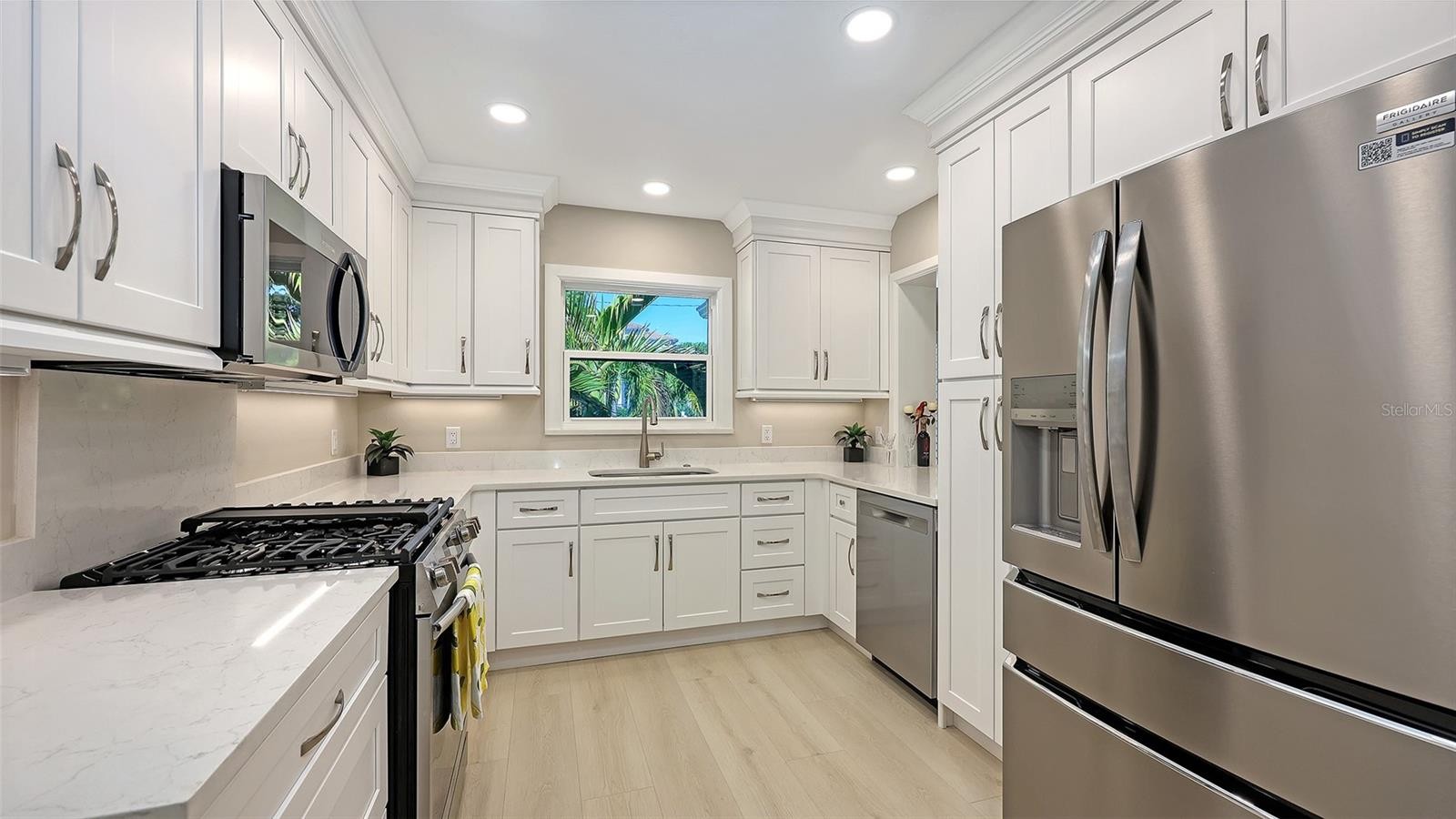 Experience the best of beach living in this beautifully renovated home near the sugar-white sands of Lido Beach and the upscale shops and restaurants of St. Armands Circle. Positioned between these two renowned destinations, this desirable address offers effortless access to both. Offering three bedrooms and three and one-half baths, this bright and airy residence blends timeless charm with modern functionality, and is zoned for seven-day minimum rentals, making it an exceptional opportunity for investors and lifestyle buyers alike. The open-concept layout is highlighted by a soaring 14-foot beam ceiling, skylight windows, and a fireplace that adds warmth and character. A wall of sliding glass doors extends the living space to an expansive screened lanai with an oversized pool and heated spa, travertine deck, covered outdoor kitchen area and fenced yard—creating a tropical outdoor oasis designed for entertaining and relaxation. Inside, the freshly designed kitchen features quartz countertops, white cabinetry and new stainless-steel appliances. New luxury vinyl plank flooring flows throughout the home. The primary suite offers direct lanai access, a dual-sink bath with large shower, and a professionally designed closet space. Two guest bedrooms include custom closets, and one features its en-suite bath. With impact-rated windows and doors, 2025 re-wire and electrical panel, 2024 pool pump, 2025 HVAC, 2017 roof, and fresh interior and exterior paint, this home is move-in ready. Minutes from downtown Sarasota’s vibrant arts and cultural venues, and close to golf, tennis and water recreation, this is your opportunity to own a spectacularly located property in one of Florida’s desired coastal communities. Schedule a private showing today and start living your dream.