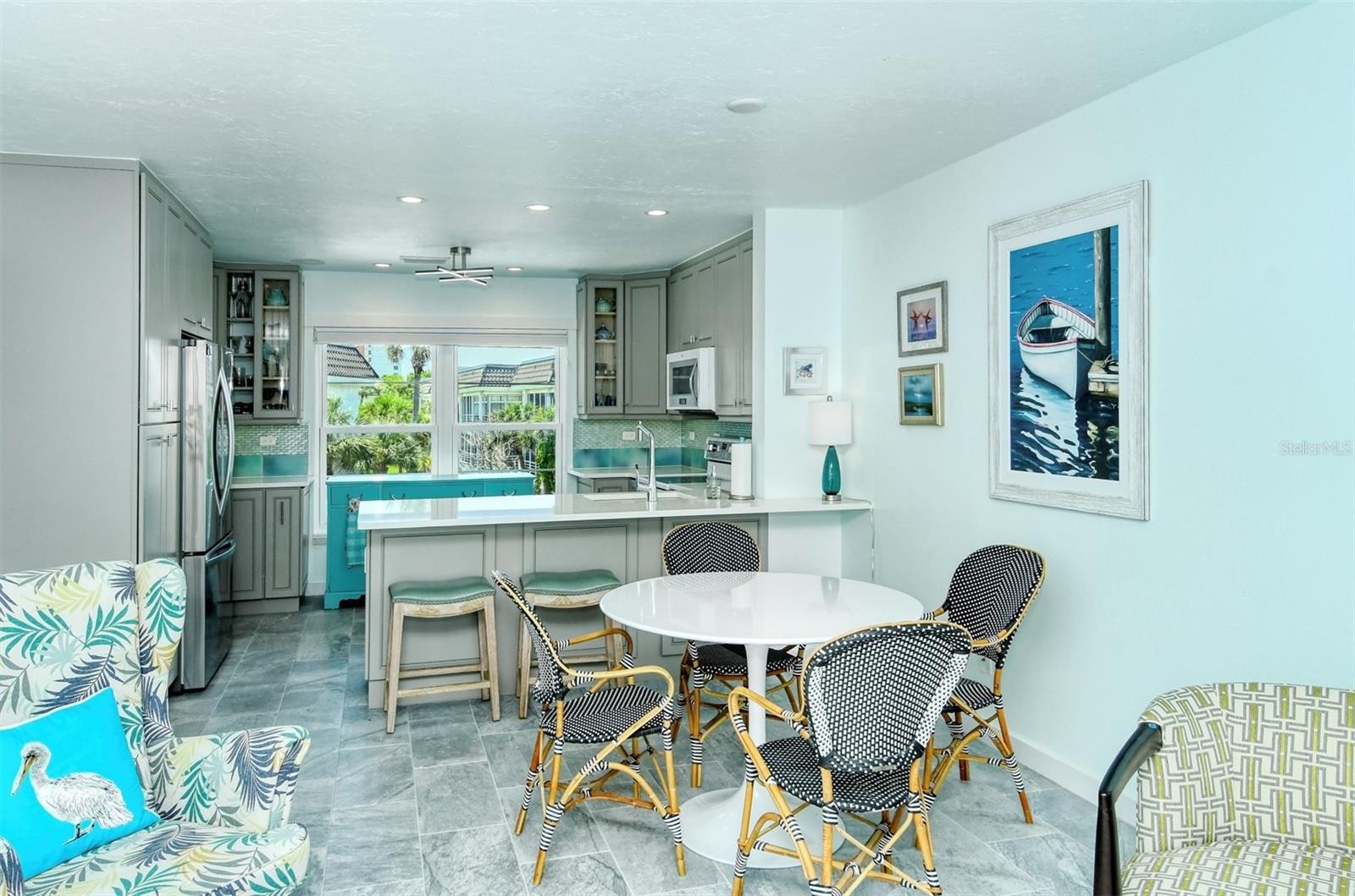 Welcome to this beautifully updated top floor corner furnished residence with Gulf and Bay views that is move in ready. Coming furnished with an open kitchen floor plan and an enclosed lanai overlooking the pool and Sarasota Bay. Large plank ceramic tiles throughout and ceiling fans in every room, impact glass windows in the kitchen and living area and a washer/dryer has been added. The Longboat Harbour community is located mid-Longboat Key with amenities to enjoy including a large clubhouse where many activities occur, with a catering kitchen and dance floor, art studio, billiard and card rooms, and a fully equipped fitness center. In addition, the community has four heated swimming pools, putting green, tennis and pickleball courts, kayak storage, boat slips available for a minimal annual fee for up to a 34’ boat, mini golf, a scenic waterfront promenade along the harbor and canal, and access to a private gated Beach Club on the Gulf side with bathrooms, showers and beach items. The building has just completed a new roof installed. There is additional storage withing the building for each residence.