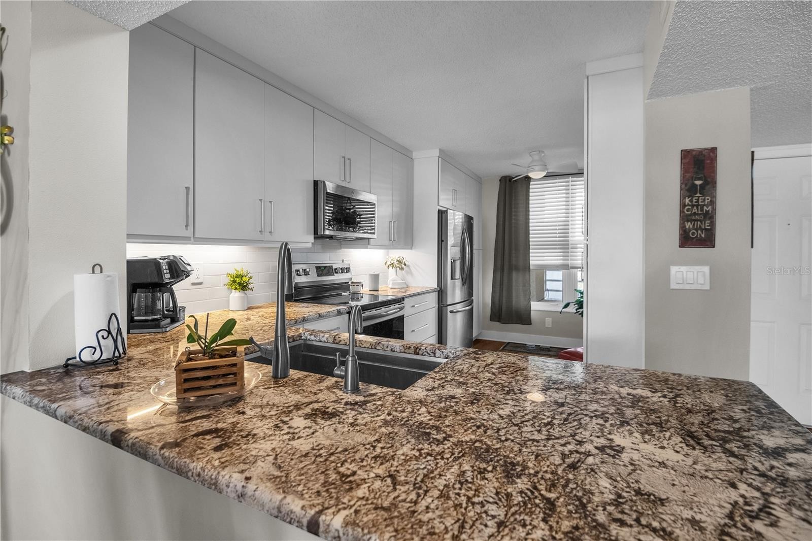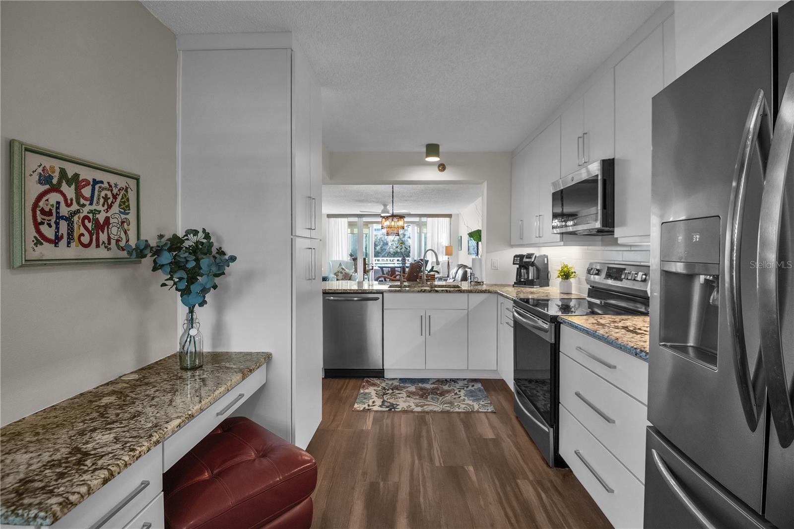 Welcome to Fairways of Pinebrook at Ironwood Golf Course! This beautifully updated 2-bedroom, 2-bath condo sits on the 4th fairway with southern exposure views from a rare 11’ x 26’ elevated terrace — ideal for morning coffee or evening relaxation. Located in a non-flood zone (X), the unit features hurricane impact windows and doors, covered parking, a new HVAC system (2024), water heater (2021), roof (2023), elevator (2023), repaved parking (2023), and fresh exterior paint (2021). Inside, enjoy laminate flooring and carpet, a remodeled kitchen with granite countertops, new wood cabinets, and stainless steel appliances, and a master suite with walk-in closet and terrace access. The community offers a clubhouse with kitchen, library, game room, meeting space, fitness center, large pool and spa, plus a second pool just steps from your door. Only 7 miles to the Gulf beaches making it easy to soak up Florida's famous sunsets. This condo truly is a hole-in-one opportunity for golf lovers and beachgoers alike!