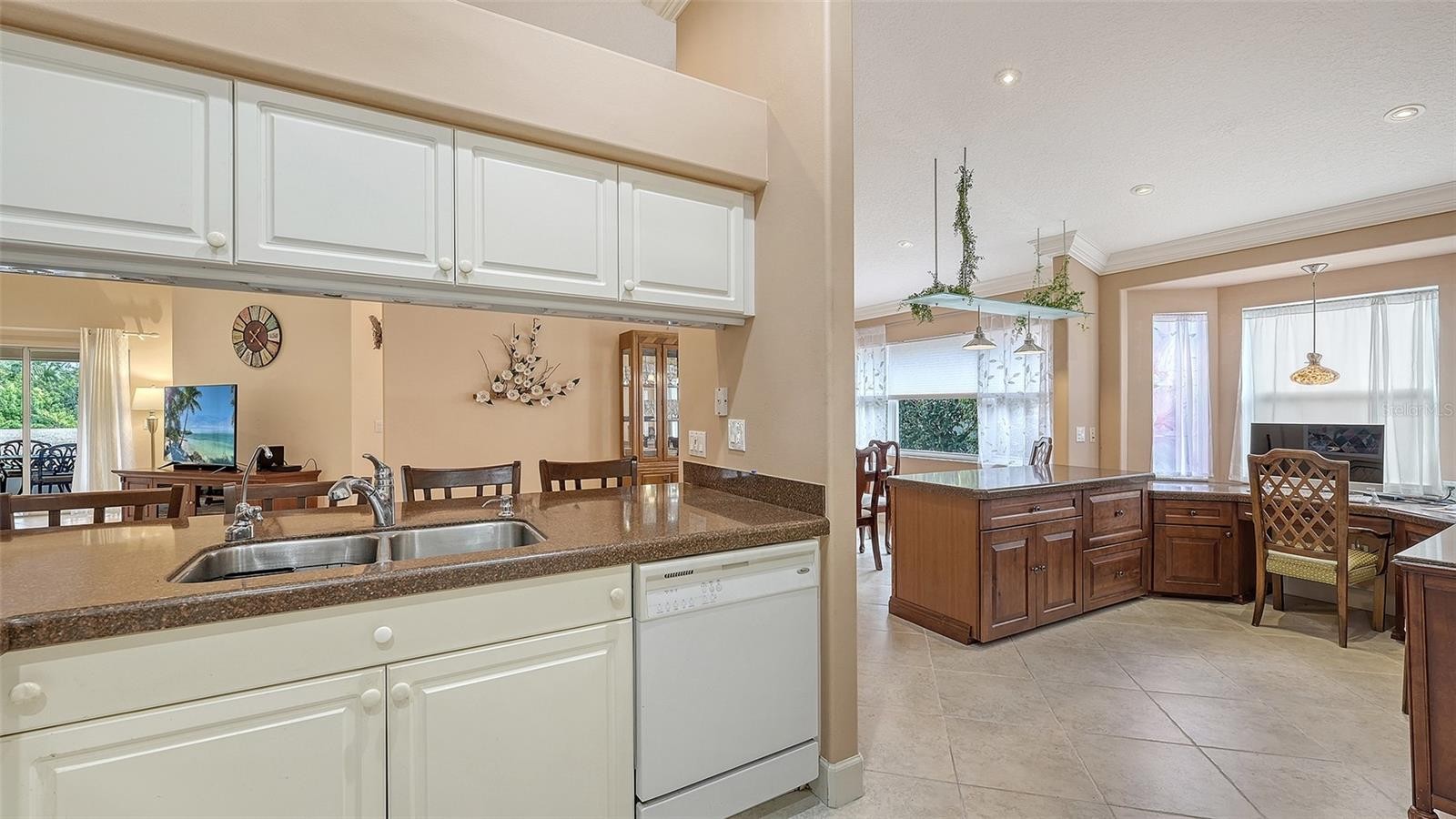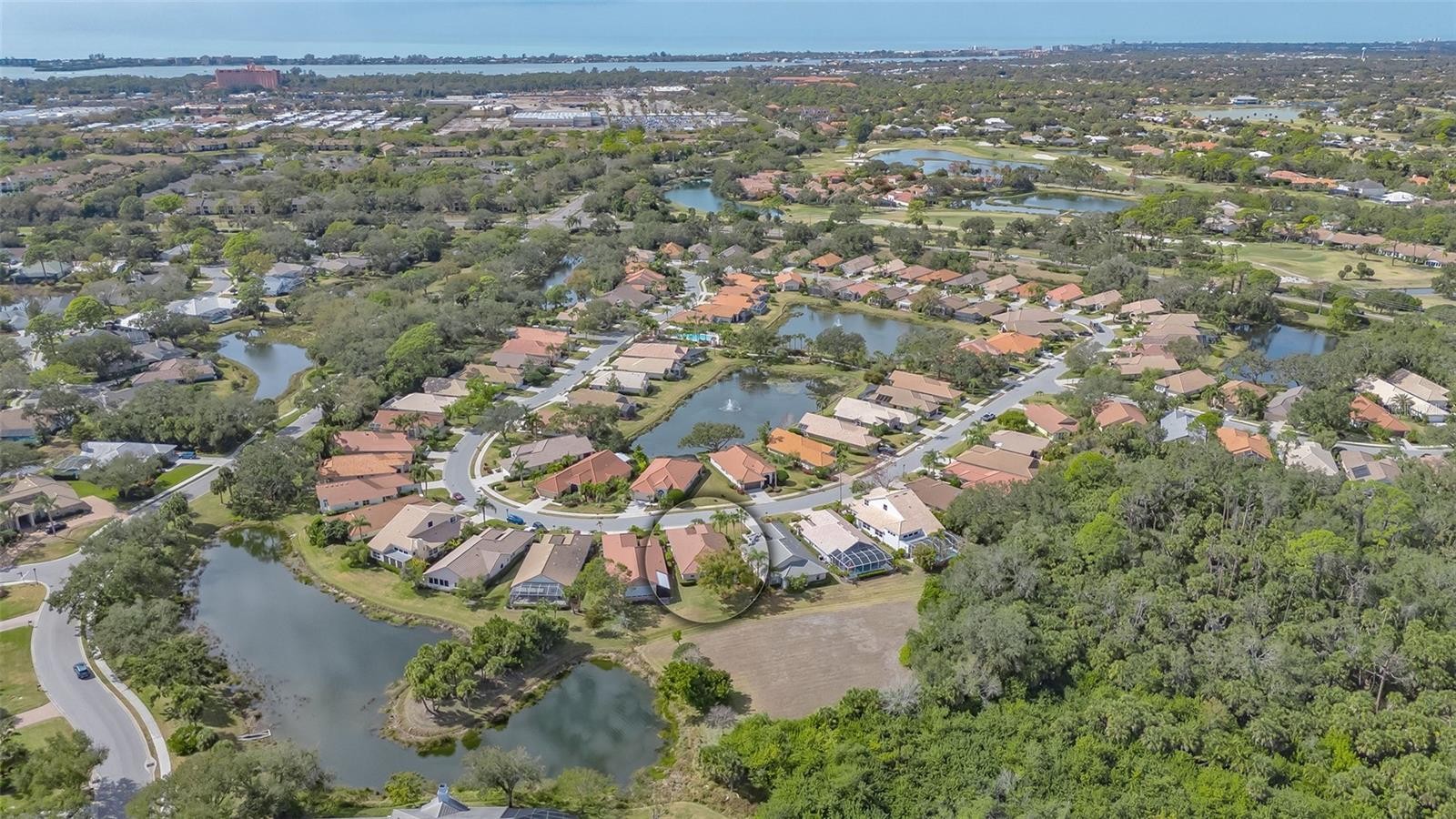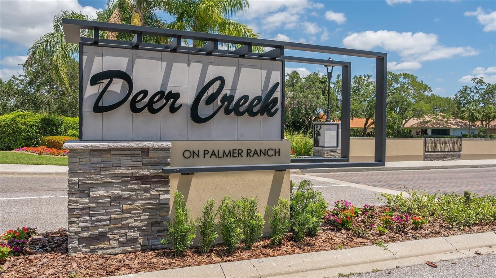 Beautifully updated home in Villas at Deer Creek. This home is located in one of Palmer Ranch's most beautiful mature neighborhoods. The home has many nice features. All rooms are spacious with a great open plan kitchen, dining and living areas. Adjacent to the kitchen is a beautiful built-in executive desk. Cabinets are solid wood. There are two very large bedrooms and an ofiice/den that also has a murphy bed for guests Wrap-around windows and recessed lighting keep all of the living areas light and bright. From the screened lanai you can enjoy long views of the green belt and the lake. There is an inside utility room and a large 2 car garage. The AC was replaced in 2020, This home has a touch of elegance which is seldom found in modern homes. Deer Creek is a maintenance -free community. There is a private neighborhood pool. This location allows for easy access to Lowes, Costco, Target, Publix, banks and numerous restaurants. The Legacy Bike Trail is nearby. Siesta Key is a quick 15 minute drive.