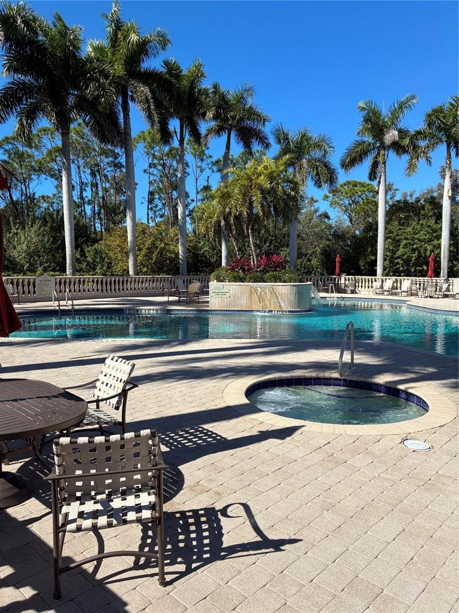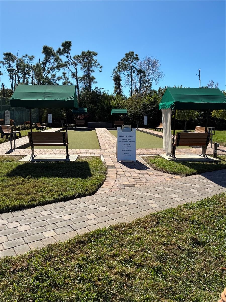 Tastefully upgraded and impeccably maintained, this light-filled home is located in the highly desirable, gated community of Venetia, offering an ideal low-maintenance lifestyle for full-time, seasonal, or downsizing buyers. Curb appeal includes lush tropical landscaping, a paver driveway, oversized garage, and elegant leaded-glass entry door. Inside, soaring ceilings, 4" crown molding (top and bottom), hardwood flooring, plantation shutters, and custom shade window coverings enhance the open, inviting design. The split floor plan provides privacy, while the centrally located kitchen features new Quartz countertops that match the glass mosaic backsplash, warm wood cabinetry, double pantry closets, and new range/oven and microwave. The living area opens through large sliding glass doors to a new screened lanai enclosure, pool, and tranquil pond view. Additional features include a new tile roof, soffits, and rain gutters (2024), AC replaced in 2019, hurricane shutters, security cameras, walk-in tiled shower, updated ceiling fans and fixtures throughout, and negotiable furnishings. Venetia offers a clubhouse, heated pool and spa, fitness center, and tennis and basketball courts, all minutes from Venice beaches, golf, dinning, and shopping.