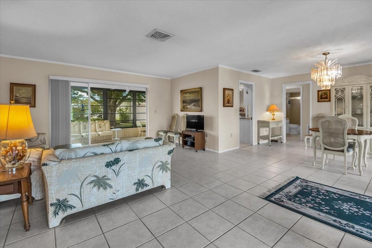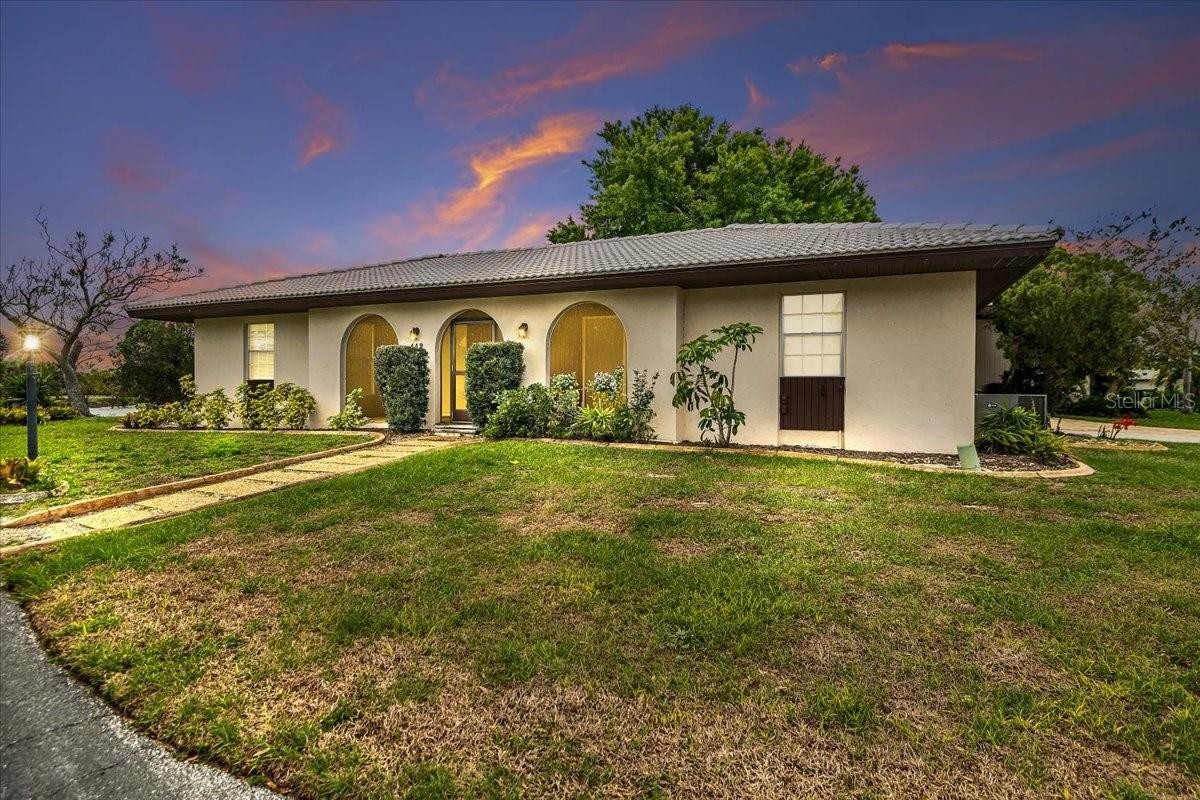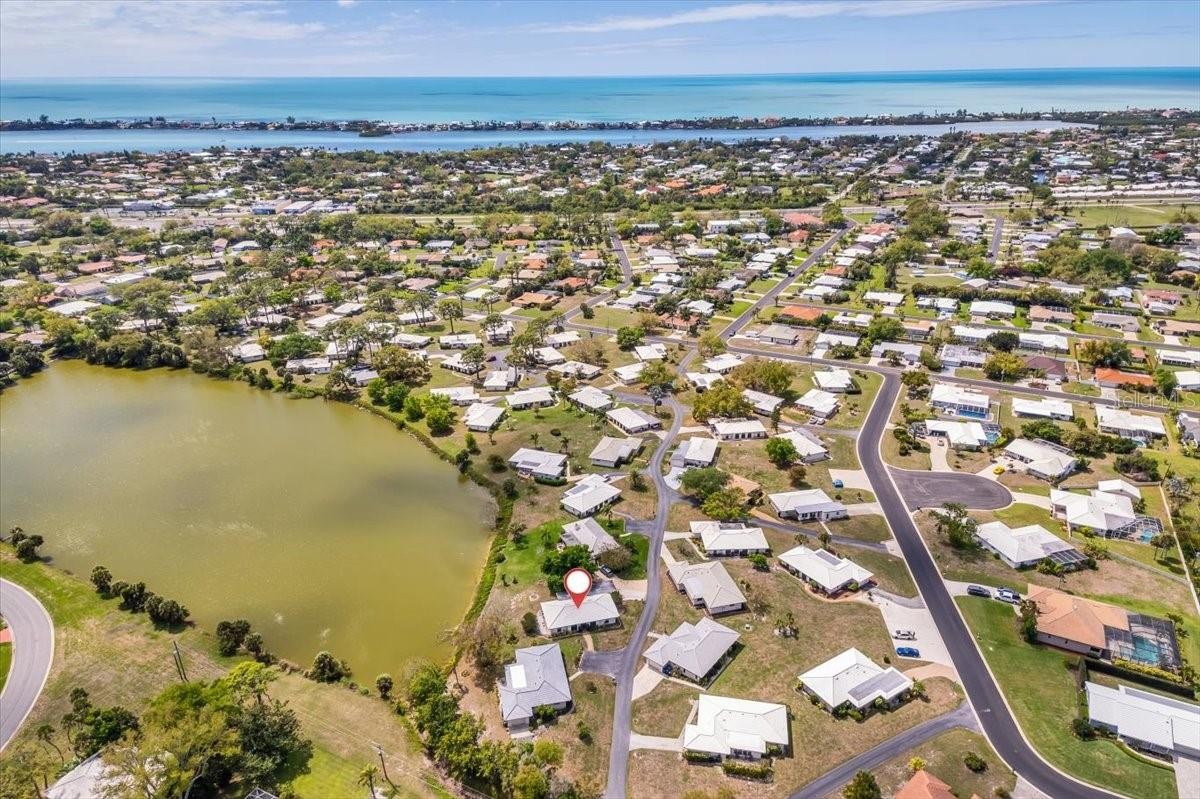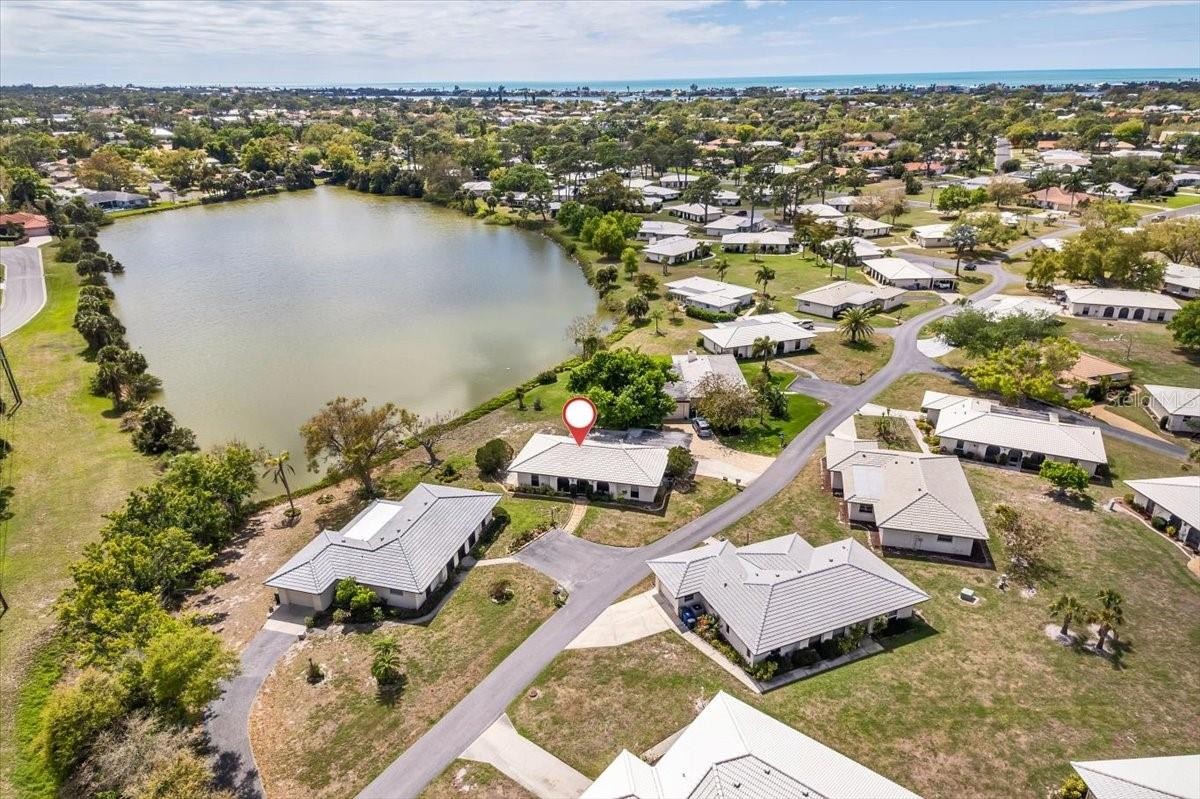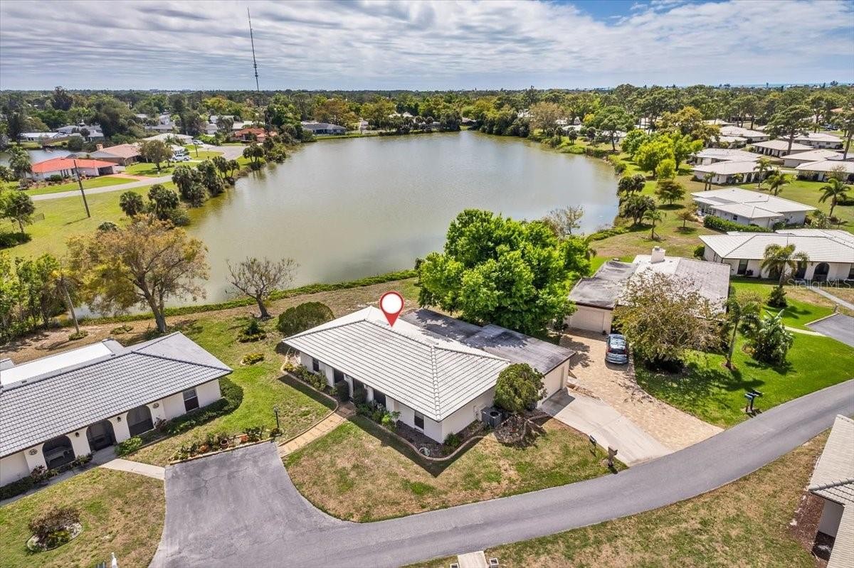 Long Lake view, from this free standing Villa. 2 bedrooms, 2 baths, 1 car garage, plus extra parking place by front door. HOA is $ 535 month BUT it does include the Roof, Lawn care, outside maintenance, and outside painting. Making it a maintenance free condo without neighbors above, below, or around you . Whole house reverse osmosis system. County water and sewer. Block construction. Not a 55 community, X Flood zone means no flood insurance. 4 miles to Nokomis beach. 5 miles to downtown Venice, 13 miles to Sarasota. Buy today, rent tomorrow