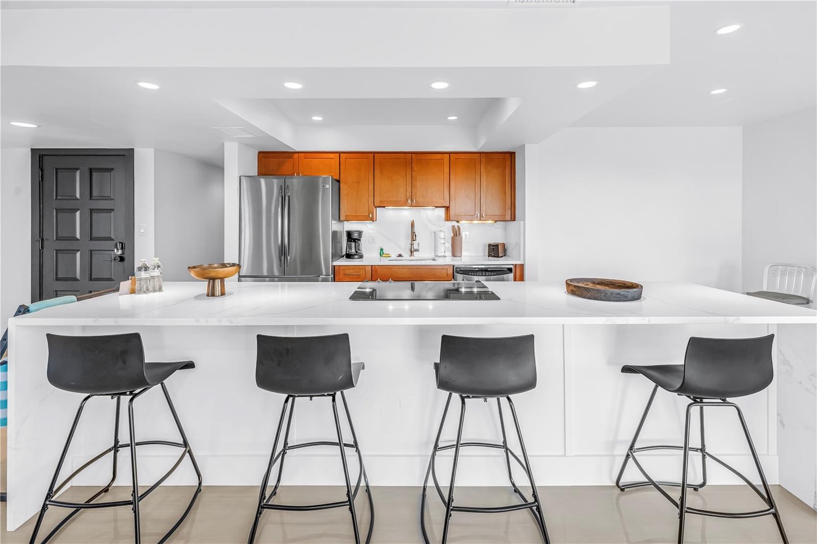 Welcome to 450 Beach Rd Unit 4, a rare opportunity to own a completely remodeled 2025 coastal retreat just steps from the sugar-sand shoreline of world-famous Siesta Key Beach. Located within an intimate five-unit complex, this 3 bedroom, 2 bathroom condominium offers deeded beach access, sweeping Gulf views, and weekly rental flexibility. The interior was fully renovated in 2025 and features a bright, open layout designed for effortless coastal living, complete with sleek tile flooring, marble countertops, stainless steel appliances, and a seamless flow between the kitchen and living areas. Gulf views can be enjoyed from the kitchen, while the private balcony provides the perfect setting for morning coffee or sunset unwinding. Additional conveniences include one open parking space plus an enclosed one-car garage. Recent exterior improvements to the building and grounds include fresh paint, modern balcony railings, Italian terrazzo tile, contemporary privacy fencing, and luxury outdoor lighting, enhancing the curb appeal of this boutique property. Residents and guests enjoy a well-maintained shared pool and an entertainment area with a grill, ping pong table, and cornhole. Just a short stroll to Siesta Key Village, this property offers immediate access to dining, shopping, and nightlife while maintaining a private, resort-style atmosphere. Ideal as a full-time residence, second home, or high-performing investment, this property blends location, luxury, and income potential.