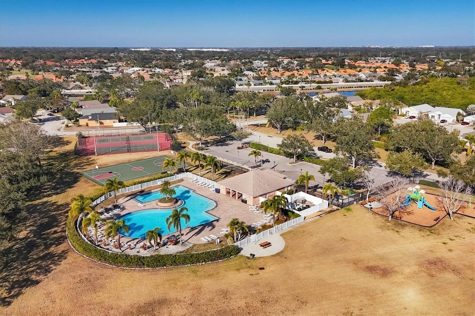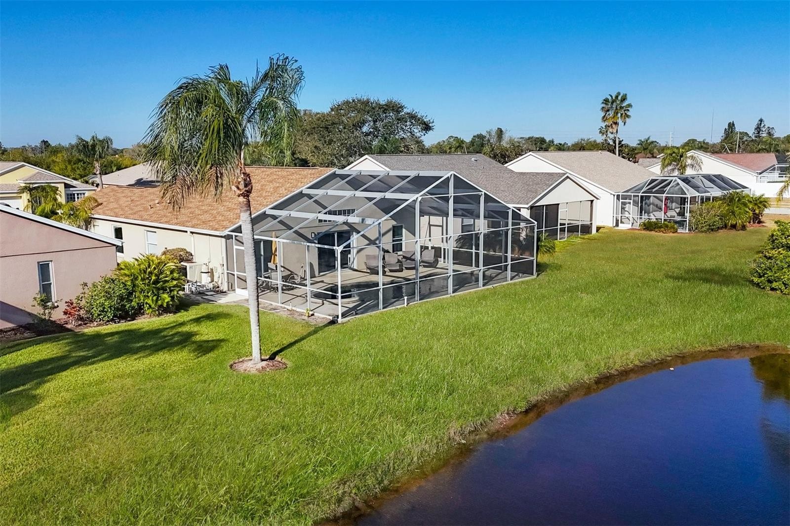 HEATED POOL. POND VIEW. MAJOR UPDATES. Welcome home to Sabal Harbour! This lovely 4 bedroom home features a stunning water view and is priced to sell at just $489,000! Inside, you’ll find soaring ceilings and tile flooring throughout, delivering a bright, open feel that lives larger than its 1,685 sq ft. The split-bedroom layout provides separation and functionality, while the central living space is designed for effortless everyday living and entertaining. The Primary Suite incudes a nice sized bedroom, a walk-in closet, and both a soaking tub and walk in shower in the bathroom. The kitchen offers generous cabinetry, modern appliances, a water purification system, and a spacious breakfast nook. Step outside to the standout feature: a screen-enclosed, heated pool overlooking a wide pond view. The water creates a natural buffer with comfortable distance from neighboring homes, giving you openness without feeling crowded — a setting that provides a peaceful space where you can relax. Major upgrades already completed: Roof (2020), HVAC (2021), Five impact windows, Generator transfer plug, Dedicated EV charger. Furniture is negotiable for added flexibility. With low HOA fees and amenities including a community pool, playground, tennis and basketball courts — plus close proximity to shopping, dining, the Manatee River, and Gulf beaches — this home checks the boxes buyers are actively searching for. Properties offering a heated pool, water view, and major system updates at this price point don’t linger. Schedule your showing and be ready