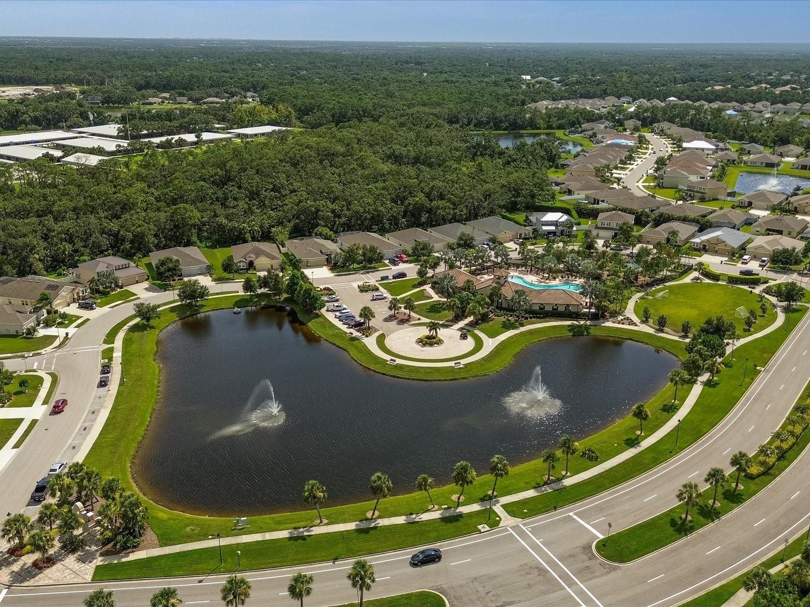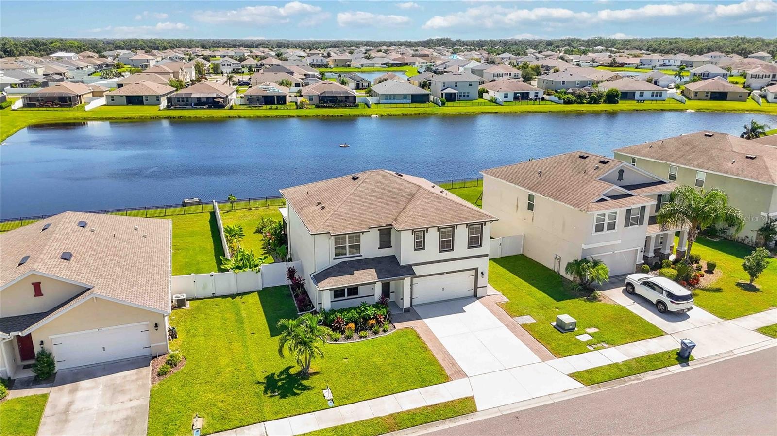 Welcome to your dream home in the peaceful, gated community of Del Tierra, offering NO CDD fees and LOW HOA! This stunning 5-bedroom, 3-bath home features a flex/game room, loft, and open-concept design, all set on a block-on-block construction with a beautiful fountain and large pond view. With over 2,590 sq. ft. of living space and a huge fully fenced backyard, this property is perfect for entertaining or simply relaxing. Enjoy your oversized covered lanai complete with three ceiling fans...while taking in breathtaking Florida sunrises. Recent Updates Include: Fresh interior and exterior paint. New kitchen cabinets and a newer dishwasher. New toilets and exhaust fans in all bathrooms. Hyper filter, and new coils for improved air quality. 30-amp breaker for generator hookup. Inside, you’ll be welcomed with style! Crown molding on the first floor with luxury vinyl flooring throughout, NO CARPET, and a thoughtfully designed open kitchen featuring stainless steel appliances, granite countertops, a tile backsplash, and new cabinetry. A flex/game room sits just off the entry, while a guest bedroom and full bath provide convenience on the main level. Upstairs, the oversized master suite boasts dual vanities with granite countertops, a stand-up shower, and two separate walk-in closets. A great-sized laundry room is located on the second floor. Three additional bedrooms, a full bath, and a loft complete the second floor. Outside, you’ll appreciate rain gutters, an extended paver driveway for extra parking, and a charming front covered porch, which is the perfect spot to unwind and enjoy spectacular sunsets. Reclaimed water Irrigation on the front and side of the home. Minutes to SR-64, I-75, and Ft. Hamer Bridge. Close to Gene Witt Elementary (bike ride away). Nearby shopping includes Costco and many more! Residents of Del Tierra enjoy access to a resort-style pool, fitness center, and gated entry, all while being surrounded by nature and tranquility. This home offers it all...stylish design, tasteful upgrades, and a prime location. Don’t miss your chance to make it yours!