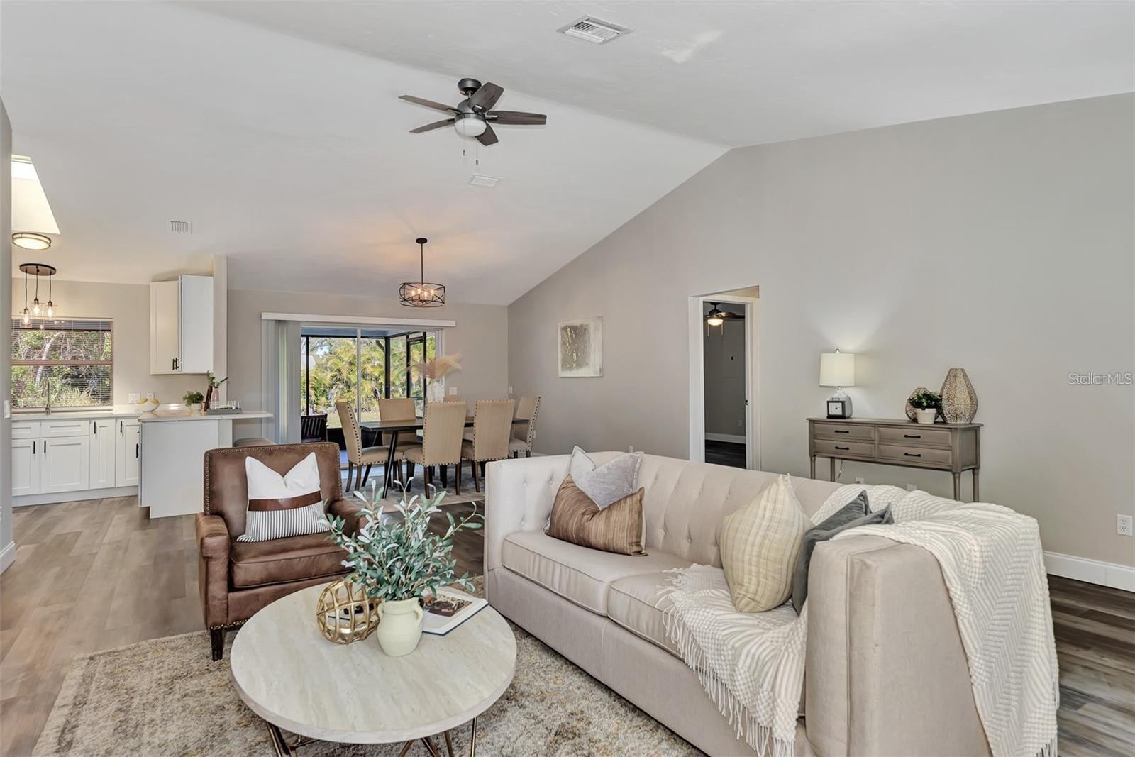 Beautiful Remodeled Home located in the Heart of North Port. Everything is New to include Roof, Luxury Vinyl Plank Flooring throughout, Kitchen Cabinets, Quartz Countertops, Appliances, Bathrooms Showers and Vanities, and New interior and exterior Paint. The home has been Professionally staged to show how much square footage there actually is in the home. Large bedrooms, Vaulted Ceiling in the main living area and Large screened Lanai to enjoy the Florida weather. Indoor laundry room just off of the 2 car garage to store all your toys. This home is better than new because of the large rooms and character of the home. Rarely available on City Water and Septic. Not your typical cookie cutter. Hurry don't miss out on this opportunity.