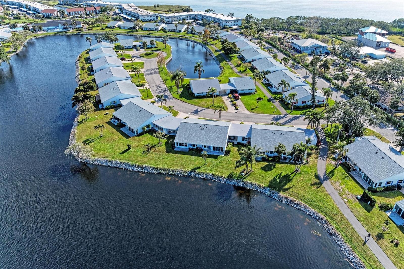TICKS ALL THE BOXES: Location? A Safe yet Convenient 2.5 mile distance from Anna Maria Island where you can stroll sandy beaches, enjoy warm Gulf breezes and see Spectacular Sunsets nightly! CONDITION? Renovated everything...more on that topic later. VALUE? Read my lips...This deal's HOT! Located a short bike ride from Gulf of Mexico beaches this amazing villa features: A tastefully updated kitchen that offers luxurious Golden Ivory Granite counter tops, 36" soft close cabinets topped with crown molding, a handy pull down spice rack above the stove that makes it easy to season your favorite dish to perfection, tumbled tile back splash, a closet Pantry and a breakfast bar with tear drop lighting where you can sip coffee to start another day in the sun or grab a quick lunch before heading out to the beach. The spacious GREAT ROOM is ideal for entertaining guests and offers amazing panoramic LAKE VIEWS. The dinning room is large enough to accommodate visiting family or friends from up north at the Holidays and features a window seat perfect for relaxing with a good book. The "primary" bedroom has a built in dressing table (with a Granite top of course) and chest of drawers, wall mounted TV and an UPDATED EN-SUITE bath offering a walk in shower, comfort height water closet and luxury vanity with Granite top. The guest bath is also tastefully updated with a second full size shower and matching granite vanity. Bahama shutters on most windows offer convenience and privacy, 18" ceramic tile laid on the Diagonal through out, CROWN MOLDING in all rooms, oversized carport perfect for sitting outside to watch the resident Osprey fishing and on site laundry facility. The Mount Vernon Community Center is often filled with neighbors enjoying the fellowship of new found friends and features: A HEATED SWIMMING POOL, clubhouse with meeting rooms perfect for special gatherings, TENNIS and PICKLE BALL courts, a WORKSHOP for Dad, Kayak storage and launch with access to Sarasota Bay where wildlife flourishes and the adventuresome can go to explore, fish or just enjoy the outdoors. A limited number of BOAT SLIPS are available for rental on a first come first serve basis. This one is WORTH A LOOK so call today and start home tomorrow!