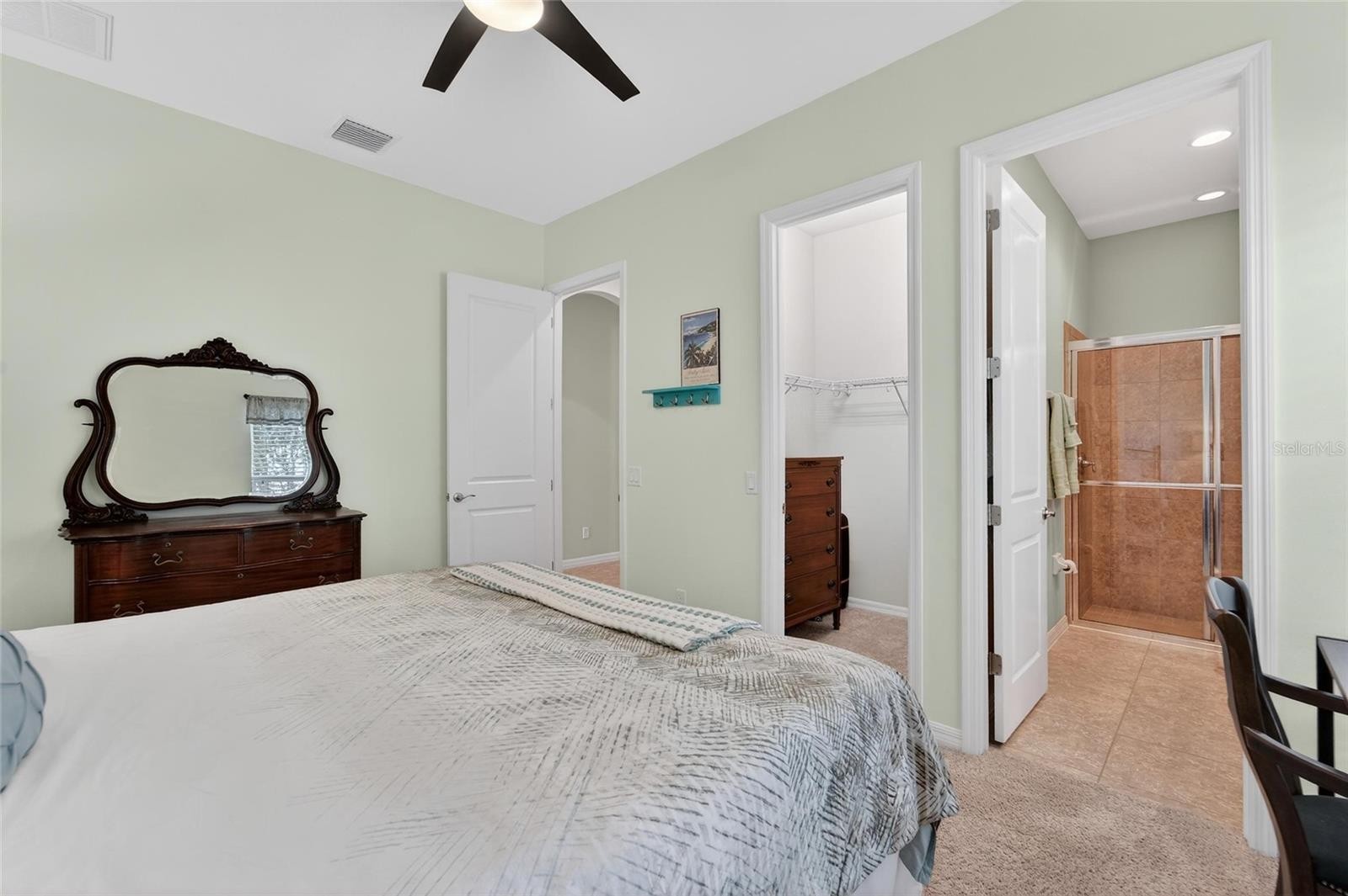 Located in the prestigious gated community of Arbor Reserve in Bradenton, this beautifully maintained Taylor Morrison residence offers the rare combination of space, quality construction, & serene water views. Thoughtfully cared for by its original owners, the home presents with pride of ownership & shows beautifully. This spacious single-story home offers 4 beds, 3.5 baths, a 2-car garage, & nearly 3,000 sq ft of heated living space designed for both comfort & flexibility. From the moment you enter, soaring ceilings, approximately 10 ft throughout, paired with tray ceiling details and 8 ft interior doors create an immediate sense of openness and architectural elegance. The open layout flows naturally from the foyer through the living & dining areas into the kitchen & family room. This approximately 1,300 sq ft combined living space offers generous room for entertaining and everyday living, all while enjoying tranquil pond views. The kitchen blends function and style with granite countertops, 42-inch cabinetry, a stone tile backsplash, a large illuminated pantry, & a center island with additional seating. The space opens seamlessly to the family room & overlooks the screened lanai & pond beyond, filling the heart of the home with natural light & peaceful views. Two sets of sliding glass doors connect the main living area to the oversized screened lanai, where a hot tub & calming water views create a private outdoor retreat. The fenced backyard adds an additional layer of privacy while preserving the beautiful pond backdrop. The thoughtfully designed split-bedroom layout offers excellent privacy. The primary suite enjoys pond views & is accessed through double doors, featuring two closets including a walk-in located within the room rather than through the bathroom. The primary bath offers dual vanities, generous storage, an oversized shower, & a private water closet. A separate secondary suite with its own full bath & walk-in closet provides a comfortable space for guests, extended family, or multi-generational living. Two additional bedrooms share another full bathroom with tub. Additional highlights include a private den or home office with double French doors, recessed lighting throughout the main living areas, plantation shutters in the family & dining spaces, & ceiling fans in all bedrooms. Practical features include a dedicated laundry room with 42-inch storage cabinets & a utility sink, overhead storage racks in the garage, gas service for heating and cooking, irrigation system, & annually serviced Carrier mechanical systems. The exterior was recently painted with an updated color palette, & the oversized screened lanai & rear fencing were added by the owners. Arbor Reserve is a gated, deed-restricted neighborhood of just 95 homes, offering a quiet & private setting with well-maintained amenities including a community pool, cabana with grilling area, and sports court. HOA fees are modest and there is no CDD. The location places you minutes from University Town Center shopping & dining, Sarasota-Bradenton International Airport, & convenient access to both downtown Sarasota & downtown Bradenton. Gulf Coast beaches, restaurants, parks, & everyday conveniences are all within easy reach while the community itself remains a peaceful retreat. Set on a 0.18-acre lot in Flood Zone X & constructed with durable block construction, this pristine one-owner home offers exceptional comfort, thoughtful design, & an outstanding location.