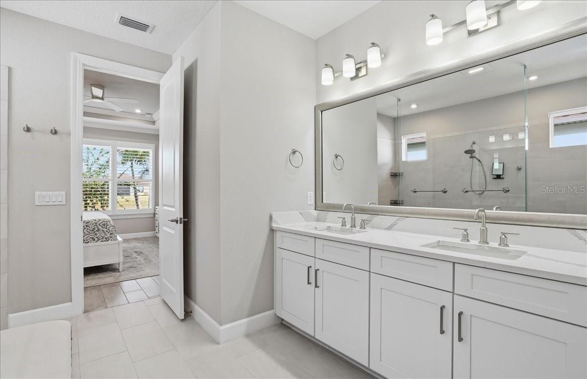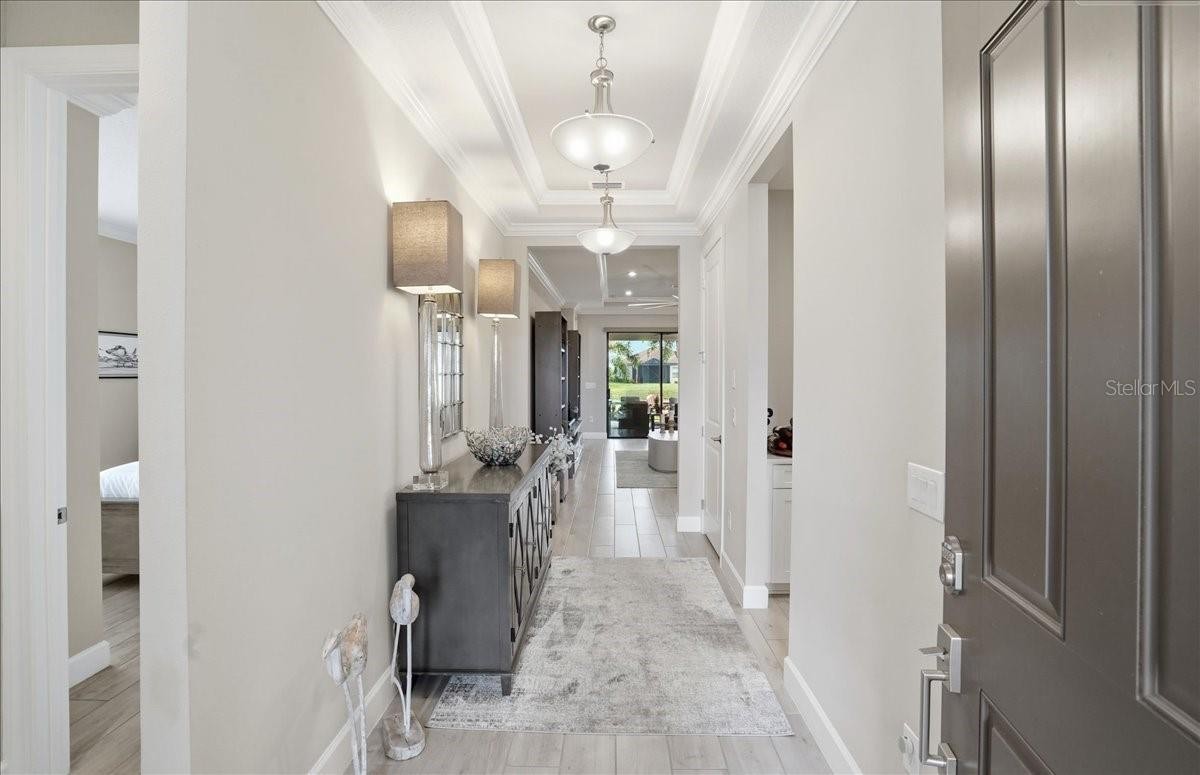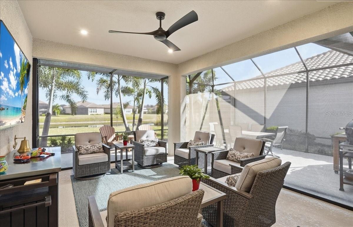 Welcome to this Taylor Morrison Azzurro model (3/2) in the highly desirable Esplanade of Artisan Lakes, in North Manatee County. This spacious floor plan features 3 bedrooms and 2 bathrooms, perfectly arranged around a stunning open-concept living area ideal for both everyday living and entertaining. At the heart of this home is the gourmet kitchen, complete with a walk-in pantry that has custom designed built-ins and a large island that overlooks the expansive great room. The kitchen has quartz countertops, top of the line cabinets with undermount lighting and an elegant backsplash. The adjacent dining area provides the perfect setting for meals with family and friends. Step outside through the sliding glass doors to the extended lanai (24'x25') with a covered seating/TV viewing area and that also has two remote-controlled hurricane shades to close off that entire area. Enjoy the dining area that overlooks the water all year long! The sellers have provided an ex-large Green Egg for your entertaining! The Owner’s Suite offers a peaceful retreat, highlighted by a spacious walk-in closet that has been beautifully designed to help you stay organized. The bathroom has dual vanities, a gorgeous designed walk-in shower, and a private water closet. The split floor plan has two additional bedrooms located at the front of the home sharing a well-appointed bathroom between them, perfect for guests or family members. This home also features a spacious laundry room complete with cabinets, countertops and a sink. Every detail has been added! There are 10’ ceilings, 8’ doors, crown molding throughout, and tray ceilings in the entryway, great room and the owner’s suite. Each room has a ceiling fan including the Lanai area. The Owner’s Suite has remote controlled blackout shades and a remote controlled shade is also located in the great room. The driveway has been widened to allow for ample parking and has 2 parking spaces inside the garage. The garage floor has an epoxy floor finish and there are overhead storage racks. This home has been immaculately cared for and lovingly maintained. It is truly a move-in ready home inside and out! The Esplanade of Artisan Lakes is a gated resort community offering two pools, a resistance pool and two hot tubs. There are two amenity centers, dog parks, pickleball and tennis programs and classes, along with special interest groups and clubs. The wellness program includes strength and cardio equipment, fitness classes, personal training, and water aerobics. Enjoy the spa services, social events, wine tastings, cooking experiences and arts and crafts. Yard maintenance, irrigation, cable and internet/wifi are also included with your HOA dues. The Esplanade is located between Hwy. 41 and I-75 from Moccasin Wallow Road. This is a growing area with shopping, places to eat and a new medical center and hospital being built just a couple miles away. Beautiful beaches at Siesta Key, Anna Maria Island and St. Petersburg can all be reached in under an hour.