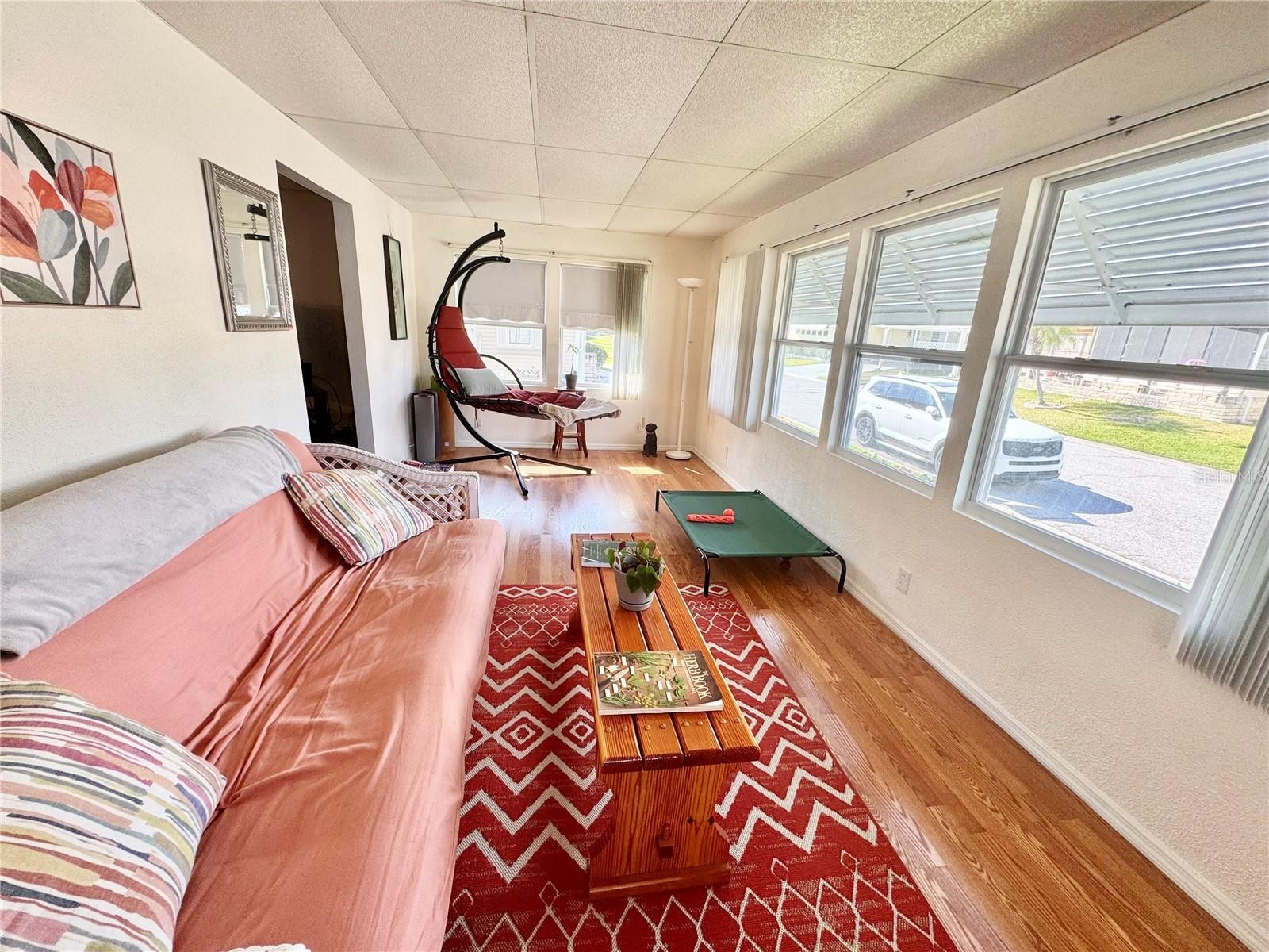 Welcome to Tideview Estates, a 55+ community located in Ellenton, minutes from I-75, Walmart, Publix, Costco, Detwiler's and so much more. This beautiful community is centrally located but at the same time is quiet and peacefully with tons of amenities for the ones who like to be active like pool, shuffleboard, parks, trails, gym, and even a library and a community center where owners get together to celebrate life. This home is located in the back with a private backyard overlooking the virgin landscape and the serene lake. Yes, no neighbors behind other that Mother Nature. The home has an open plan with main entrance opening to the kitchen, extremely convenient when bringing groceries. The Kitchen, living room, dining and the "Serenity room" come together as an open and bright area, convenient for gatherings. The Serenity room is located in the front with access to/ from the carport and can be utilize for whatever your heart desires like office, workshop, plants room, meditation room, gym room, reading room... the possibilities are endless. This home come equipped with washer and dryer IN the HOME, no more having to go to the carport and tons of storage for all your needs. Another good news is that the water heater sits outside so no need to worry about water damage inside the home. It has 2 bedrooms with the master bedroom with view to the back of the house (privacy!), huge walk-in closet, master bathroom with shower and toilet area behind doors from complete privacy. The second bedroom surprise everyone with its huge walk-in closet and the 2nd bathroom just in front of it for added convenience. Best part of the house where you will fall in love is the back with the lake views surrounded by Mother Nature and the amazing Florida fauna. The back is completed private, and you will only see your next-door neighbor's as it's not a walking trail area for residents. You can transform it into the oasis you always wanted with your own garden either exotic plants or your own veggie garden. This community is walking distance to restaurants, stores and public transportation pass right in front of the community, not counting I-75 is right there to take you to Bradenton, Sarasota, Tampa, Lakewood Ranch, the beaches of Coquina and Anna Maria Island and stores like Costco, Bells, Walmart, Publix, Detwiler's are just minutes away. You have the best here and the HOA is only $600 a year. Look no further, Paradise is waiting for you. Come make this home your home in Paradise! Most furniture will be included, and the GOLF cart is yours too!