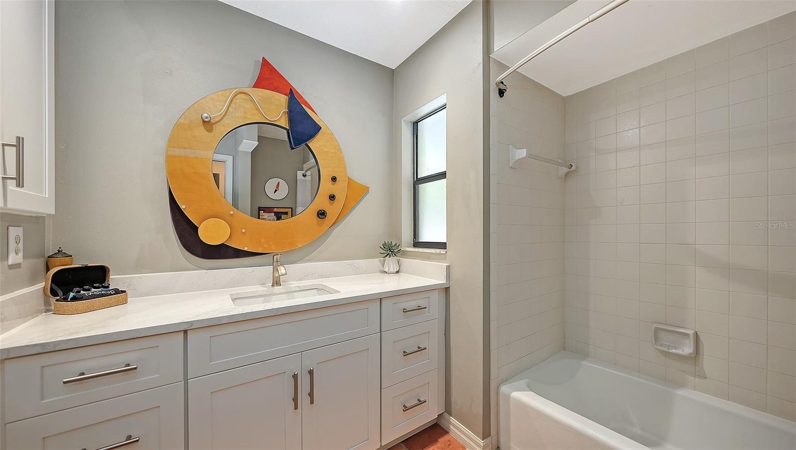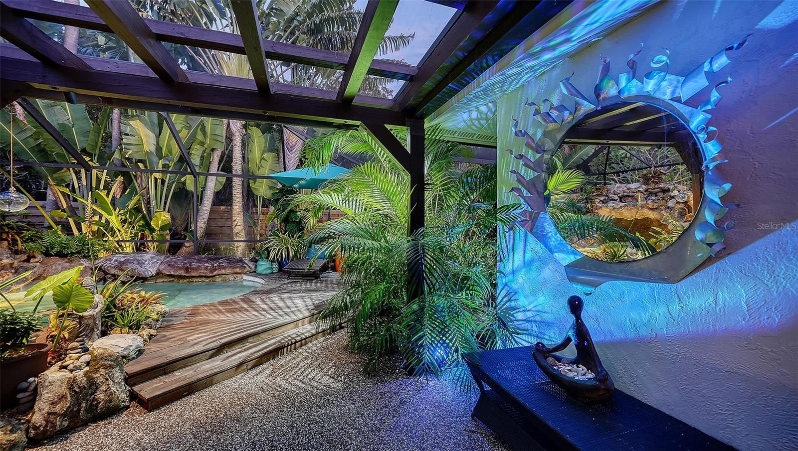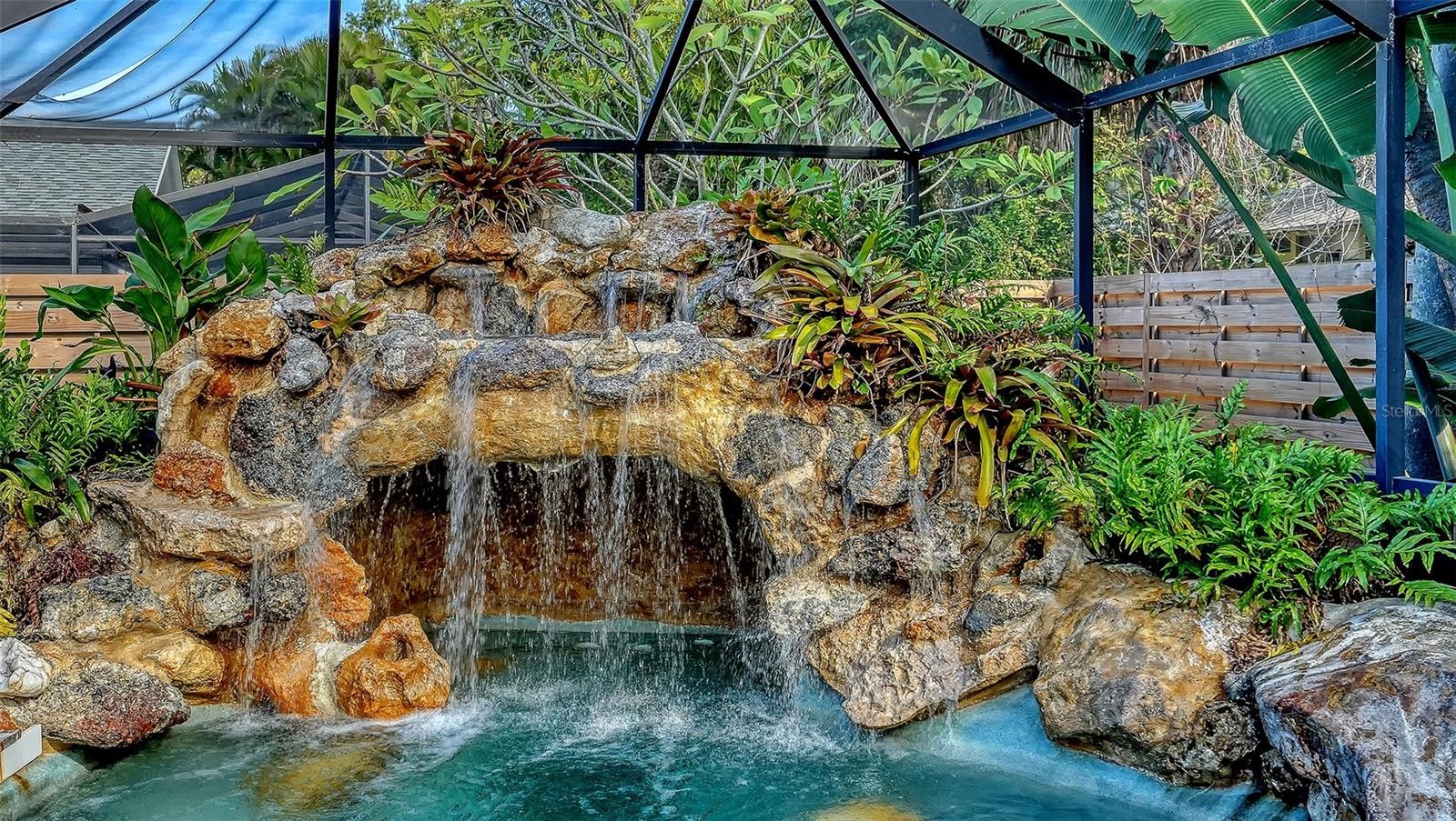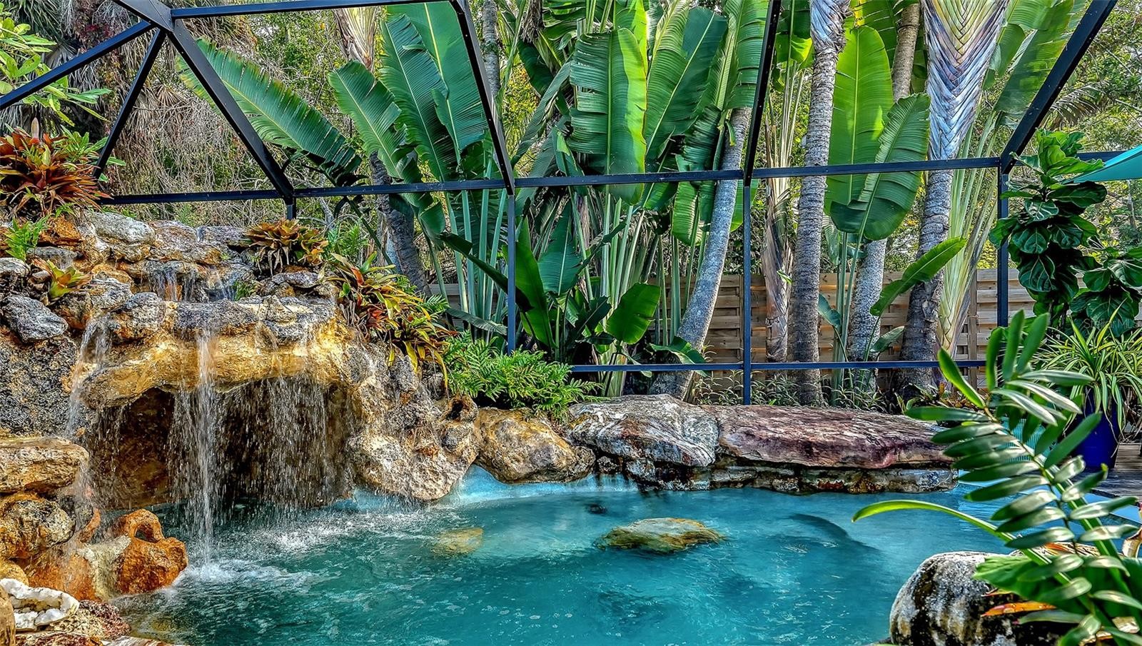 Under contract-accepting backup offers. Adorable and incredibly private, this Florida oasis offers an intimate retreat in the heart of the iconic Indian Beach–Sapphire Shores Bay Front neighborhood. As you enter, a large living and dining area welcomes you with an inviting sense of openness and comfort. The two bedrooms are arranged on a thoughtful split plan, giving residents and guests their own space. Both the kitchen and bathroom cabinetry with granite countertops are brand new, complemented by all-new kitchen appliances for a fresh, move-in-ready feel. The Florida room adds an extra layer of coziness, ideal for morning coffee, reading, or quiet afternoons. This cottage is made even more special with its exceptional outdoor retreat. A resort-style Therapy pool with jacuzzi capability sits beneath a screened lanai, complete with waterfall, and a Grotto, all heated for extended enjoyment. Surrounding it is a private, low-upkeep tropical sanctuary, designed to feel serene and secluded. With three outdoor seating areas, this backyard becomes a haven for relaxing, entertaining, and escaping into your own slice of paradise.
