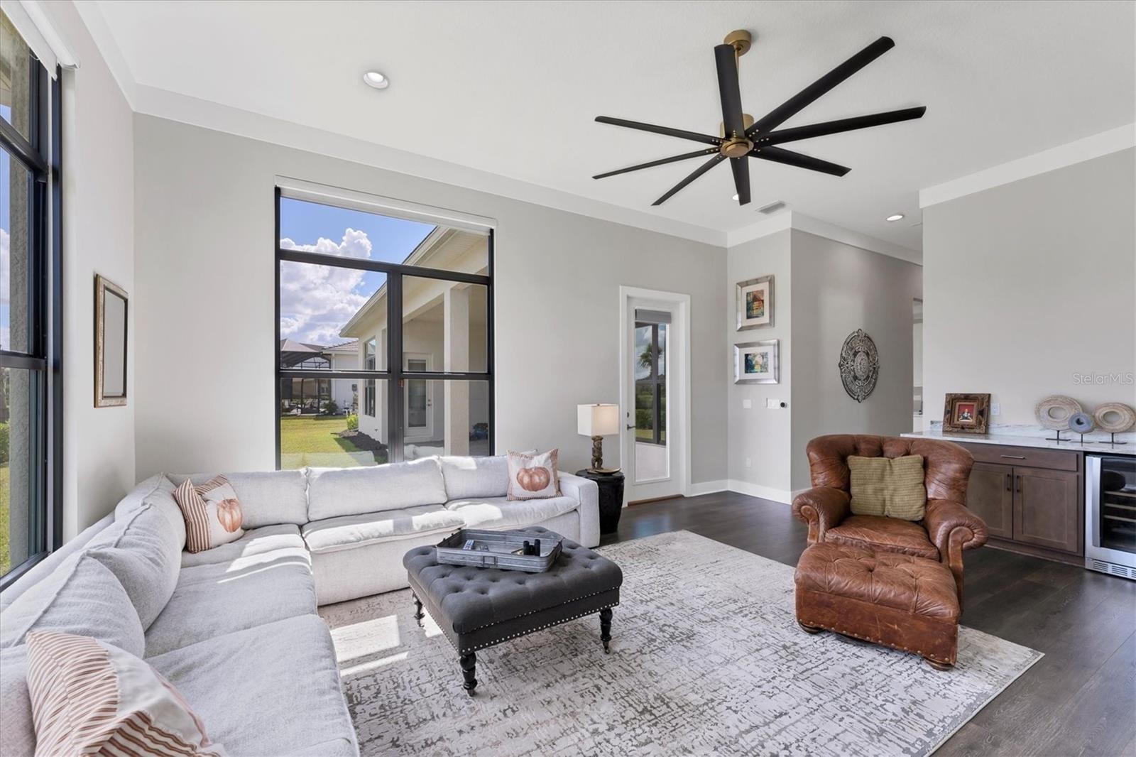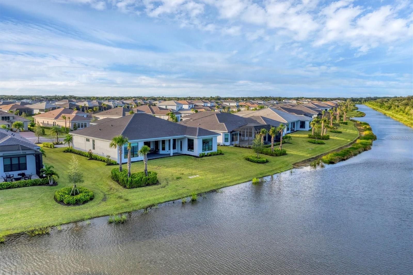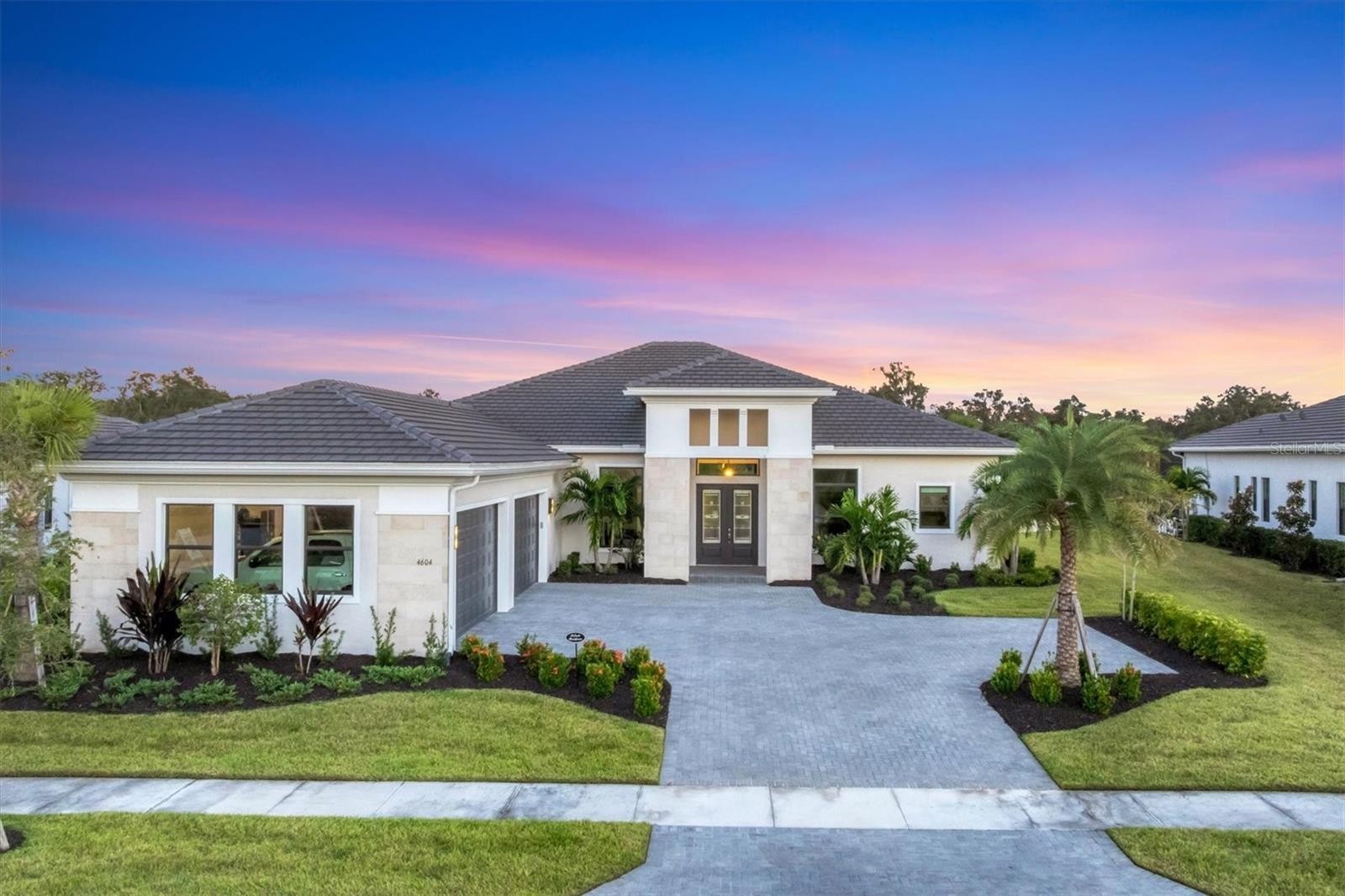 Looking for THE best views in the community? You'll discover them here, every day! Welcome to Artistry–Sarasota, where you can experience luxurious resort-style amenities, security and maintenance-free living without the CDD fees. This beautifully designed Palmer model with bonus room and four-bay garage provides storm security with impact windows and doors, concrete block construction and concrete tile roof, as well as energy efficiency of spray foam insulation. With one of the most optimal floor plans available, this residence offers generous living spaces with ample natural light and showcases the most spectacular views in the community. Located in the coveted section of Artistry on an estate-sized lot, you will enjoy the serene and naturistic views overlooking the water as well as the green and lush preserve that borders this side of Mondrian Court. From the moment you and your guests enter through double glass doors, you’re greeted by a wall of sliding glass that invites you out to the covered lanai and breathtaking views. Continuing throughout the home, you will see countless elegant features and design on display. This luxurious residence offers spacious living areas, three-bedrooms, 4.5 baths, a private office/den, a formal dining room, great room and a designated pool bath, a large bonus room with built-in wet bar, remote shades and an exterior door to access the covered lanai. The outdoor living area provides ample space for a pool and is plumbed and wired for an outdoor kitchen. The home is equipped with several significant upgrades, from oversized modern style crown molding accentuating the 12-foot tray ceilings to gorgeous plank wood-grain tile flooring, the extended kitchen island with quartz waterfall edges, upgraded cabinetry, professional appliance suite including a natural gas cooktop with range hood, double wall ovens, built-in refrigerator, beverage center, sophisticated tile and countertops, accented by brushed hardware, tankless gas water heater, bonus bath serving as pool bath and a rare four-bay garage. When it comes time to retreat and relax, escape to your generous primary suite with a designated space for a sitting area, exterior door with access to the covered lanai, a luxurious primary bath with large walk-in shower, garden tub, dual vanities, water closet and two walk-in closets. On other side of the home, you will find two additional en-suite bedrooms with numerous upgrades, bonus room with wet bar, pool bath, laundry room and a half-bath for guests. In addition to all the aesthetic features, this refined residence showcases the epitome of peace, serenity and privacy. Community features and amenities include two gated entrances, huge pool, clubhouse, tennis and pickleball court, playground area and fitness center, all surrounded by tranquil, landscaped walking paths. Artistry is a maintenance-free, upscale community with no CDD fees, convenient to just about everything that makes Sarasota and Lakewood Ranch desirable, particularly the shopping, dining, entertainment, excellent schools and our destination beaches. There is an art to living well and you’ll find it here in Artistry-Sarasota!