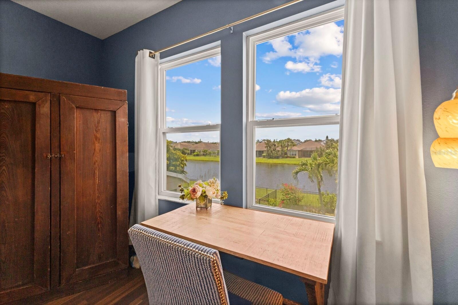 Second chance at the ONLY home available in Arbor Reserve! **Previous buyer was unable to secure funds for closing, so their loss is your gain! For added peace of mind, a clean inspection report and appraisal have already been completed! This move-in-ready, four-bedroom, three-bath Miramar-model home sits on a premier lakefront lot in a quaint, central location between University Parkway and State Road 70. With nearly 2,600 square feet under air, this home blends two levels of tasteful living space with functionality and modern comfort. Enter and you’re greeted by a large flex/office space, ideal for working from home or creating a private retreat. The open-concept main floor features rich engineered hardwood flooring, a spacious living and dining area, and an upgraded eat-in kitchen with granite countertops, gas range and a generous walk-in pantry. A guest bedroom and full bath with tub on the first floor create an ideal setup for multi-generational living or out-of-town guests. Upstairs, a sun-filled loft offers a flexible bonus space, while the split floor plan ensures privacy. The oversized primary suite features serene lake and tree-lined views, a large walk-in closet, and an en-suite bath with dual vanities and a walk-in shower. On opposite side of the home, you’ll find a spacious laundry room, a large guest bath with a tub and two additional bedrooms, each comfortably sized. Go outside to enjoy Florida living at its finest. The screened-in, saltwater pool is surrounded by lush newly installed landscaping and a new wrought-iron fence. The pool also features a new heater and new pump. The expansive covered patio is ideal for outdoor dining and lounging, with plenty of space to add an outdoor kitchen, all while enjoying peaceful lake views. This home is packed with upgrades that bring peace of mind and modern efficiency, including two newer Carrier HVAC systems (2021 and 2022), a whole-home Tesla solar generator system with three new batteries and a new computer system, and 100% owned rooftop solar panels, dramatically reducing your monthly electric bill and even allowing you to sell power back to the grid. Plus, you’ll never worry about power outages again. If the power goes out, your Tesla generator automatically switches on, giving you peace of mind during any storm. Additional notable upgrades include a new washer, dryer, dishwasher, a new irrigation system and enhanced curb appeal with fresh landscaping in the backyard. Arbor Reserve offers low HOA fees and resort-style amenities including a community pool, playground and a luxury cabana equipped with built-in grills, all in a quiet, beautifully maintained neighborhood (only 95 homes) close to top-rated schools, shopping, dining and more. Turnover in Arbor Reserve is incredibly low, and this is the only property available in the community.