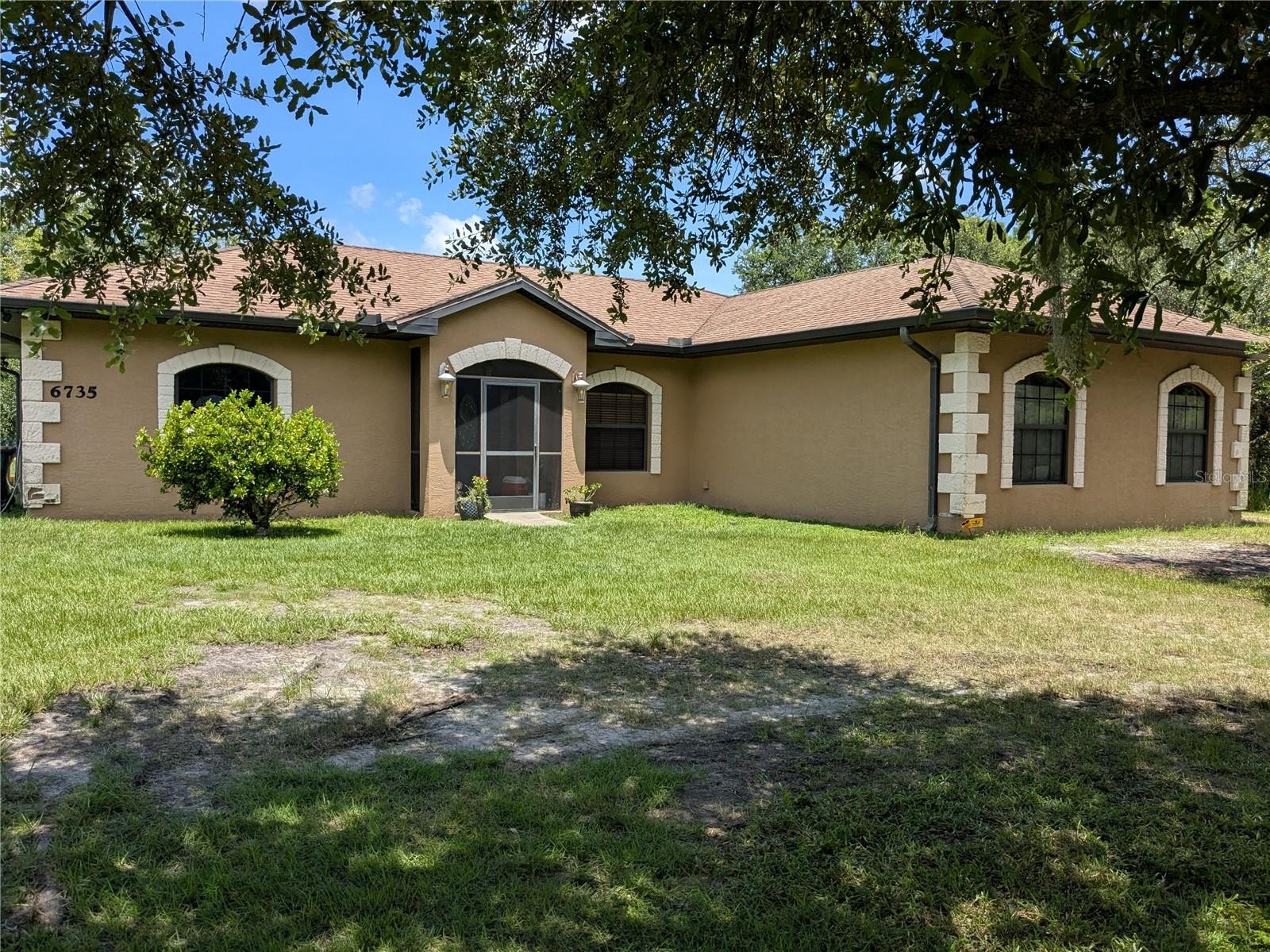Modern 3-bed, 2-bath home with a pool and an oversized 2.5-car garage. Boasting 2100 sq. ft of quality finishes, such as wood plank tile flooring, a spacious kitchen with a large island, upgraded granite, and stainless appliances. Enjoy the open feel with a 90-degree corner pocket slider and elegant touches like coffer and tray ceilings, crown molding, and upgraded cabinetry. The primary suite features dual vanities, a walk-in shower, and dual walk-in closets. Outside, a large lanai and pool area with a brick paver deck invite relaxation. Additional perks include gutters, hurricane shutters, vinyl fencing encompassing the entire backyard and no HOA.