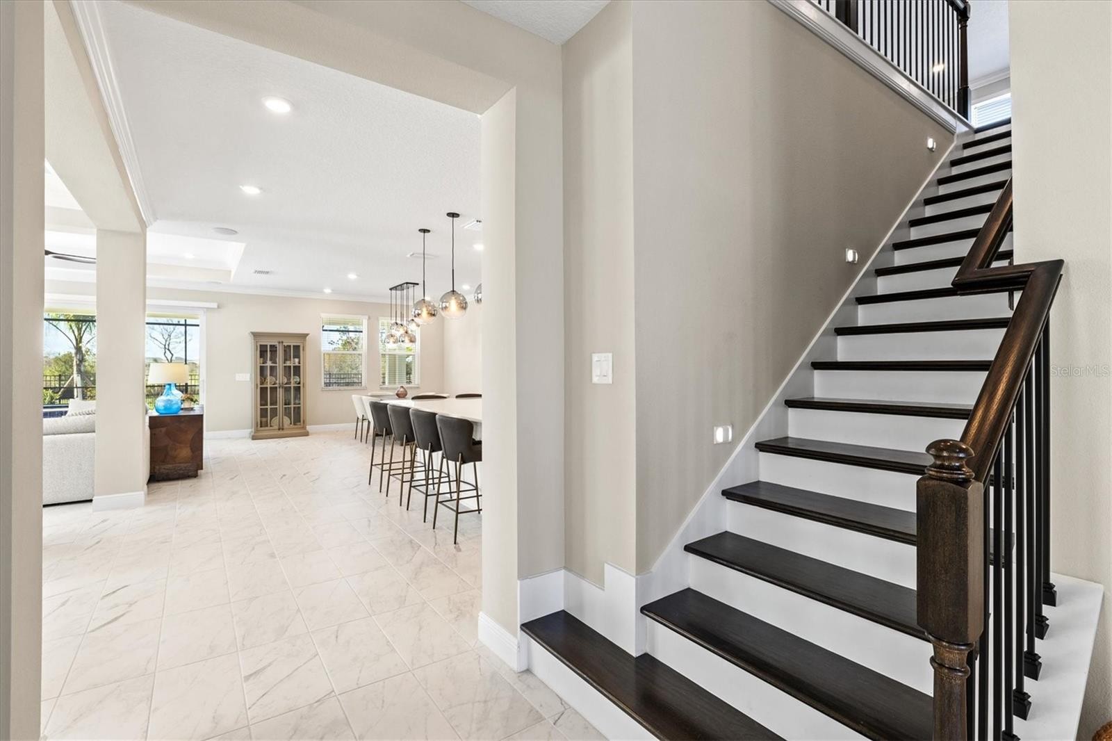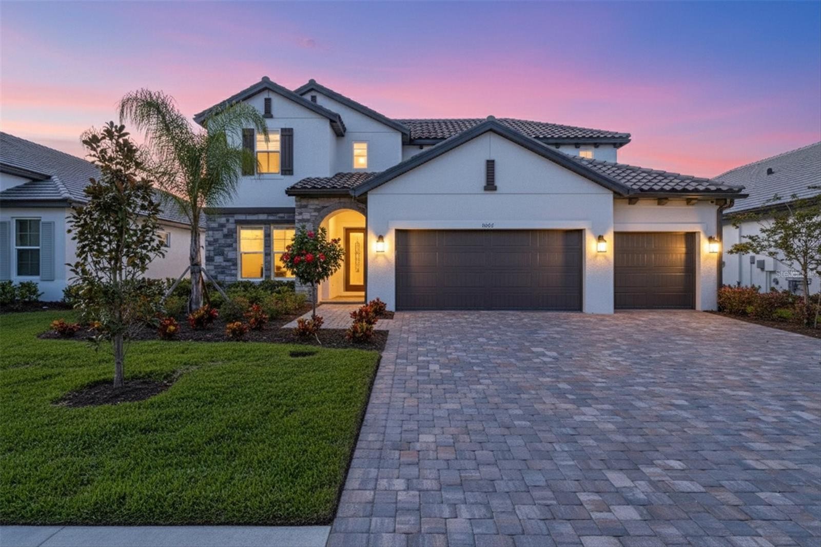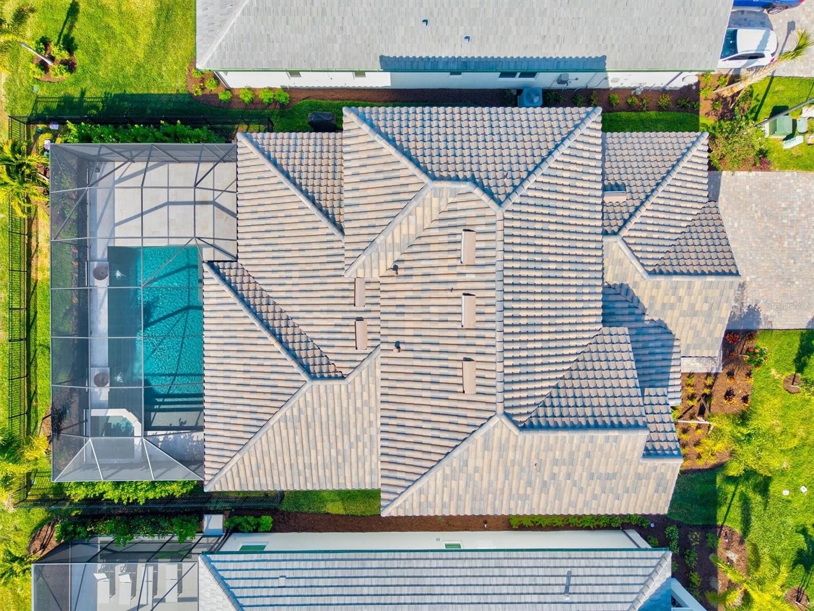 Welcome to this beautifully upgraded 2025-built, four-bedroom pool home, ideally situated on a premium lot within the gated Sweetwater community of Lakewood Ranch. Designed for modern living and effortless entertaining, this residence offers impact-rated windows and doors, a whole-home generator, crown molding, tray ceilings, 8-foot interior doors, upgraded baseboards, and refined lighting throughout. The interior features tile flooring across the main living areas, plush upgraded carpeting upstairs, and a thoughtfully designed floor plan with a first-floor primary suite complete with a spacious walk-in closet and spa-inspired bath. The kitchen was enhanced in July 2025 with an upgraded appliance package and soft-close cabinetry throughout the home, complemented by a whole-house water softener system with reverse osmosis filtration at the kitchen sink, professionally installed by H2O Heroes in February 2025. Additional features include a built-in drop zone with cabinetry and counter space, upstairs storage with a dedicated tech or homework station, theater-style staircase lighting, and whole-home speaker wiring with ceiling speakers already installed in the living room, loft, and lanai. Sliding doors open to an extended lanai pre-wired and plumbed for an outdoor kitchen, overlooking a fenced backyard with a private pool—ideal for relaxing or entertaining. Added peace of mind comes from a home security system with cameras, surge protection for exterior HVAC units, tankless water heaters, a 20-amp garage outlet, and premium finishes throughout. Residents of Sweetwater enjoy resort-style amenities including a clubhouse, fitness center, heated pool, pickleball courts, and playgrounds, all within one of Lakewood Ranch’s most desirable communities. This home offers the perfect blend of style, comfort, and location.