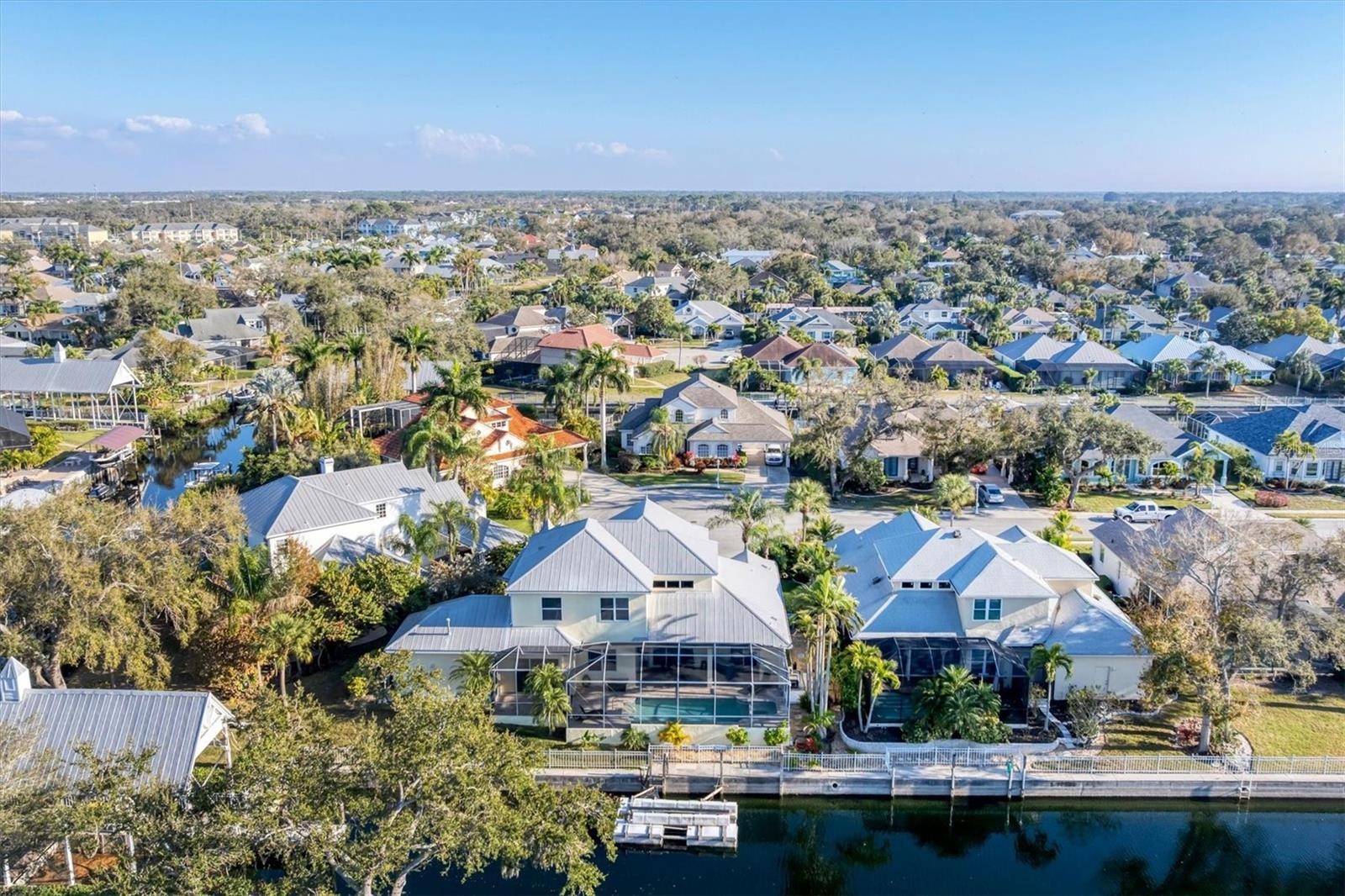 Step into a piece of music history with this stunning Key West-style retreat, formerly the private residence of Graeme Edge, legendary drummer and founding member of the Moody Blues! Nestled on a deep-water, 123 foot canal boasting direct access to the Manatee River, this estate offers a lifestyle that is both soulful and sophisticated. Situated at the end of a cul-de-sac street, this home's classic Key West aesthetic is highlighted by a durable metal roof and expansive, very open living space totaling just under 3100 square feet. At the heart of the home, a beautifully remodeled chef's kitchen with double oven serves as the perfect centerpiece for entertaining. With four spacious bedrooms and 3.5 baths, there is ample room for family and guests. The primary bedroom is on the first floor and the upstairs features a 15'x28' loft with adjacent bedrooms. A downstairs bonus/game room makes this house beyond perfect for entertaining and leisure. Outside, your private tropical oasis awaits featuring an outdoor shower, and a sparkling heated pool/spa overlooking the water. Hop on your boat for a sunset cruise on the Manatee River or simply enjoy the peace and serenity of the waters. Recently painted in wonderful soft colors, this home truly has it all. Whether you are a boating enthusiast or a seeker of serene sunsets, this home is a "Nights in White Satin" dream come true. Schedule your showing today!