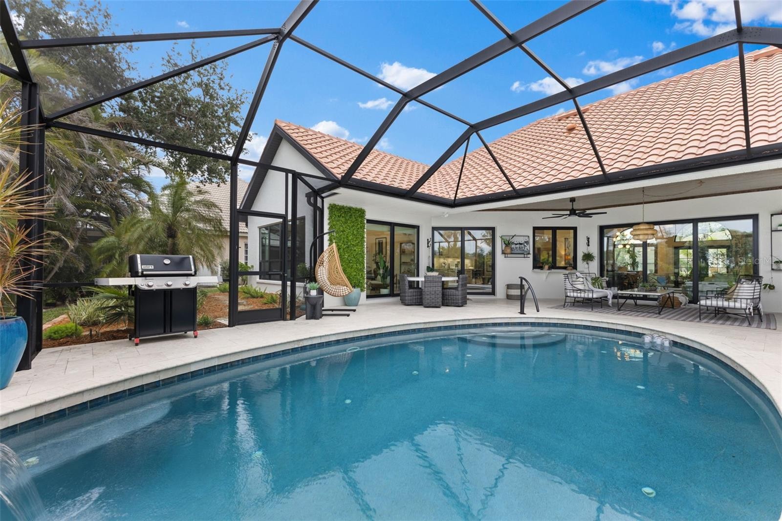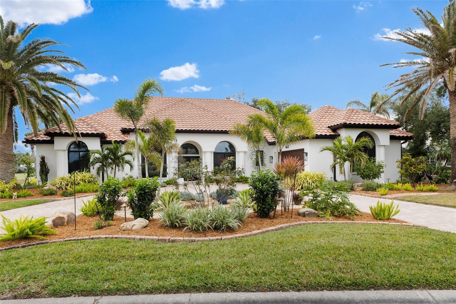 Welcome to this luxurious Spanish-Mediterranean styled custom-built pool home, fully updated to offer the epitome of elegance and comfort. Boasting 3 spacious bedrooms, 3 luxurious bathrooms, and a versatile den, this home is masterfully designed with a thoughtful split floor plan that perfectly balances elegance and functionality. Upon entering, you're immediately captivated by a breathtaking living room that offers sweeping views of the inviting newly resurfaced salt-water pool and surround, effortlessly merging the elegance of indoor and outdoor living. The expansive pool area is an entertainer's dream, perfect for hosting unforgettable gatherings or simply unwinding in style. Adding to the home's charm is a delightful courtyard, complete with a cozy 42” LP gas fire bowl, enhancing its allure and providing a serene oasis for relaxation. The primary bedroom boasts an ensuite bath, providing a private retreat within this exquisite residence. Additionally, the home includes a fully updated pool bath, along with two other beautifully renovated bedrooms and a bathroom, ensuring comfort and style throughout. Every detail of this home has been thoughtfully designed and meticulously crafted, from the beautifully manicured landscaping to the stunning chef's kitchen. Equipped with quartzite counters and backsplash, 54” custom cabinets, premium appliances, including an ILVE Induction Range, Miele Dishwasher, Z-Line built-in refrigerator, Z-Line Range Hood, and Z-Line Microwave drawer, the kitchen is a culinary enthusiast's dream. The home features a new roof, new impact windows, doors and sliders, new hurricane rated garage door, custom closets, designer interior and exterior lighting, and fresh paint both inside and out. All bathrooms have been fully renovated to offer modern luxury, and a newly installed Generac whole house generator ensures peace of mind. Located in the gated community of The Reserve at Plantation Golf and Country Club, this golf-course home is part of a welcoming and charming 73-home enclave. While membership at the privately owned Plantation Golf & Country Club is optional, it offers various opportunities for an active social lifestyle. Conveniently situated just 5 minutes from the new master-planned community of Wellen Park, 15 minutes from the island of Venice, 15 minutes from the beach, and 10 minutes from I-75, this home provides easy access to endless travel and leisure opportunities. Experience the perfect blend of luxury, comfort, and community in this exceptional property. Schedule your showing today!