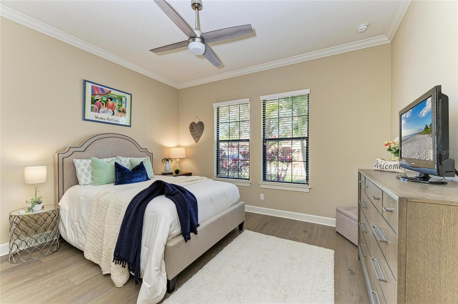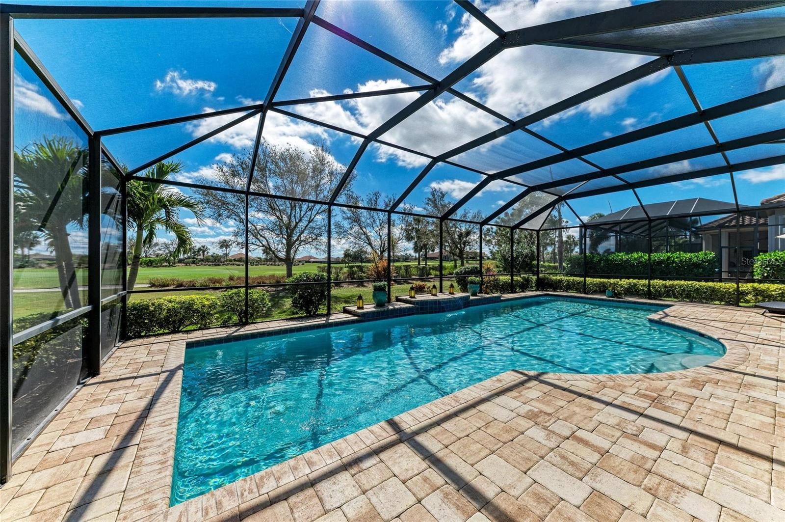 MAJOR PRICE REDUCTION ($300,000 in SAVINGS) PLUS A REGISTERED GOLF CART INCLUDED ($20k retail value) PLUS PARTIAL FURNITURE PACKAGE – WITH AN ACCEPTABLE CONTRACT BY THE END OF DECEMBER 2025. Seize this limited time value opportunity to own the LOWEST priced Pallazio pool home on a GOLF-DEEDED LOT with direct views of golf course near hole #1 in Esplanade Golf & Country at Lakewood Ranch! True Play-In, Play-Out Convenience, here you can take advantage of the recent updates including NEW exterior and interior paint, NEW upgraded landscaping, and NEW LED lighting. This highly sought-after floor plan offers breathtaking southern exposure overlooking lush fairways. Enter through the grand double doors into a foyer with adorned columns, a tray ceiling, and soaring ceilings that flow into the expansive open-concept great room. Crown molding and disappearing pocket sliders fill the space with natural light and open to the lanai, showcasing an impressive 40-foot pool perfect for swimming laps or relaxing. The gourmet kitchen features Cambria quartz countertops, a crema Marfil marble backsplash, stainless steel appliances including a natural gas cooktop and built-in oven, a wine refrigerator, and an oversized island with chic pendant lighting, ample storage, and generous workspace. The extended kitchen offers a separate breakfast area opens to the lanai, enhancing the home’s indoor-outdoor flow. The extended primary suite is privately located and offers a spa-like en-suite bath with dual sinks, frameless glass shower, soaking tub, private water closet, and a large walk-in closet. Two guest bedrooms provide comfort and privacy—one with an en-suite bath featuring a frameless glass shower and quartz countertops, and the other with access to a full bath with quartz countertops and a shower/tub combination. A generously sized study/den with double doors offers flexible use and can easily serve as a 4th bedroom. The extended screened lanai includes a large, covered area, expansive paver deck, and sweeping golf course views, with motorized hurricane Kevlar screens for added convenience. The professionally extended driveway accommodates 3-cars, and the epoxy-floored garage includes overhead storage racks. Additional features include a newer washer and dryer in the spacious laundry room with a utility sink, under-cabinet storage, and drop zone. Esplanade’s amenities include an 18-hole championship golf course, tennis and pickleball courts, two fitness centers, two resort-style pools, a full-service spa and salon, on-site dining at the Bahama Bar and Barrel House Bistro, bocce ball, a bark park, and an active social calendar. Lawn maintenance is included in the HOA fees. Located in Lakewood Ranch, near University Town Center, Sarasota Polo Club, farmers’ markets, trails, parks, award-winning beaches, and SRQ and TPA airports, this home offers the best of Florida living. This is a rare, limited-time opportunity to own at an amazing price in a fully built-out, established neighborhood—no new construction, no disruptions, just a beautiful home ready for your enjoyment