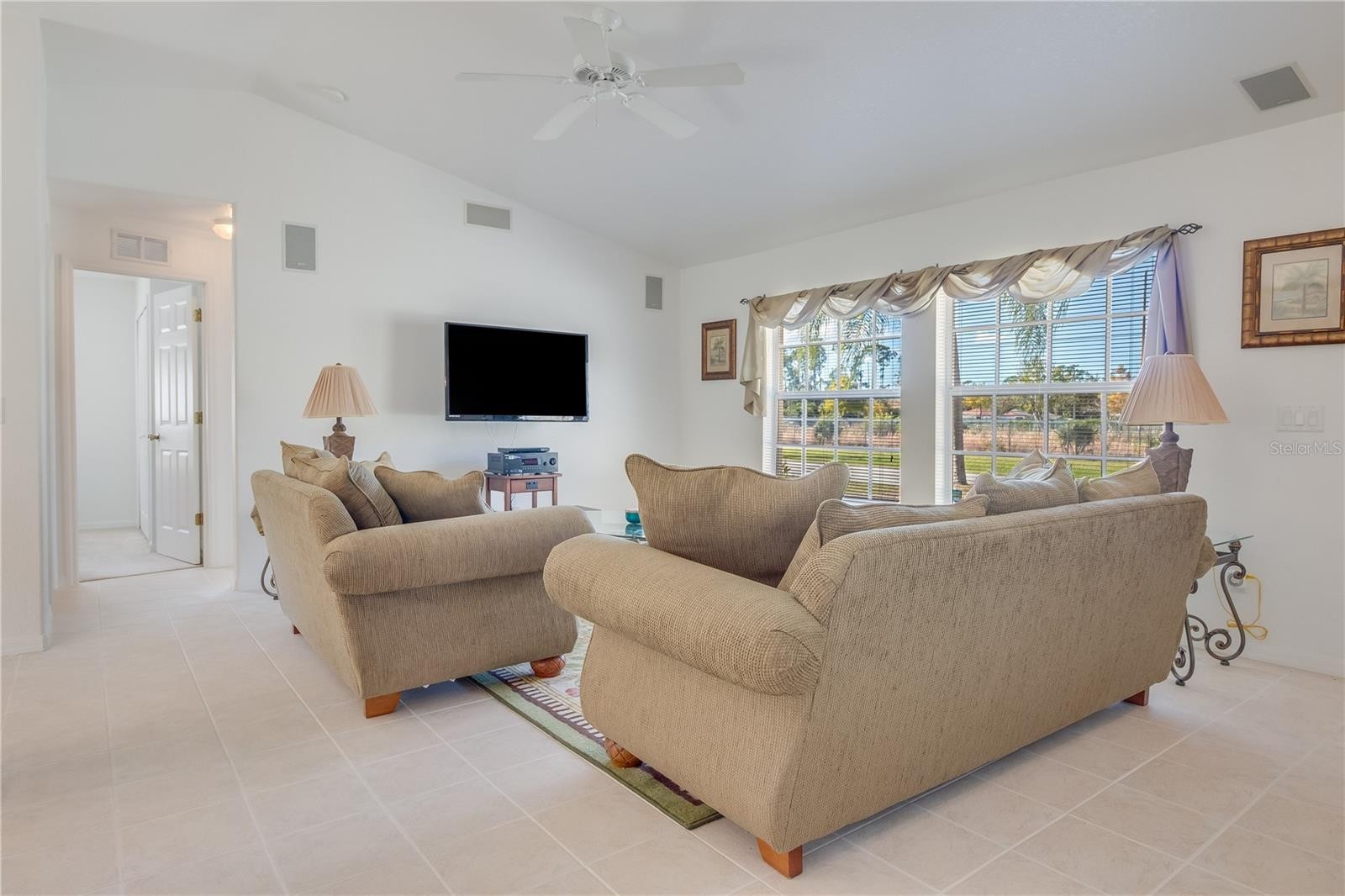 **3D INTERACTIVE VIRTUAL TOUR** Pull up the driveway to a beautifully cared for three bedroom, two bath, two car garage FULLY FURNISHED home that boasts a 2023 ROOF and FRESH EXTERIOR PAINT in the heart of North Port. With only occasional stays each year, the home remains remarkably well kept and is truly ready for its next chapter. Step through the front door and you are greeted by a warm, open layout that instantly feels like home. The great room offers soaring vaulted ceilings and easy care ceramic tile that runs throughout the main living spaces. Large front windows invite in generous natural light, giving the home a bright uplifting feel. The kitchen is a standout with abundant cabinet and counter space, a closet pantry, plant shelves, double sink, and a breakfast bar that connects seamlessly to the main living areas so you can stay part of the conversation. It is an ideal setup for hosting family and friends. The dinette is the perfect daily landing spot whether you are easing into the morning with a cup of coffee or winding down in the evening with a home cooked meal. A stylish chandelier creates a finished and cozy touch. The comfortable master suite is large in size and features an en-suite master bath and walk-in-closet. The split bedroom layout places the guest rooms and bathroom on the opposite side of the home. The guest bath includes a vanity, mirror, and a shower tub combo. Both guest bedrooms feature carpet, private closets, windows, and ceiling fans, creating a welcoming setup for out of town visitors. From the dinette, sliding glass doors lead to a spacious backyard with a wooded buffer on the left side for privacy. Neighbor fencing partially encloses the yard, and the natural backdrop of sunshine, chirping birds, and mature oaks creates a relaxing outdoor retreat. If you dream of a pool, there is plenty of room to add one. Additional conveniences include an attached two car garage with utility sink and an inside laundry room. This home is moments from everything North Port has to offer including schools, restaurants, Coco Plum shopping center, and the vibrant new Wellen Park with the Atlanta Braves Spring Training stadium, dining, fishing pier, and weekly Sunday Farmers Market. Quick access to I-75 and US-41 puts you on the path to some of Florida’s most beautiful beaches. Your Florida lifestyle is calling. Pack your bags and step into the Salt Life today!