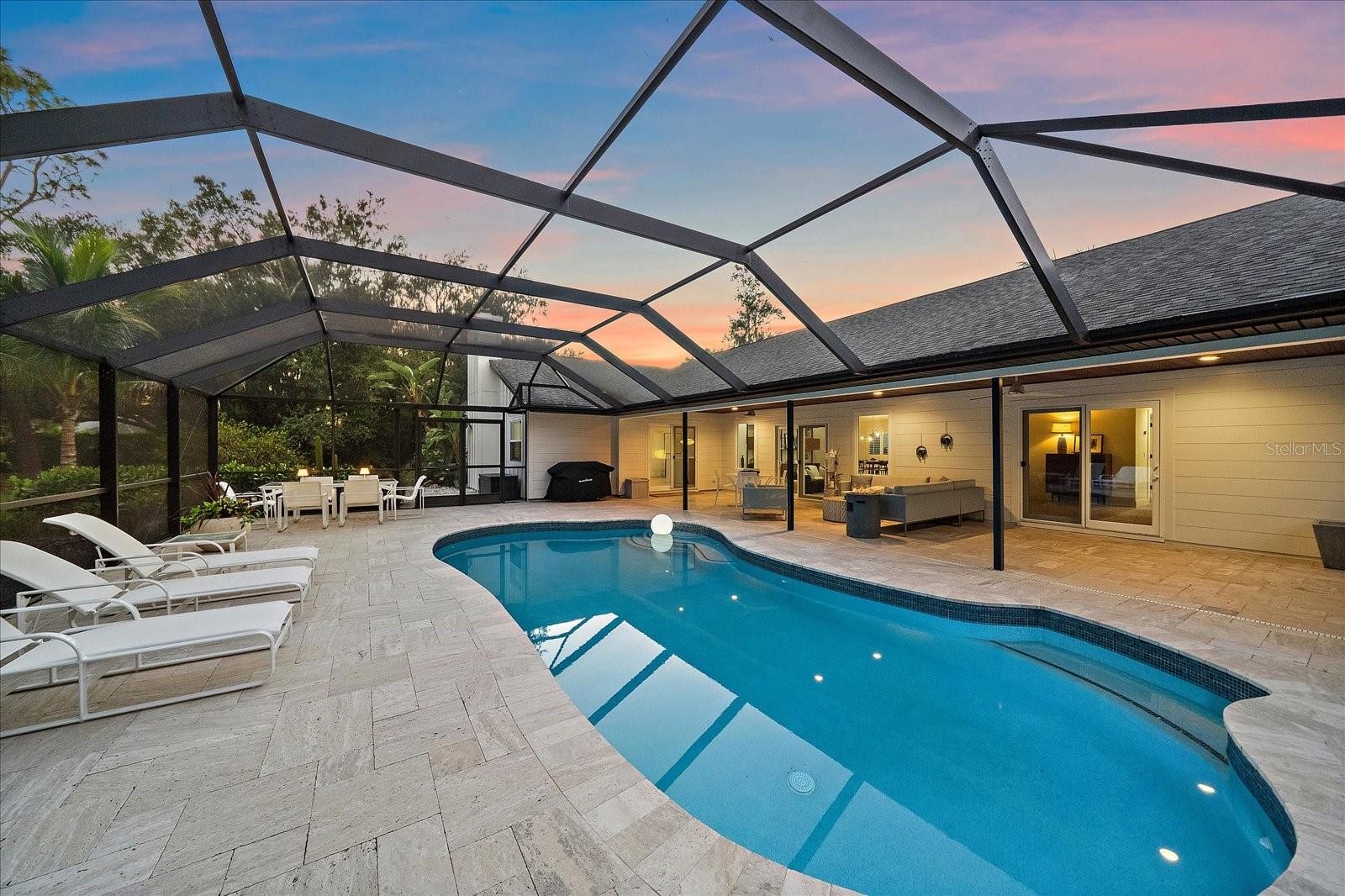 Under contract-accepting backup offers. Welcome to your Sarasota Sanctuary! Fully remodeled, custom-built home in the heart of Longwood Run, just minutes from UTC, beaches and the airport. This spacious, 3 bed plus den, 2 bath home sits on over half an acre. The open, split floor plan has a modern and crisp feel with numerous upgrades throughout. Streamlined, custom kitchen is fresh and modern with white oak cabinetry, quartz countertops, neutral backsplash and Bosch appliances. The adjacent, vaulted great room is open to the kitchen and features a wood-burning fireplace with stone surround, as well as tasteful, LVP flooring throughout the entire home. Enjoy total privacy right in-town with mature trees and lush landscaping backing up to thick woods with no one behind you! Here you will find an outdoor oasis with south-facing pool, and large firepit area with plenty of room for sports, gardening, or future landscaping projects. The massive lanai area with travertine pavers boasts over 500 square feet of covered living space making it perfect for entertaining and simply enjoying nature under a rich, mahogany shiplap ceiling. Over 1,200 square feet of enclosed lanai space with plenty of room for lounging and additional dining area. This spectacular view can be enjoyed from several different areas of the home with impact sliders off the primary bedroom, formal living, and kitchen/great room area. There is nothing left to do here but call this home your own! Brand-new, Pex plumbing throughout (2025) with transferrable lifetime warranty, impact windows/sliders throughout with transferrable lifetime warranty (2025), modern Board and Batten James Hardie siding with fresh paint (2025) with transferrable lifetime warranty, Tesla car charger (2025), newer lanai enclosure (2018), refinished pool surface (2018), well for irrigation (2019), roof (2017), hot water heater (2023), HVAC (2018/2019). This property is not your typical, cookie-cutter, production home. The design enthusiast will appreciate all the tasteful, high-end updates throughout as well as a fantastic floor plan that's not easily found in an established neighborhood in this area. Schedule your private showing today!