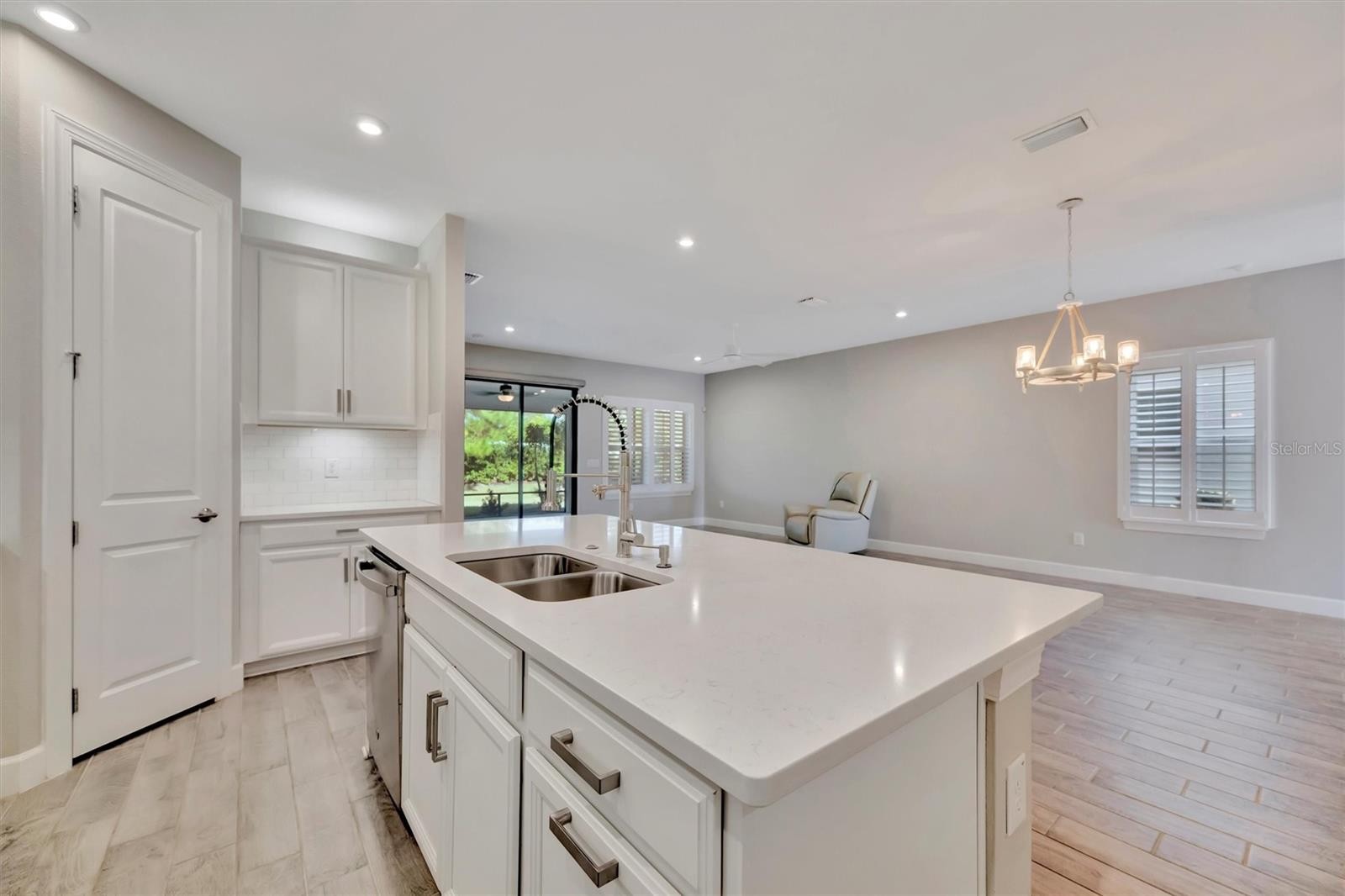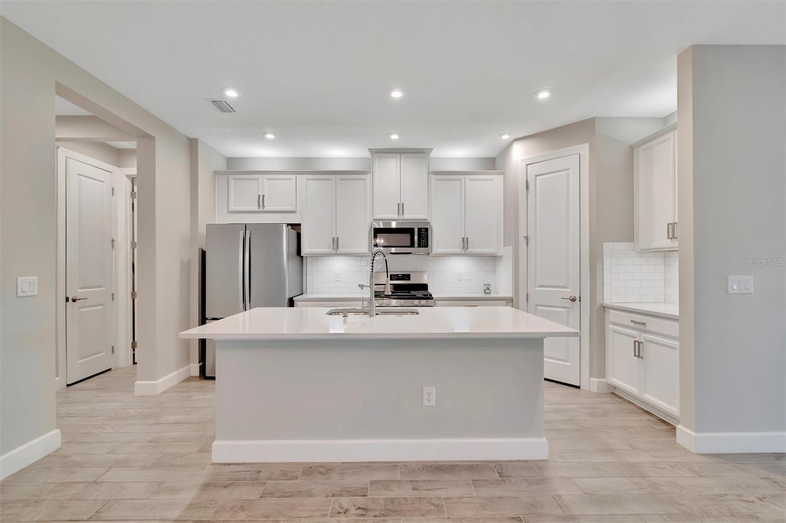 Welcome to refined Florida living in this beautifully appointed Matera model, built in 2022 and located in the highly sought-after Esplanade at Artisan Lakes. This thoughtfully designed 3-bedroom, 2.5-bath residence blends timeless elegance with modern comfort, beginning with an inviting entryway and striking front door that set the tone upon arrival. Wood-look tile flooring flows seamlessly throughout the main living areas, creating warmth and continuity. The chef’s kitchen serves as a true centerpiece, featuring quartz countertops, a walk-in pantry with custom built-ins, an upgraded kitchen faucet, and a whole-home water filtration system, ideal for both everyday living and entertaining. Plantation shutters throughout the home and an electric shade on the sliding doors add style and privacy, while the oversized lanai offers a serene, peaceful view perfect for morning coffee or evening relaxation. The owner’s suite is a private retreat with dual sinks, a spacious walk-in shower, and a custom-designed walk-in closet. Ceiling fans enhance comfort in both the owner’s suite and living area. Additional highlights include a 2-car garage with epoxy flooring and overhead storage, beautifully landscaped surroundings, and exceptional attention to detail throughout. Homeownership includes access to Esplanade’s resort-style amenities, including a state-of-the-art fitness center, lifestyle director, event spaces, tennis, pickleball, bocce, walking trails, dog parks, playgrounds, multiple pools, cabanas, fire pits, and The Venue amenity center. HOA services include cable, internet, lawn maintenance, and irrigation. Ideally located near shopping, dining, healthcare, and major highways, with easy access to Sarasota, St. Petersburg, and Tampa, this home offers exceptional value in one of the area’s premier lifestyle communities. An exceptional opportunity within Esplanade at Artisan Lakes, offered for private tour by appointment.