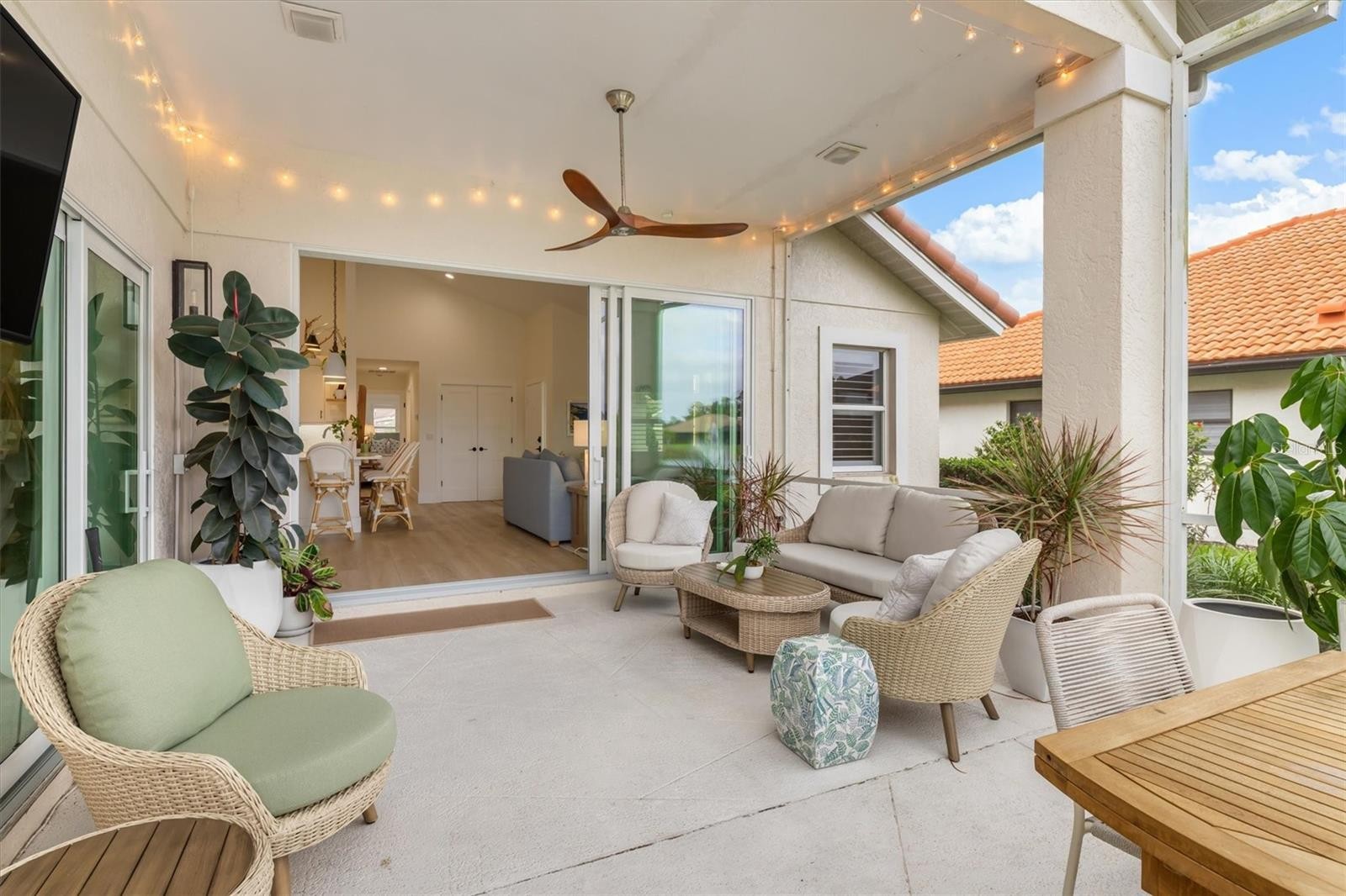 This two-bedroom, two-bath free-standing villa with a beautiful water view has been fully remodeled and thoughtfully upgraded, with $180,000+ in improvements making it truly move-in ready. Originally the model home for the Villas at Deer Creek, this residence has been exceptionally maintained and now features a completely updated interior featuring a stunning chef’s kitchen and spa like bathrooms, blending modern finishes with timeless comfort. The open floor plan is enhanced by soaring ceilings that create a spacious, airy feel, while abundant natural light fills every room. Recent improvements include a new roof (2023), Impact Sliders (2023), new electrical panel (2023) and new HVAC system (2023), offering peace of mind and energy-efficient living for years to come. The home has also been re-plumbed, adding to its long-term value and reliability. Enjoy relaxing water views and the convenience of the heated community pool just steps away. This villa is ideal as a primary residence or a second home. Perfectly situated in Palmer Ranch, the location puts you close to everything that defines the Florida lifestyle—Legacy Trail, shopping (Costco, Publix, Target), golf courses, tennis courts, dining, medical facilities, and just 15 minutes from the crystal sands of Siesta Beach not to mention the newly imagined Sarasota Square Mall featuring Whole Foods, Trader Joe’s & other high end stores. This beautifully updated villa offers comfort, convenience, and carefree Florida living at its finest.